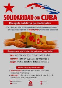 - El PCE de Cuenca continúa en Tarancón con su recogida de materiales de primera necesidad para Cuba