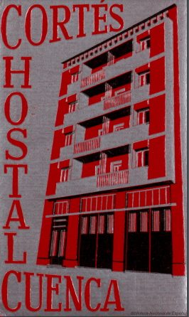 Hay tres diseños de etiquetas pertenecientes al Hostal Cortés, que abrió sus puertas en 1960 en la calle Ramón y Cajal. En la primera de ellas, vertical y con tipografía y dibujo de color rojo, aparece la fachada del establecimiento, que hoy permanece muy similar. En las otras dos, en cambio, se apuesta por el color verde, en distintas tonalidades, y una imagen de las Casas Colgadas.