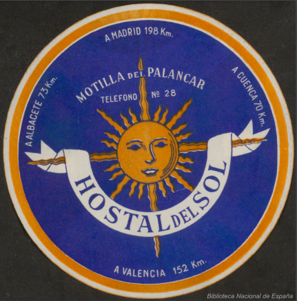 La fachada del histórico edificio que ha comenzado una nueva vida como sede del Gobierno de Castilla-La Mancha en Cuenca protagoniza otro de los distintivos recopilados por la Biblioteca Digital Hispánica, el que ha sido utilizado como imagen principal de este artículo. Se caracteriza por incluir el nombre del alojamiento en uno de los laterales del edificio, con una tipografía similar a la de la película Ben-Hur de 1960. En una tercera pegatina, esa frase es sustituida por un mensaje en el que los propietarios proclamaban que este era el único hotel “de primer orden” de la capital.