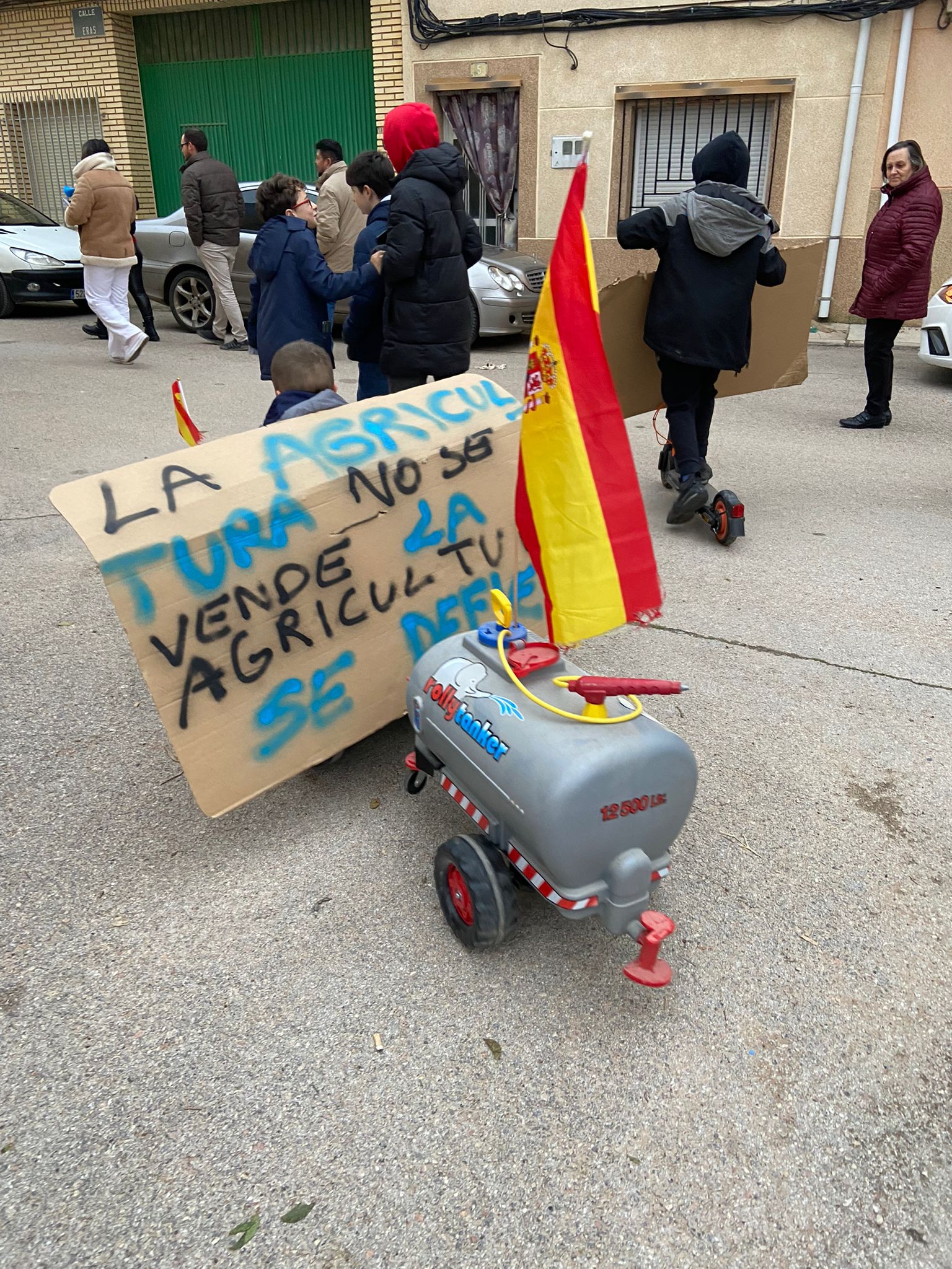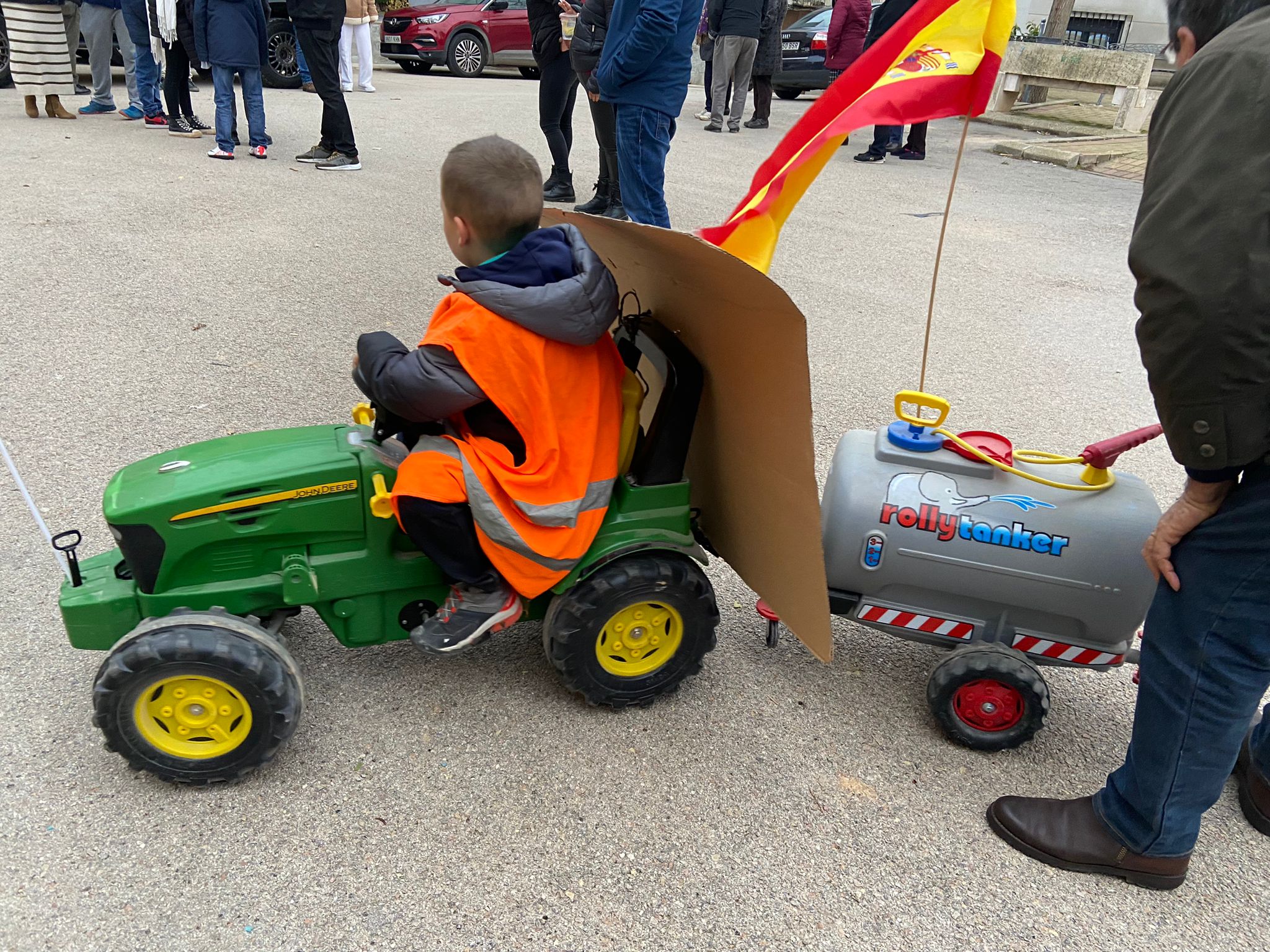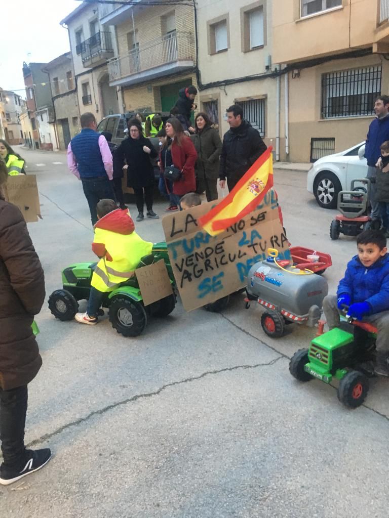 Según informan los participantes de esta acción, hace una semana varias personas del pueblo, padres y madres, de los niños, se plantearon la posibilidad de hacer esta mini-tractorada de apoyo a la gente del campo. Como ha ocurrido con otras movilizaciones del campo, todo se organizó a través de grupos de WhatsApp y de forma personal, sin sindicatos ni organizaciones de por medio. “Somos un pueblo de agricultores y hay que luchar por nuestro futuro”, recordaba el cartel distribuido a través de estas redes para animar a la asistencia a esta iniciativa.