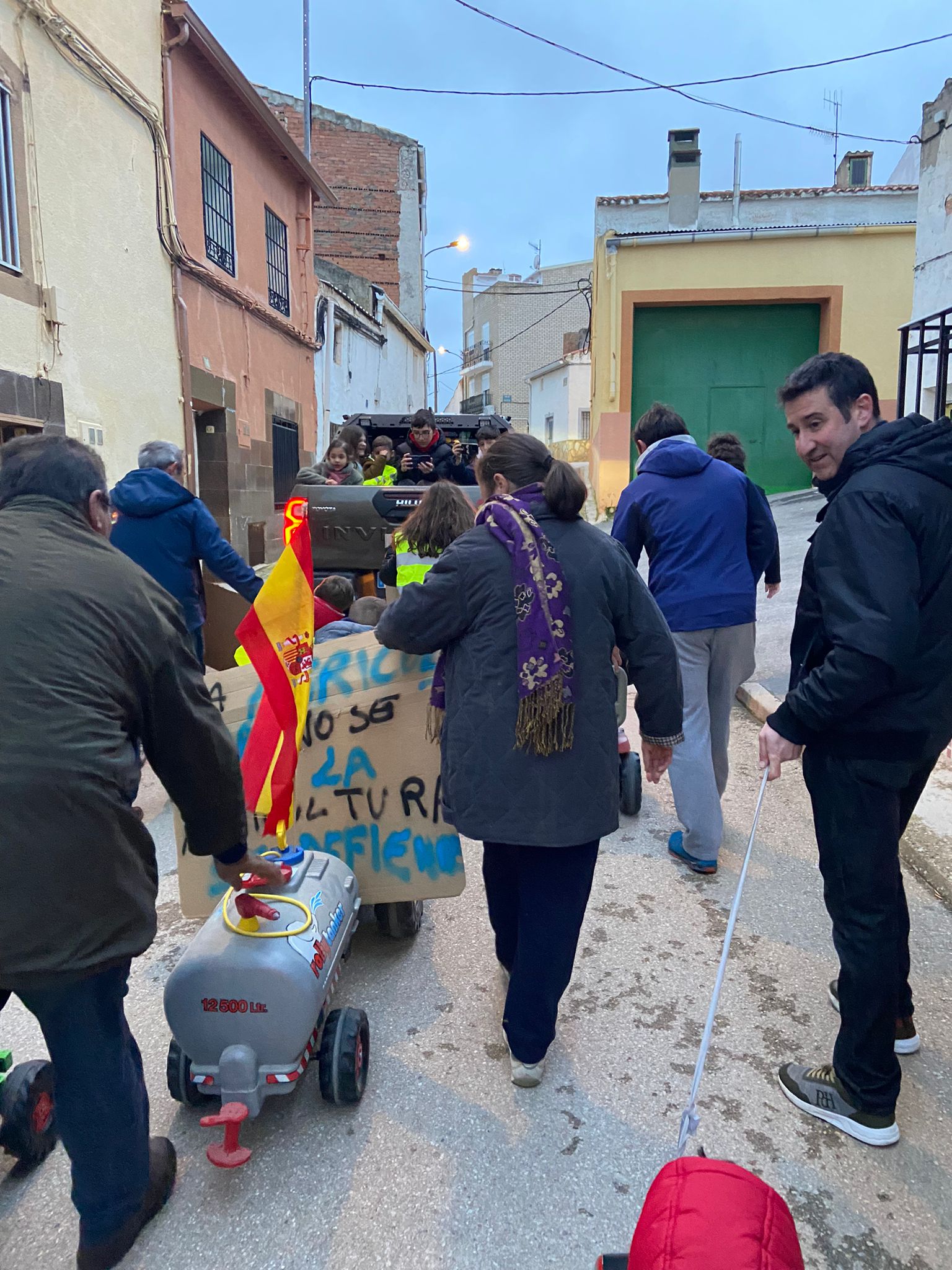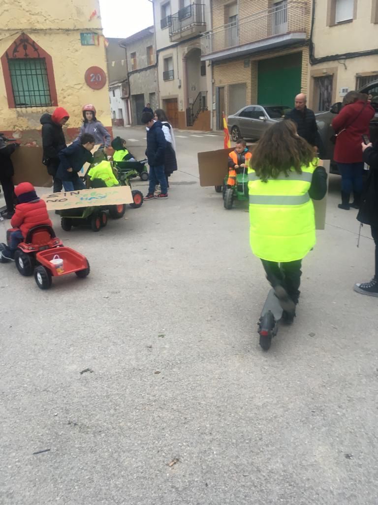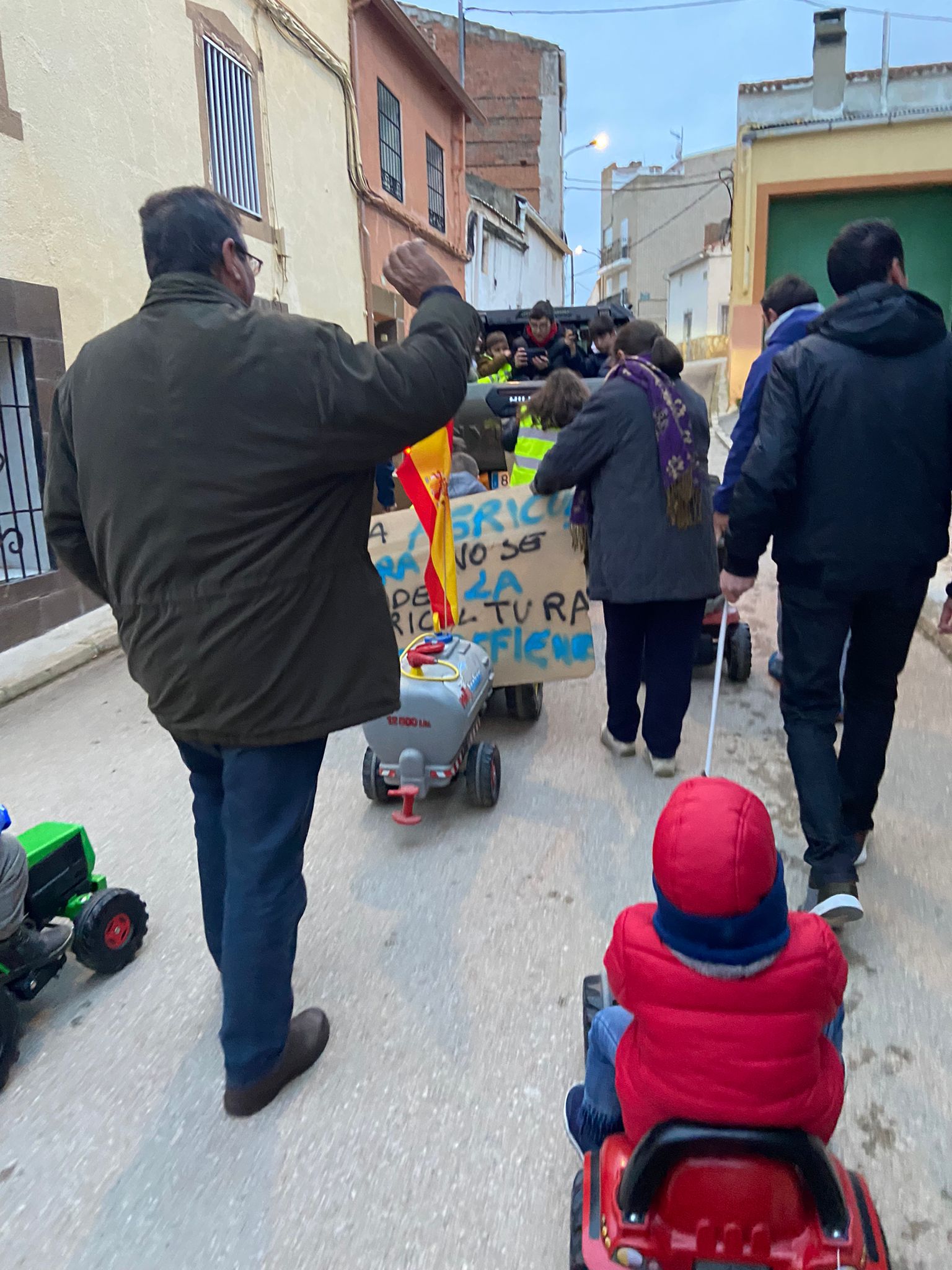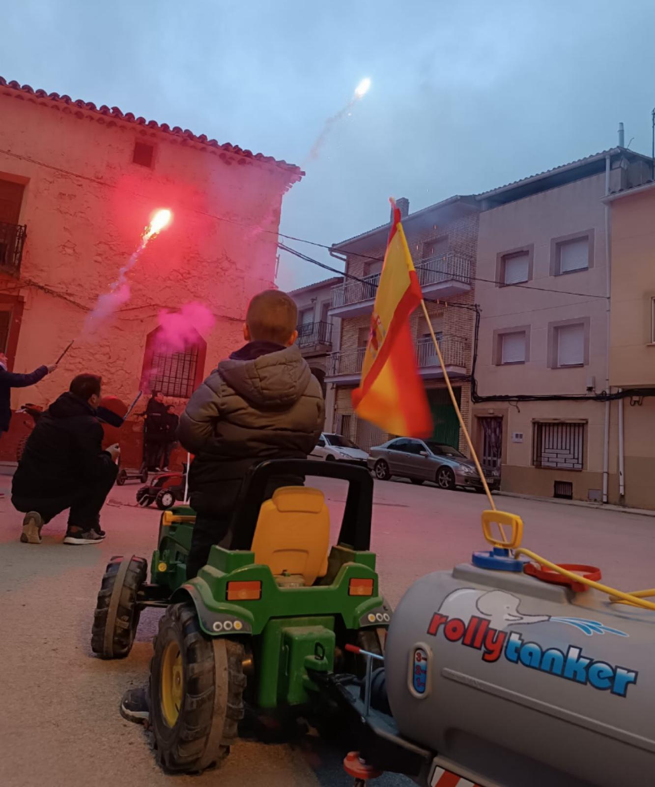 Según informan los participantes de esta acción, hace una semana varias personas del pueblo, padres y madres, de los niños, se plantearon la posibilidad de hacer esta mini-tractorada de apoyo a la gente del campo. Como ha ocurrido con otras movilizaciones del campo, todo se organizó a través de grupos de WhatsApp y de forma personal, sin sindicatos ni organizaciones de por medio. “Somos un pueblo de agricultores y hay que luchar por nuestro futuro”, recordaba el cartel distribuido a través de estas redes para animar a la asistencia a esta iniciativa.