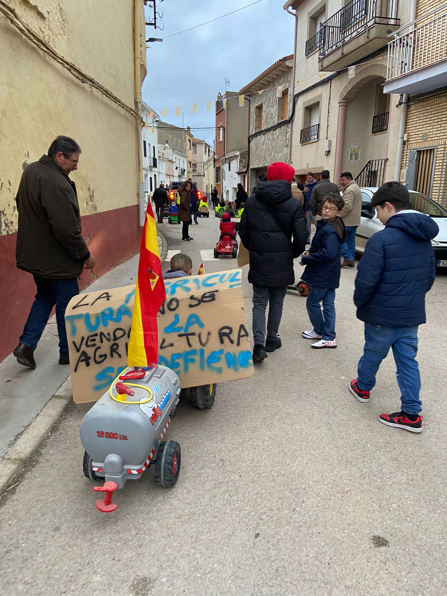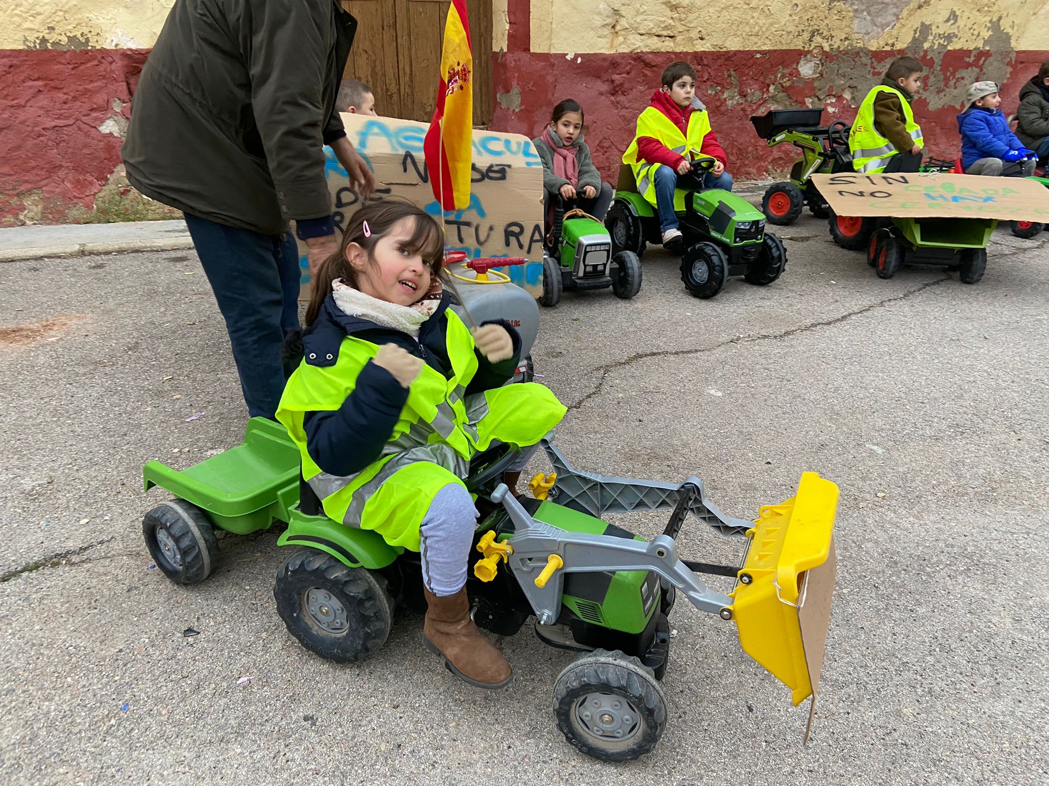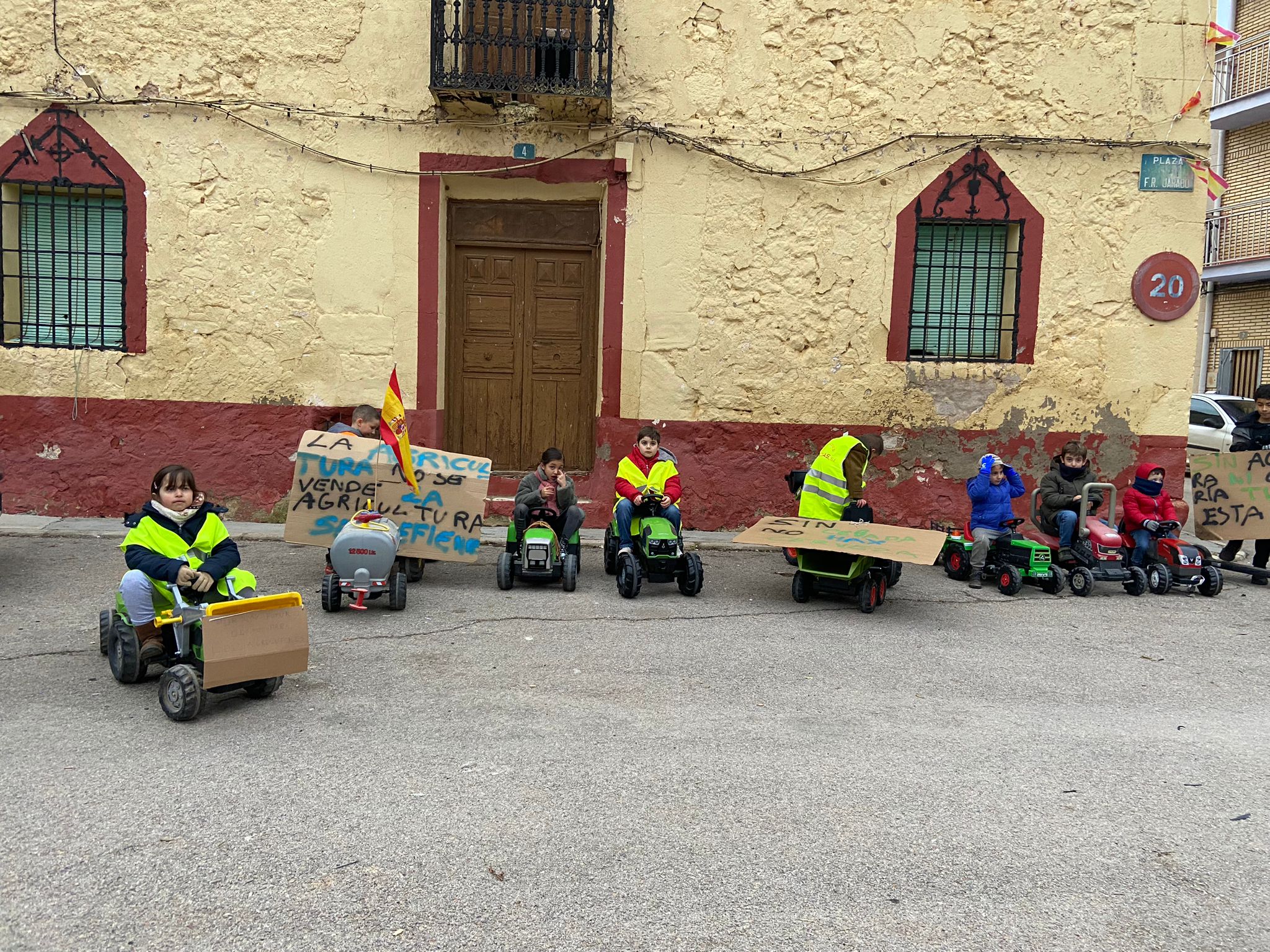 Los más pequeños de Villarejo Periesteban protagonizaron una tractorada infantil con la que algunos vecinos de la localidad han querido mostrar su apoyo a los agricultores y ganaderos que protestan estos días en la provincia de Cuenca por la situación del sector.