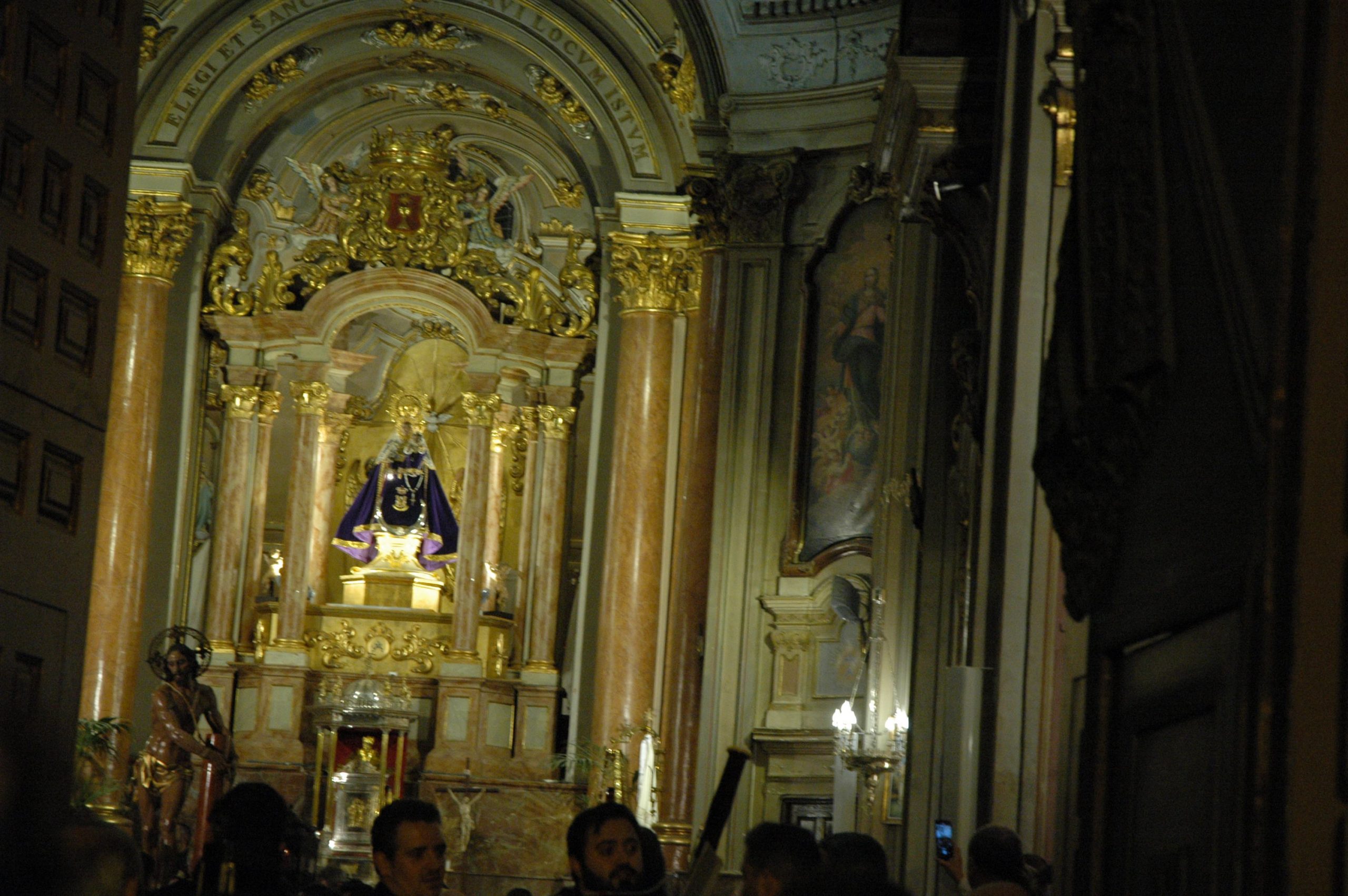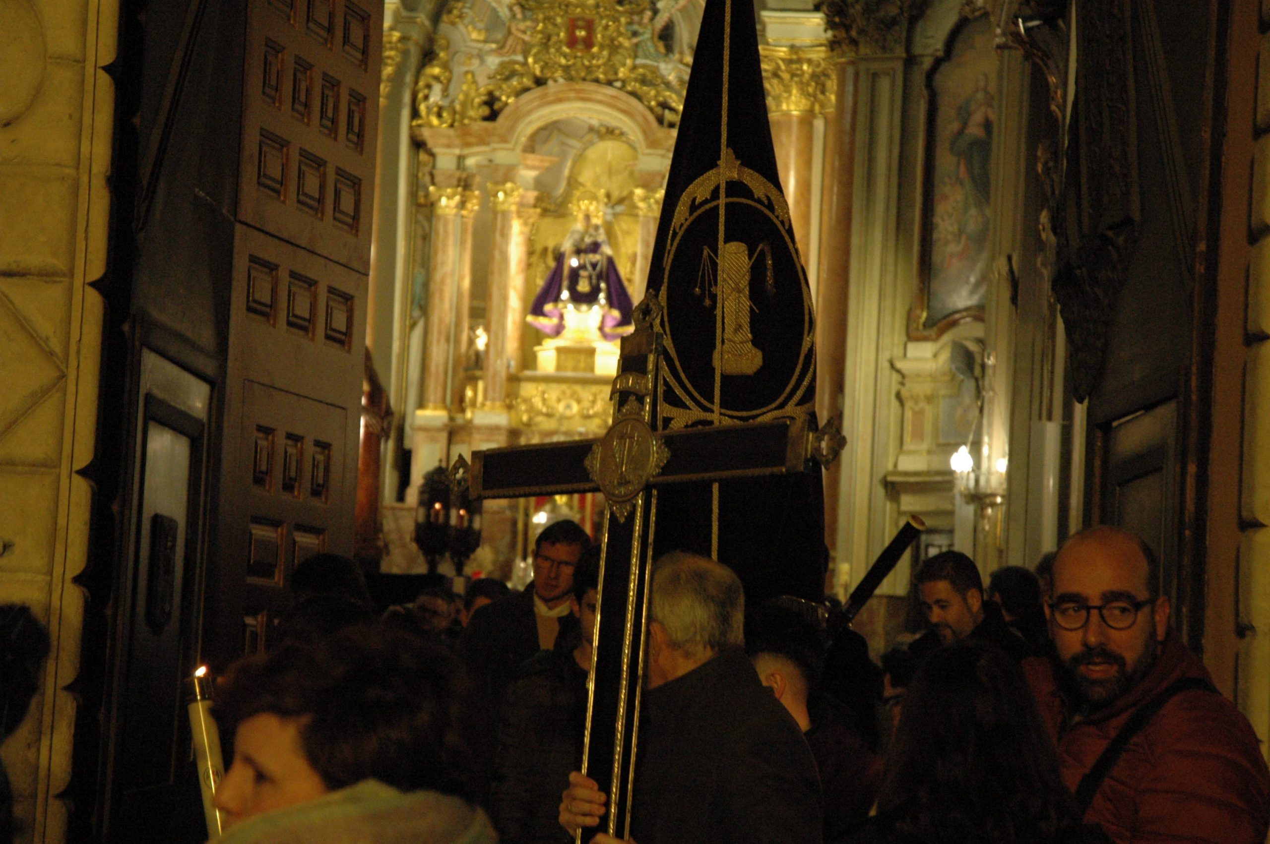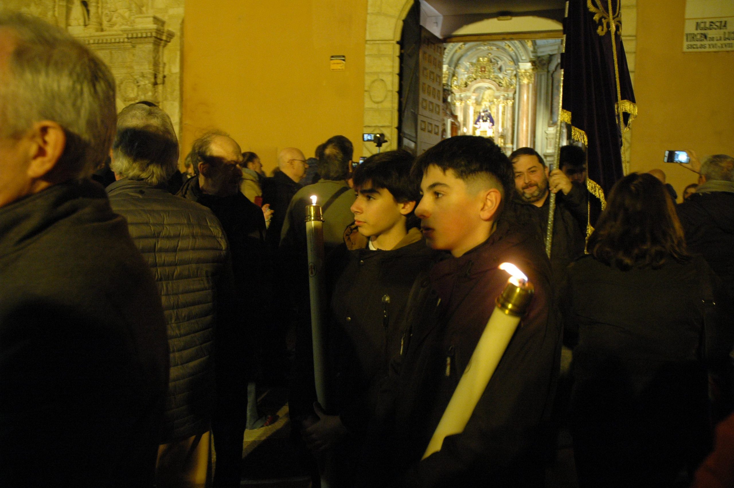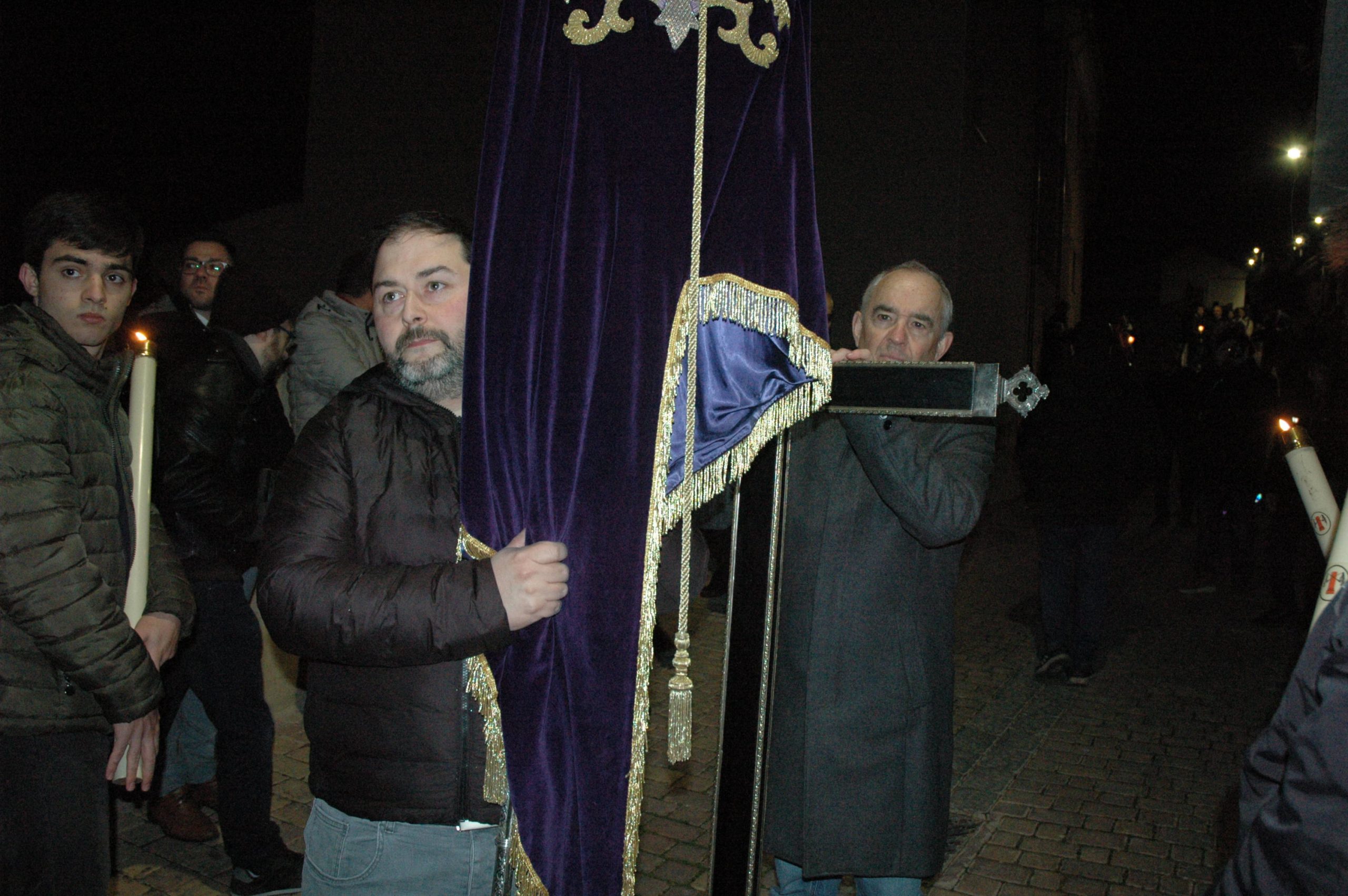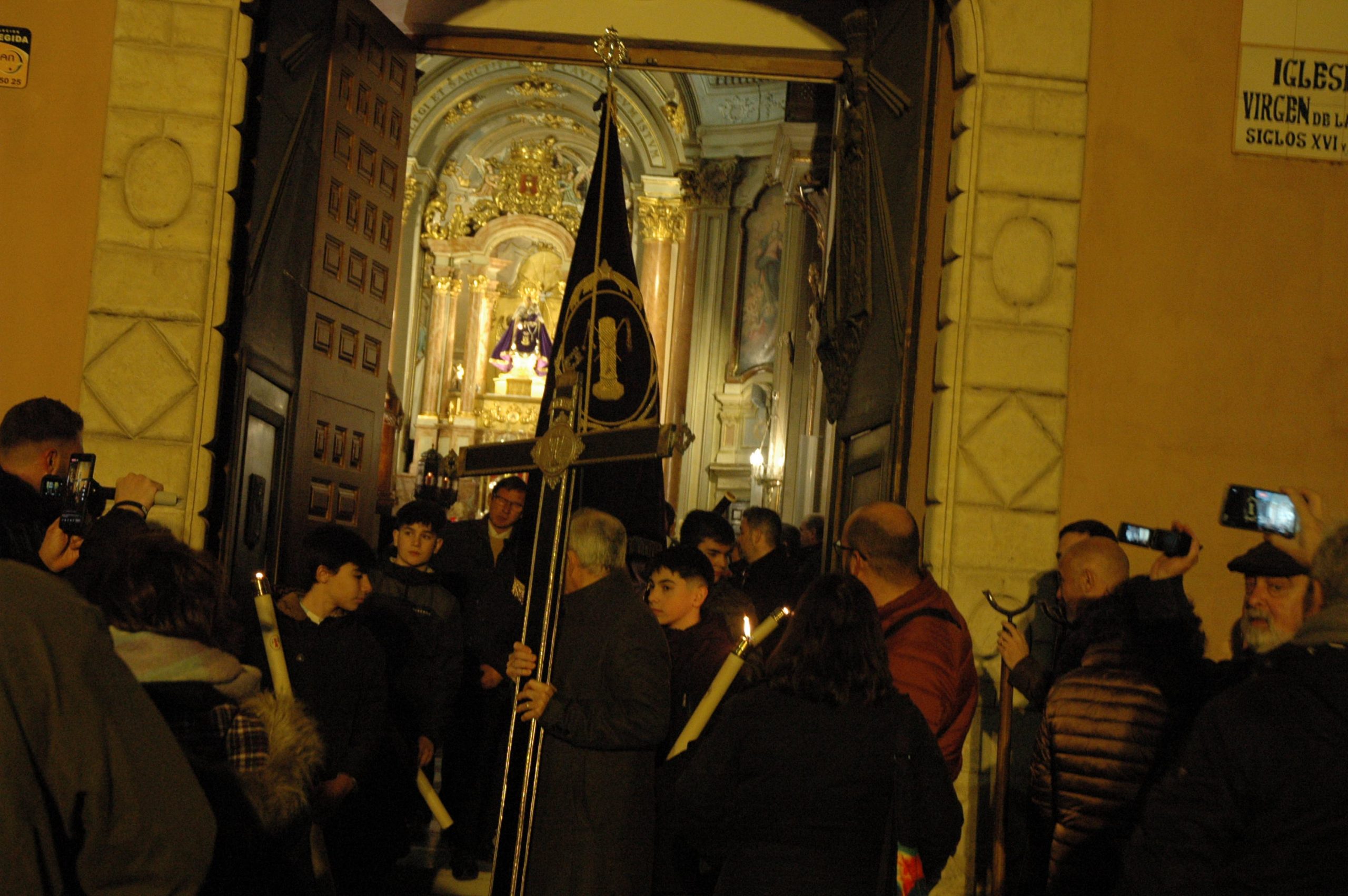 Pasadas las ocho de la tarde, pocos minutos después de la conclusión de la tradicional misa, se han abierto las puertas de la iglesia de la Virgen de la Luz para que se pusiera un cortejo procesional que tenía como principal novedad el acompañamiento musical del Trío de Capilla de Cuenca, que introdujo un nuevo matiz sonoro a una procesión que siempre se ha movido a golpe de rezo y horquilla.