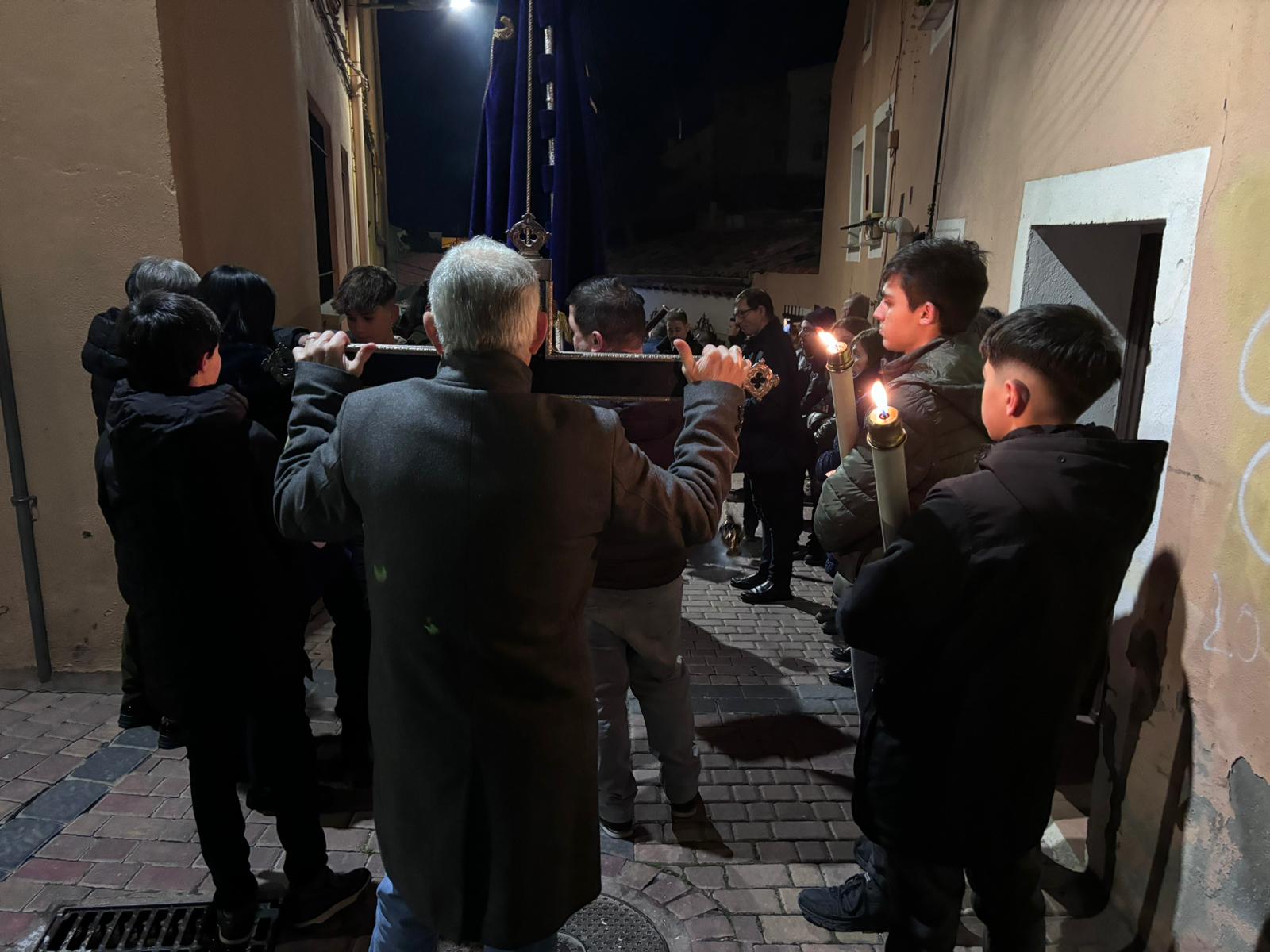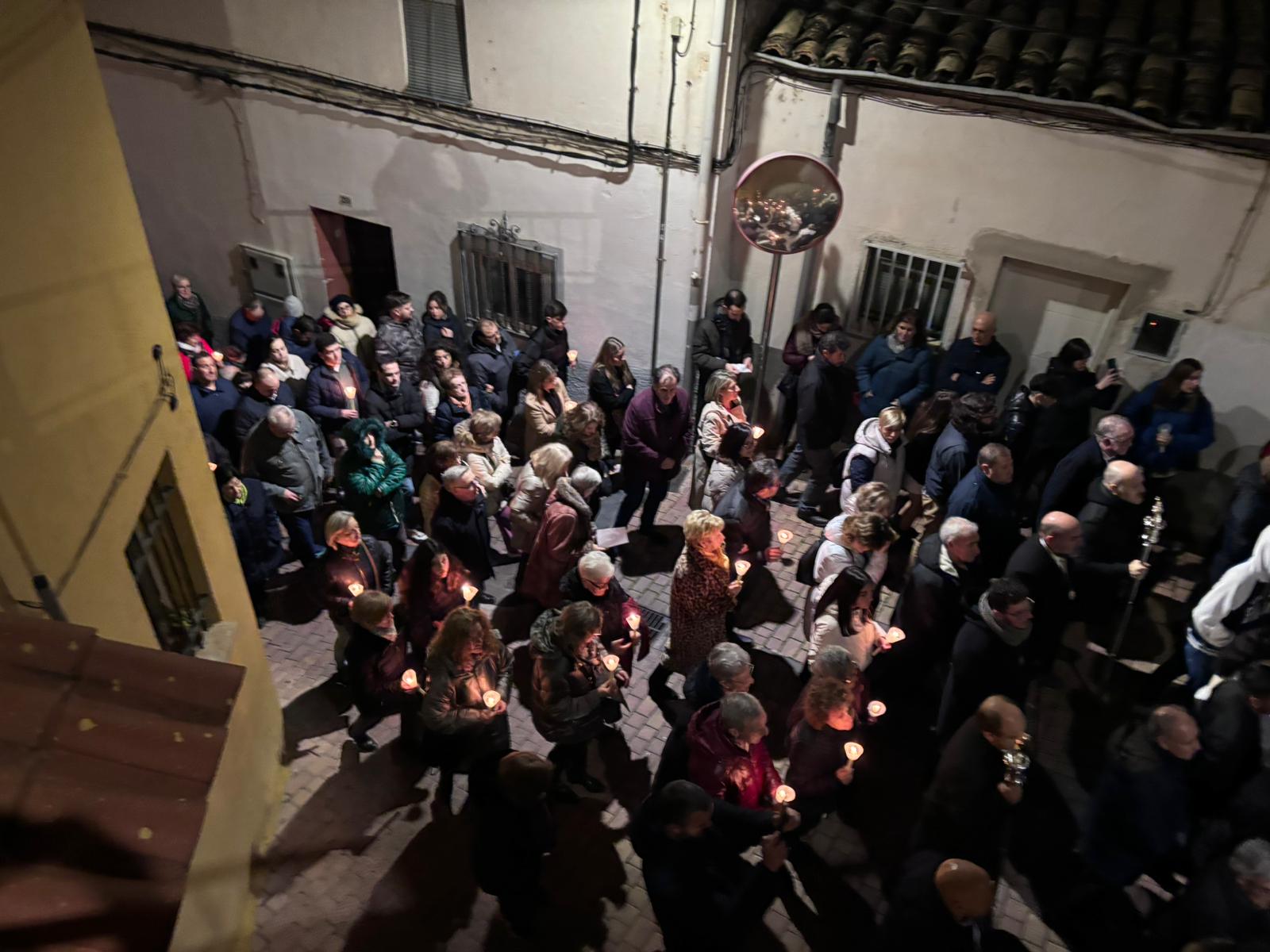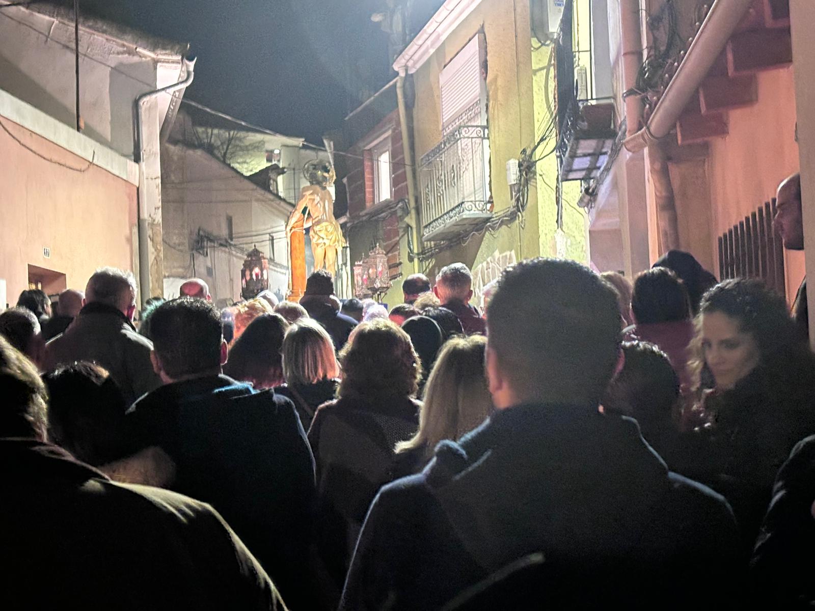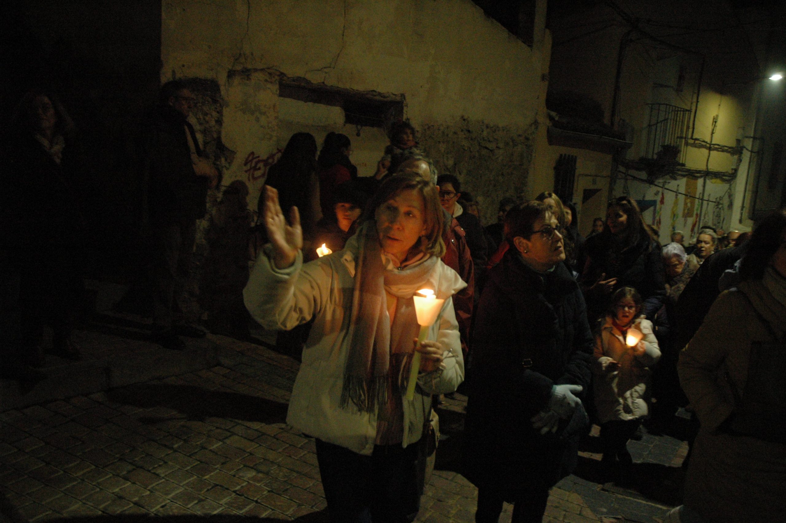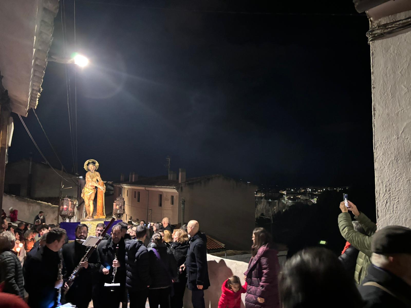 Una multitud ha acompañado a Jesús Amarrado a la Columna en su Vía Crucis por el barrio de San Antón en el primer viernes de Cuaresma, en una fría noche de oraciones y velas que han recordado a los conquenses que ahora sí que huele a cera.