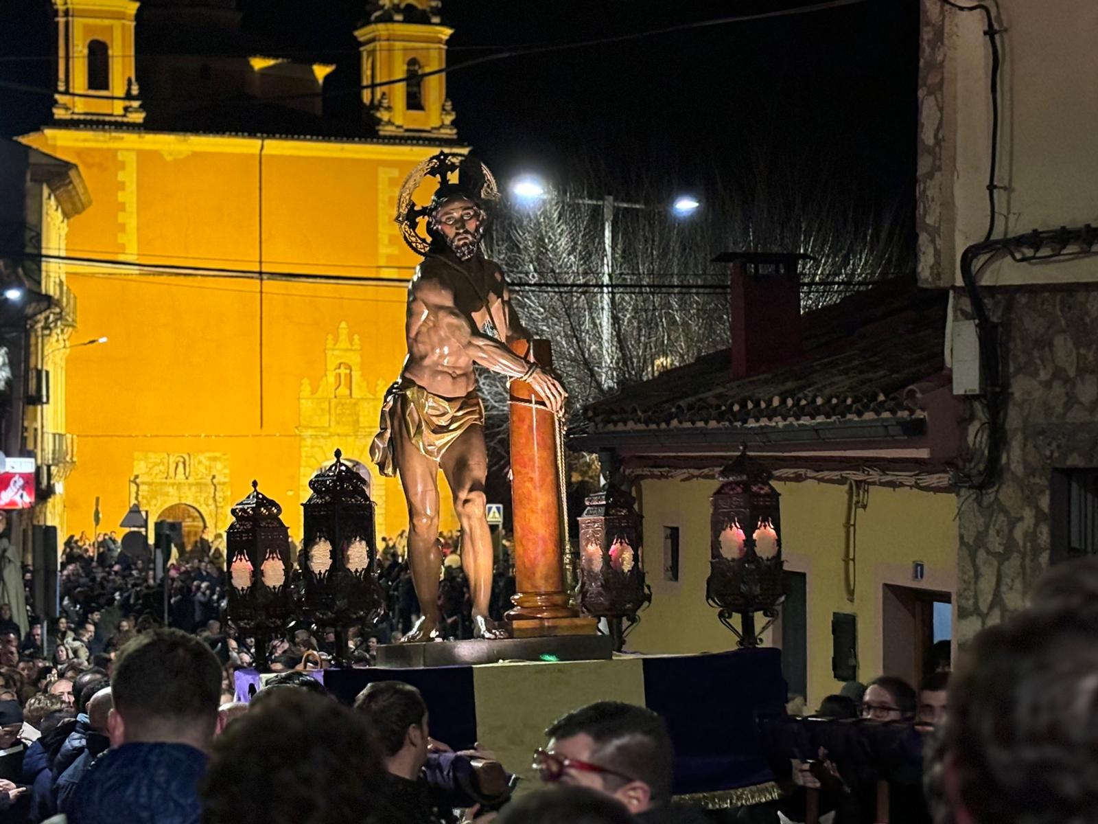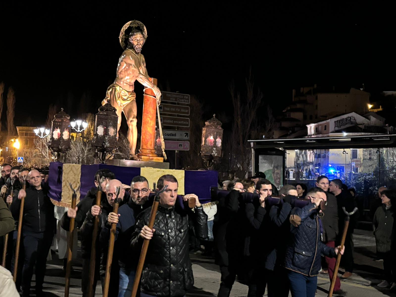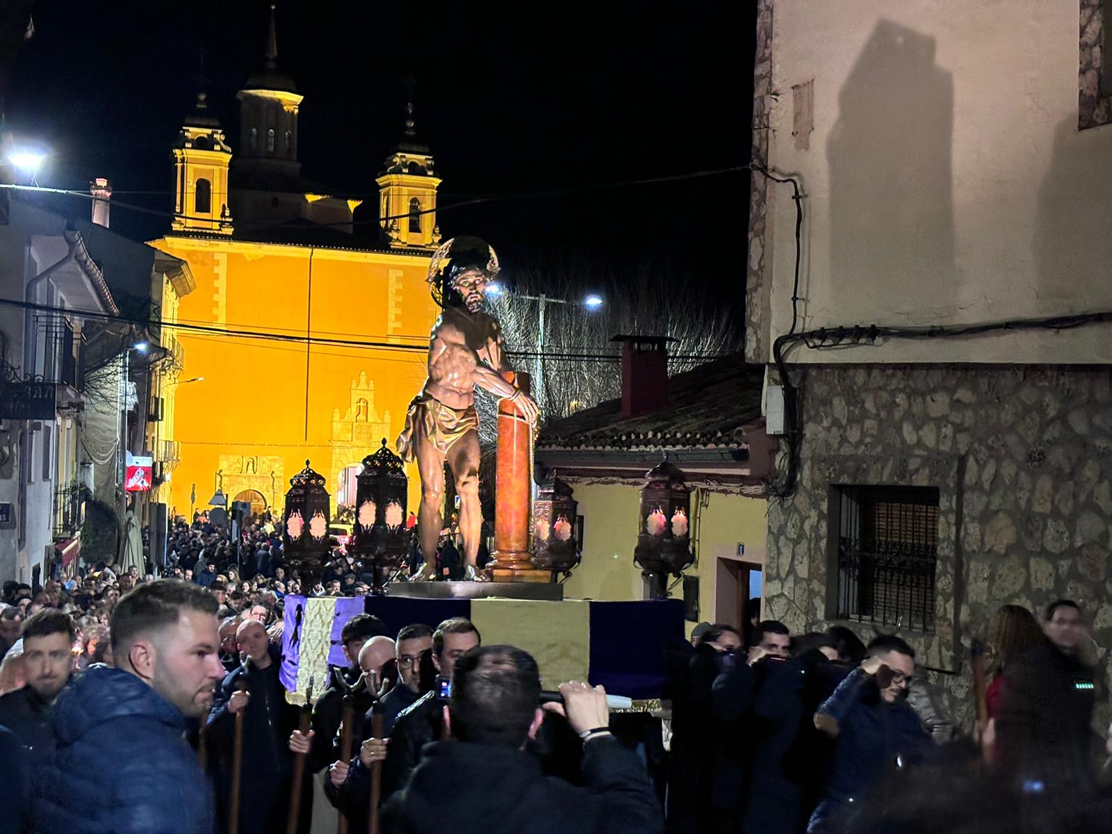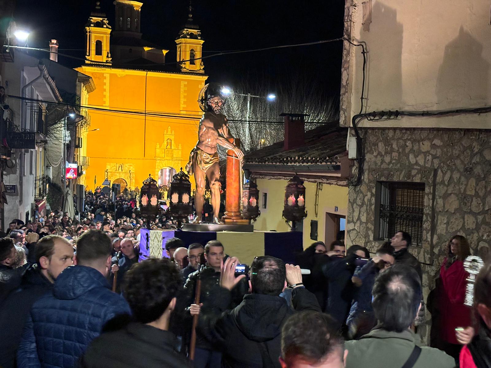 Una multitud ha acompañado a Jesús Amarrado a la Columna en su Vía Crucis por el barrio de San Antón en el primer viernes de Cuaresma, en una fría noche de oraciones y velas que han recordado a los conquenses que ahora sí que huele a cera.