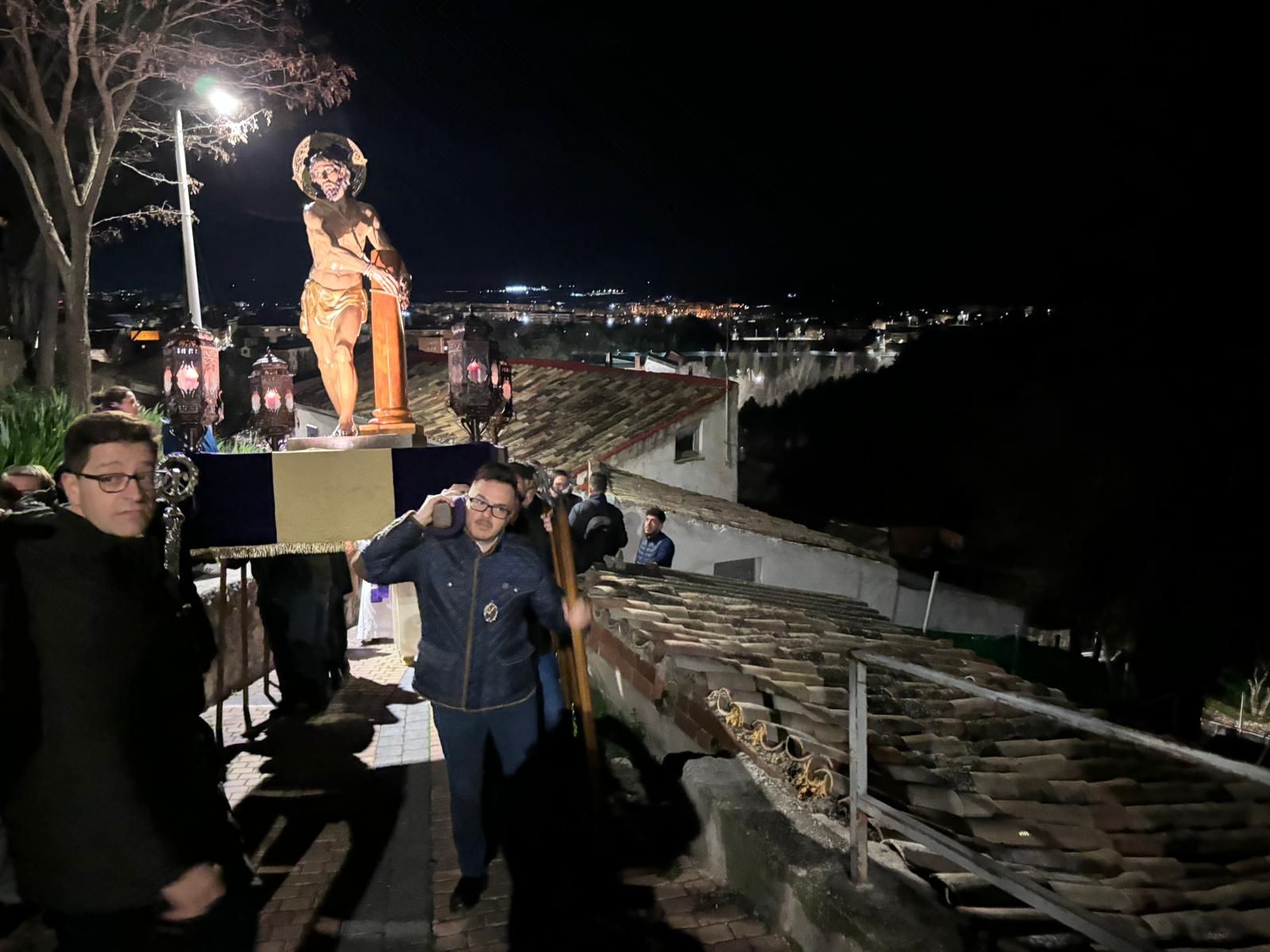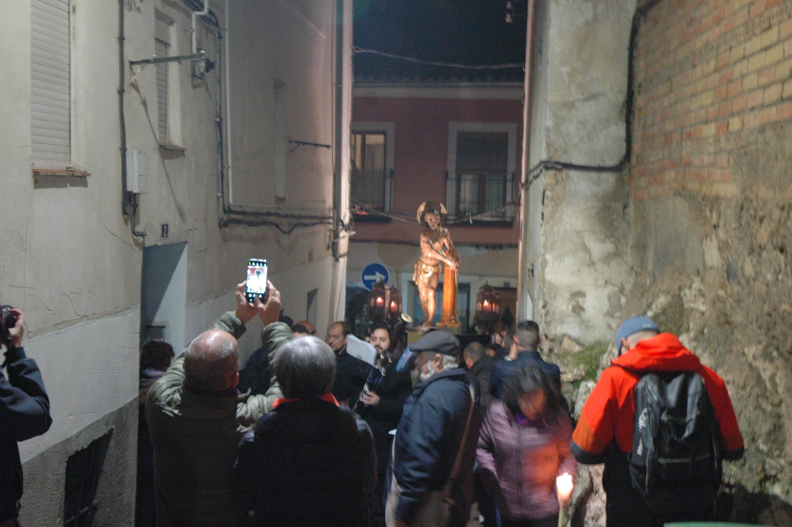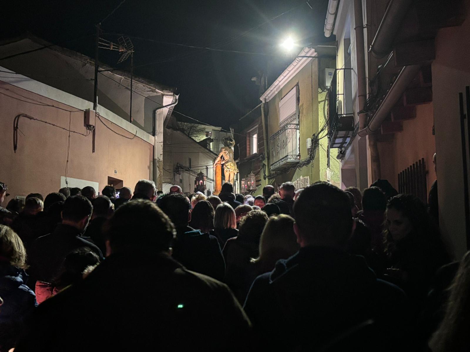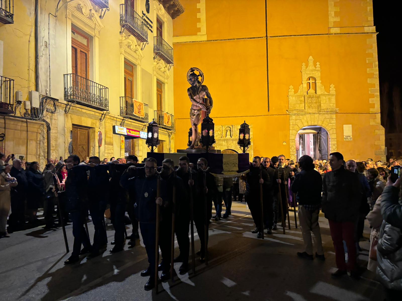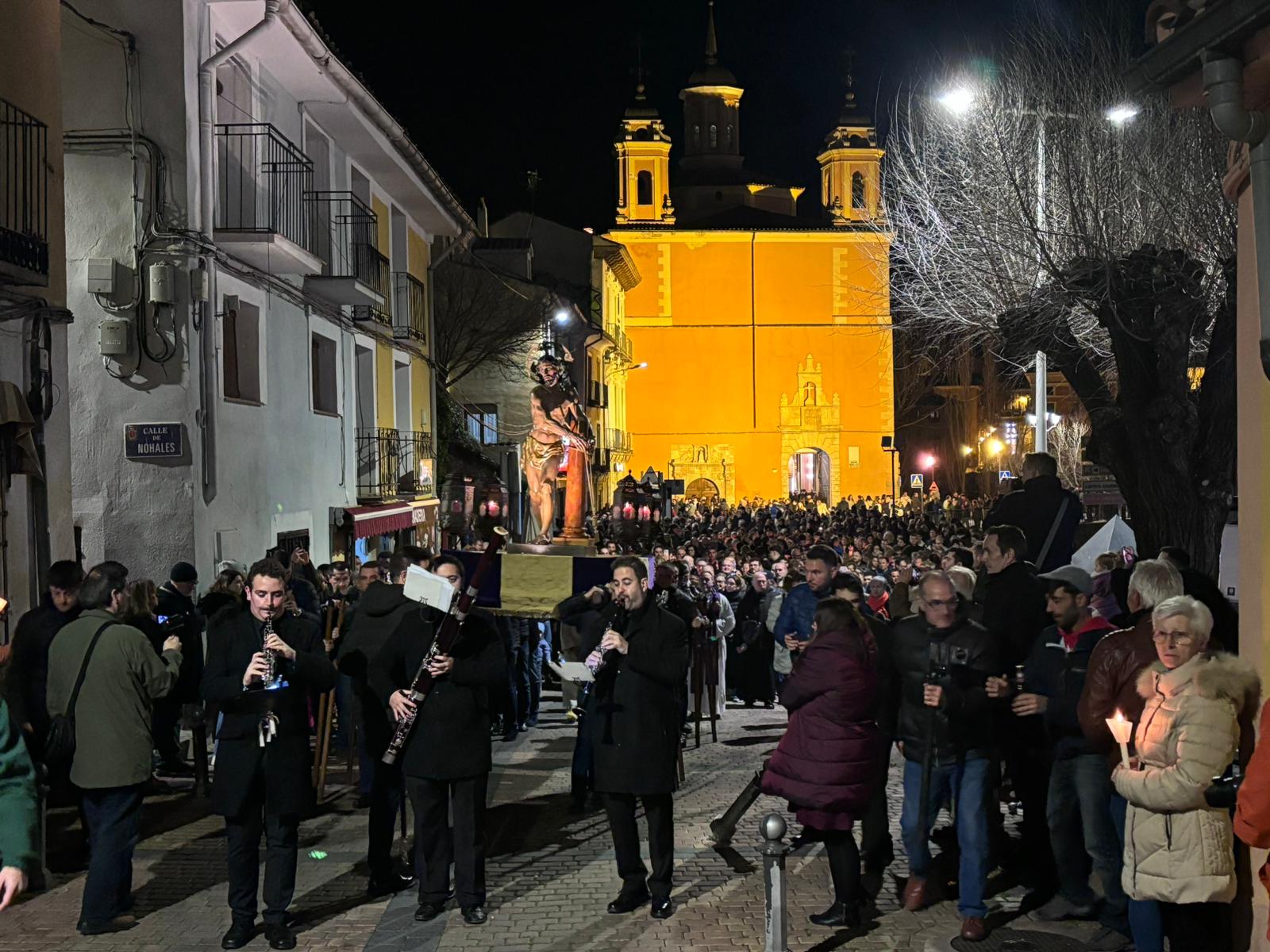 Una multitud ha acompañado a Jesús Amarrado a la Columna en su Vía Crucis por el barrio de San Antón en el primer viernes de Cuaresma, en una fría noche de oraciones y velas que han recordado a los conquenses que ahora sí que huele a cera.