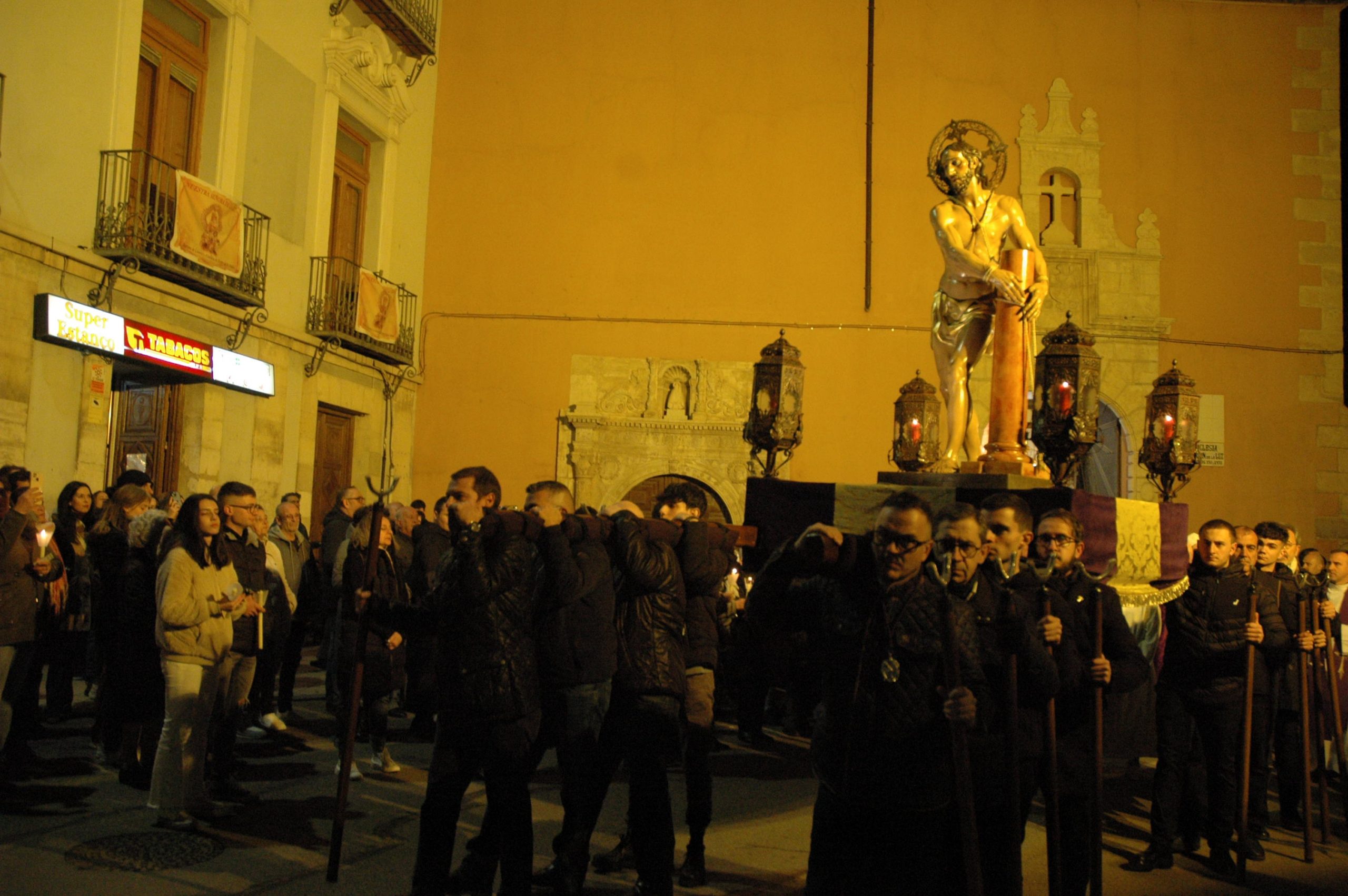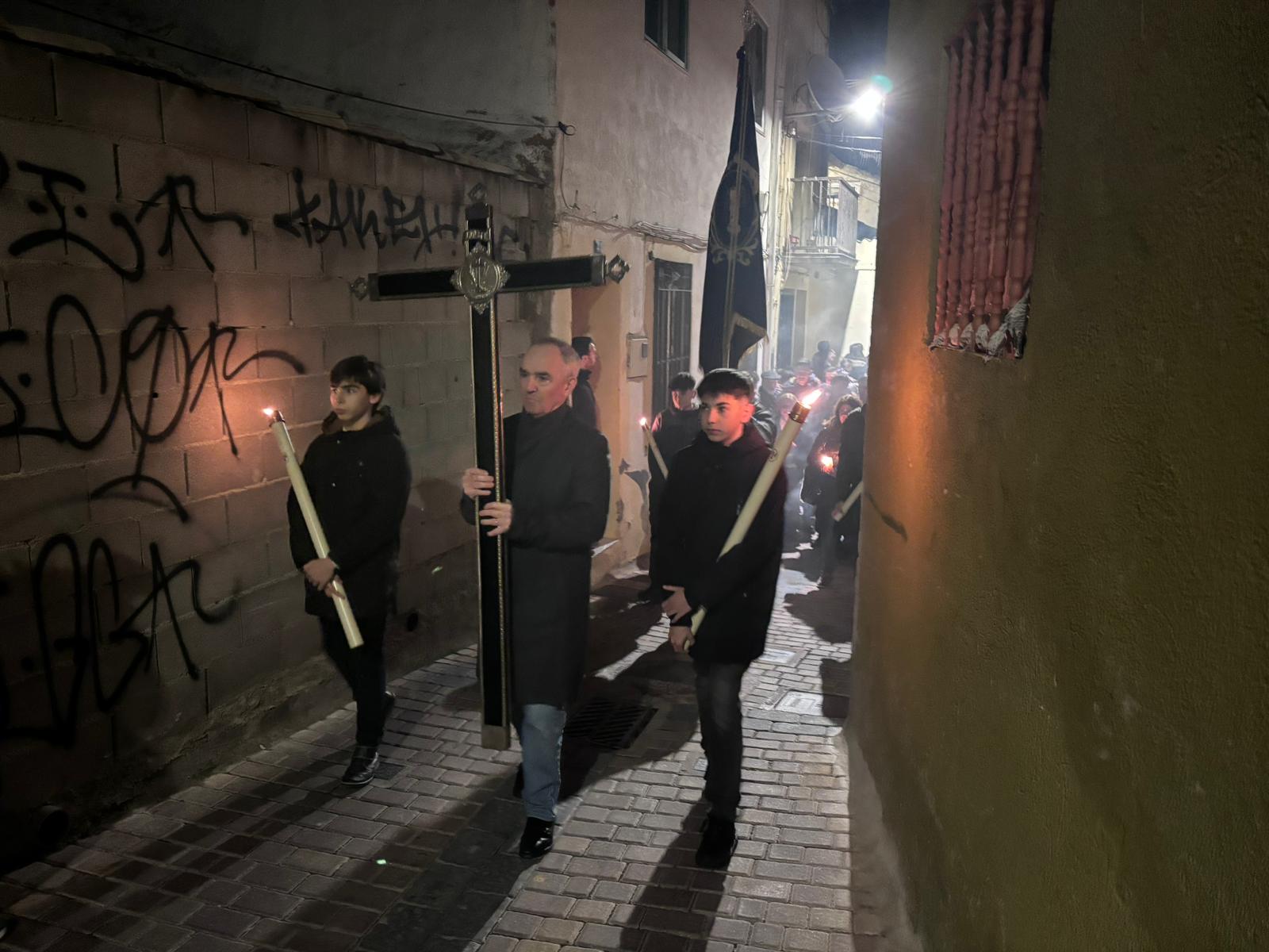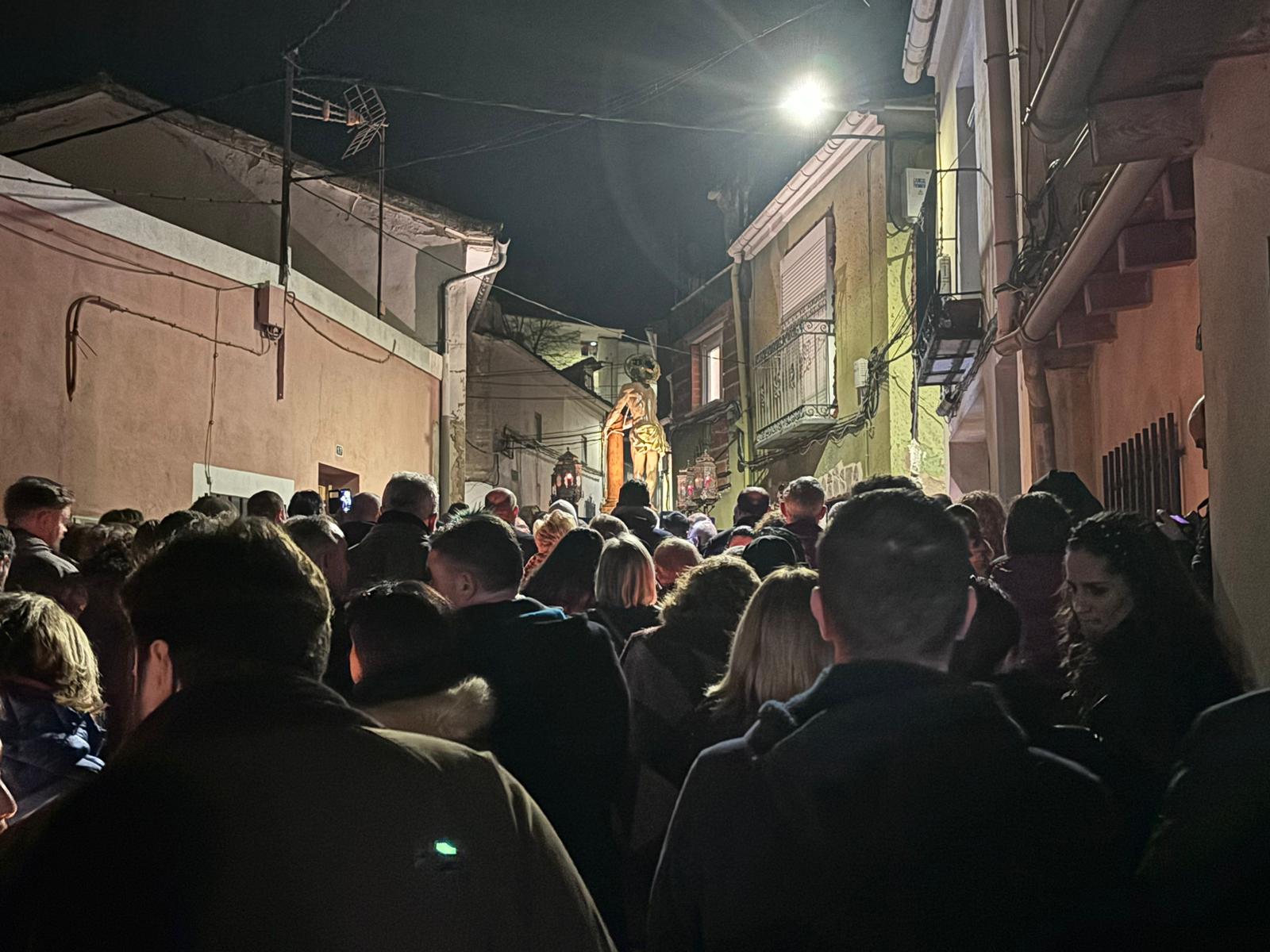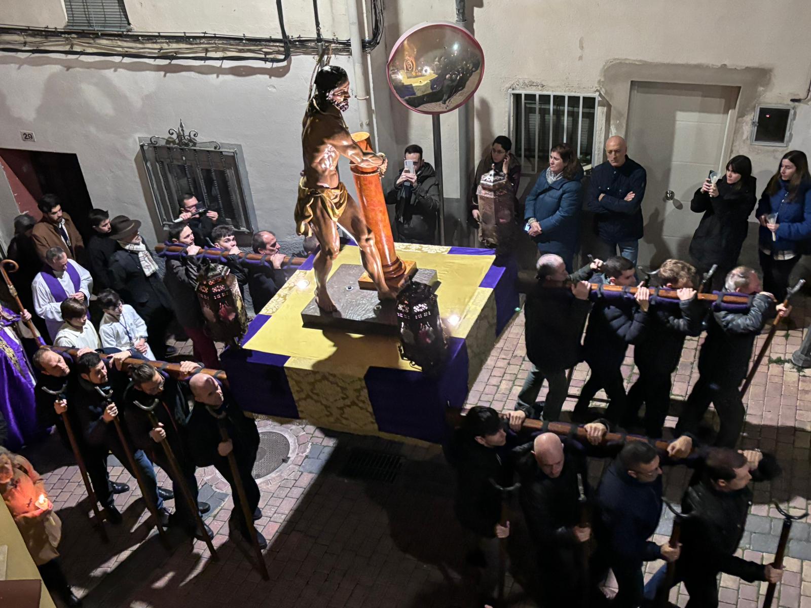 Una multitud ha acompañado a Jesús Amarrado a la Columna en su Vía Crucis por el barrio de San Antón en el primer viernes de Cuaresma, en una fría noche de oraciones y velas que han recordado a los conquenses que ahora sí que huele a cera.