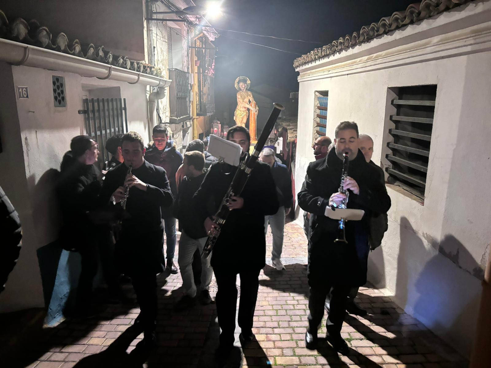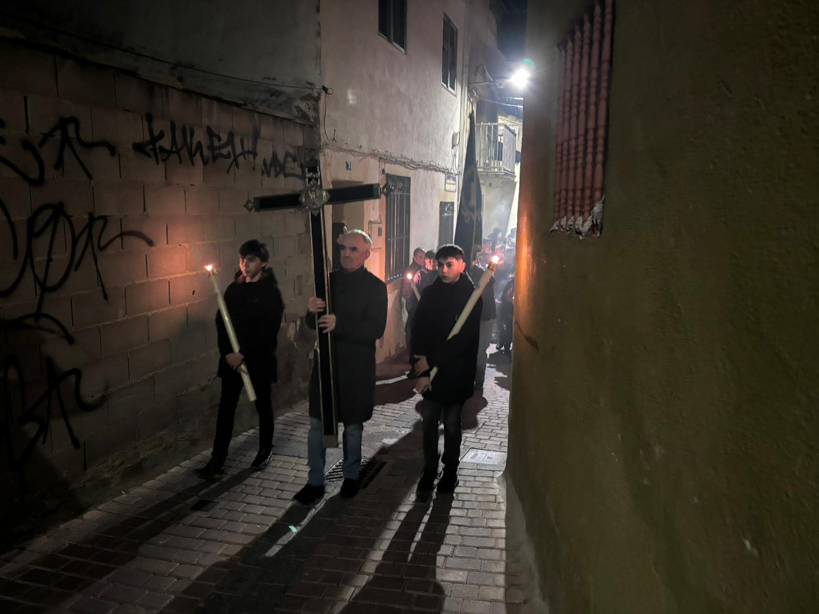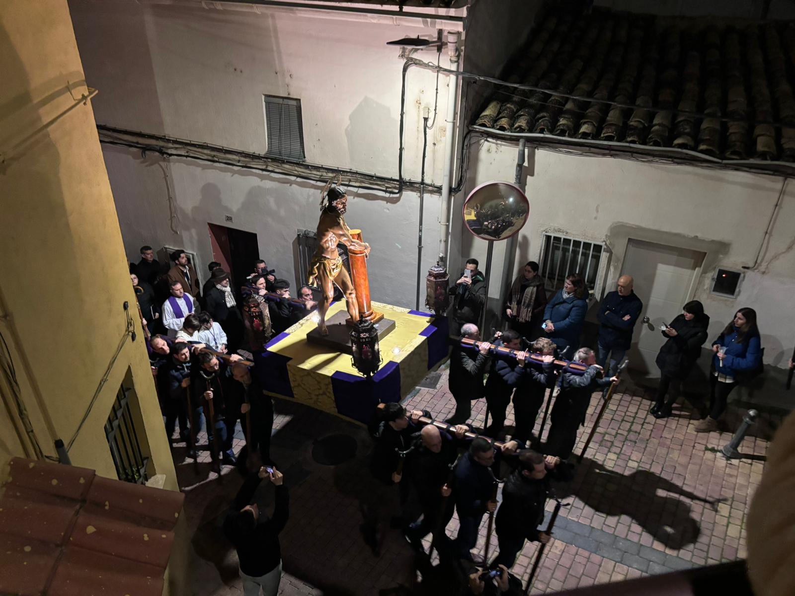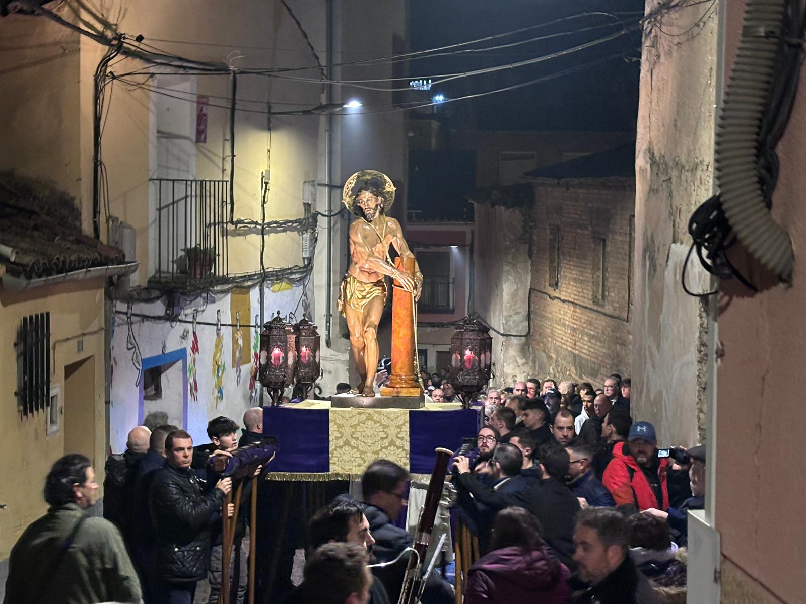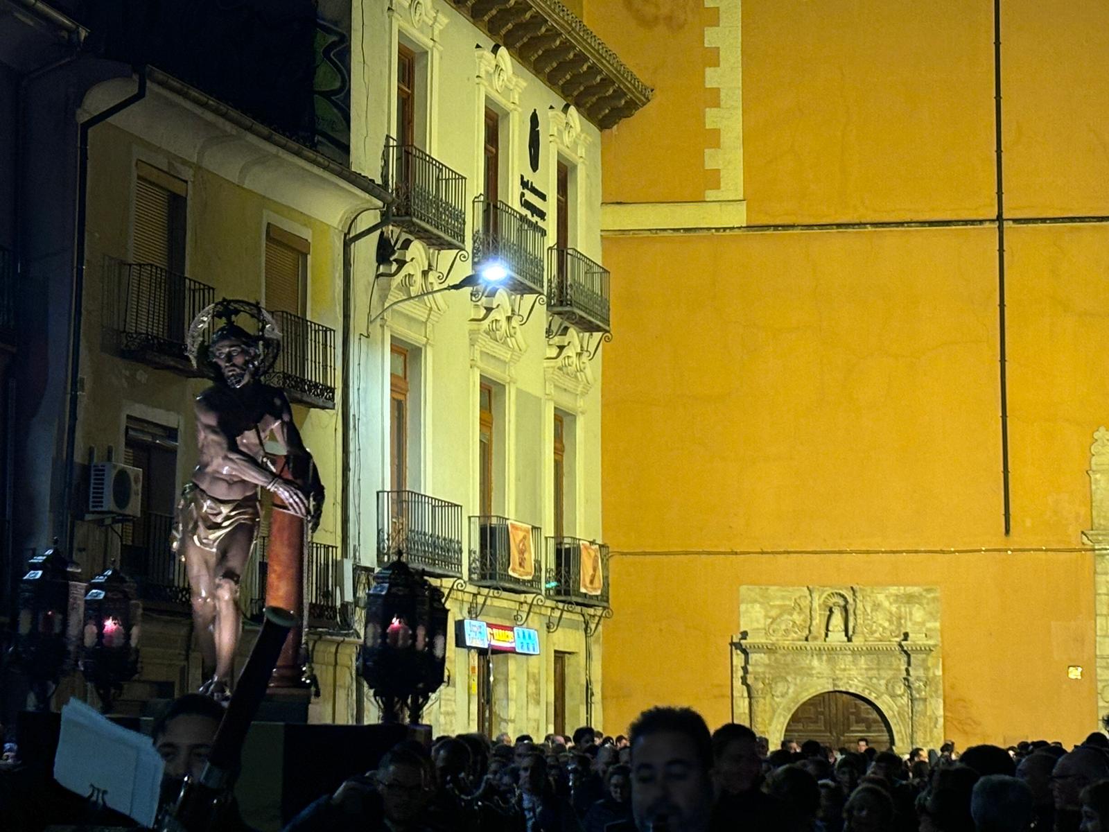 La comitiva penitencial ascendió hasta lo más alto de San Antón a ritmo ceremonioso y con pausas para reflexionar sobre las lecturas de cada una de las estaciones. Cumplidas las estaciones, el Amarrado volvió a desplazarse entre callejuelas con paredes ornamentadas de grafitis y cables para regresar a su templo de origen, recibido nuevamente por la Cuenca nazarena que ha hecho suya esta cita anual de la hermandad del Jesús Amarrado a la Columna.