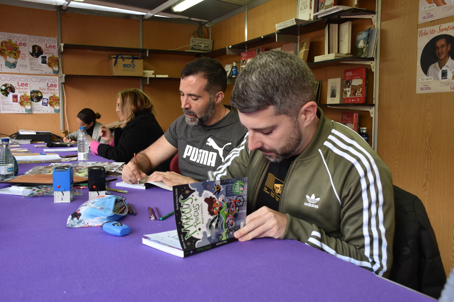 Ambos autores, que han firmado ejemplares durante más de tres horas, se han mostrado gratamente sorprendidos por la Feria del Libro de Cuenca y han agradecido la acogida del público infantil, a su modo de ver “el más exigente pero también el más agradecido”.