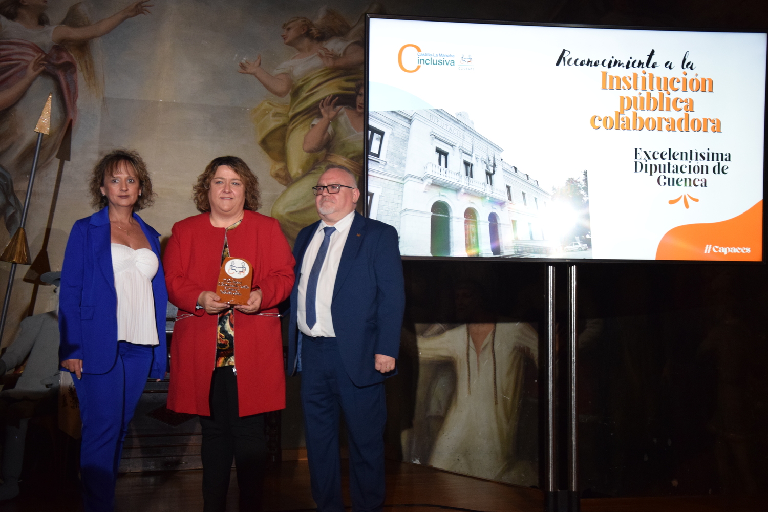 La Confederación de Personas con Discapacidad Física y Orgánica de Castilla-La Mancha (CLM Inclusiva COCEMFE) ha reconocido la labor de la Diputación Provincial de Cuenca, otorgándole el premio ‘Capaces’ a la institución pública este martes en su gala celebrada en el Castillo de San Servando, en Toledo en la que se premió a la empresa Mahler, con sede en Motilla del Palancar.