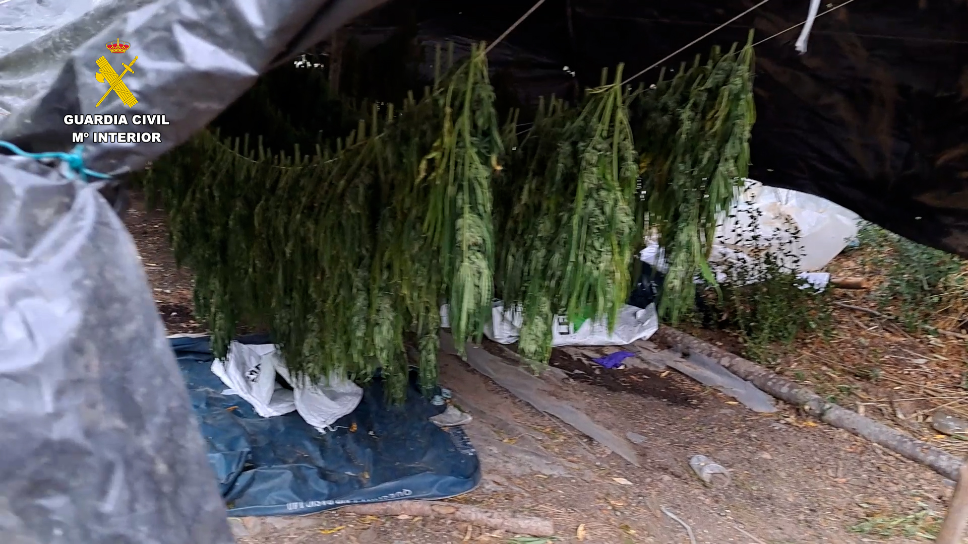Junto al terreno cultivado se hallaron varios espacios explanados, utilizados uno de ellos para colocar una tienda de campaña, donde pernoctaban los detenidos, otro lugar destinado a cocina, y dos más utilizados como secaderos, además de toda la infraestructura necesaria para el cultivo, incluyendo dos balsas de agua conectadas al río Ojos de Moya mediante mangueras y generadores eléctricos