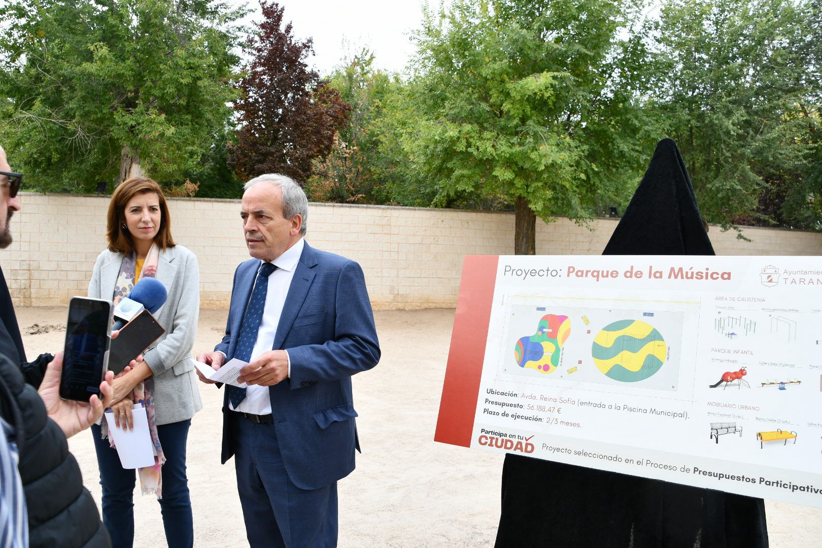 La presentación del proceso de los Presupuestos Participativos 2026 ha tenido lugar esta mañana en la zona de recreo situada delante del acceso a la piscina y junto a la nave de ferias, que es precisamente donde se instalará un área de calistenia, uno de los proyectos que ganó el año pasado. Además, se integrará en el que será el futuro Parque de la Música, con la renovación de la zona infantil actual y el mobiliario urbano, que también fue uno de los proyectos que se presentaron.