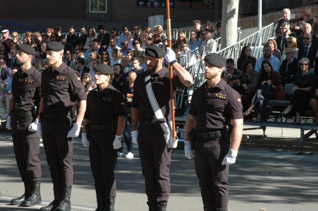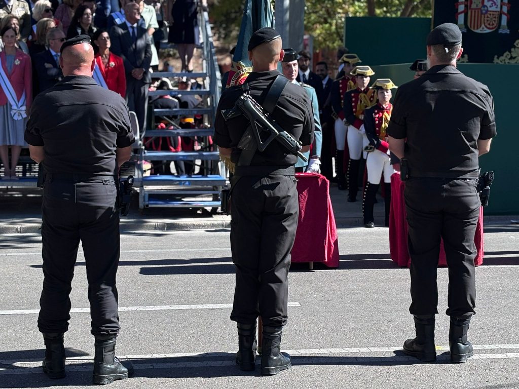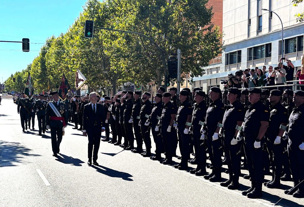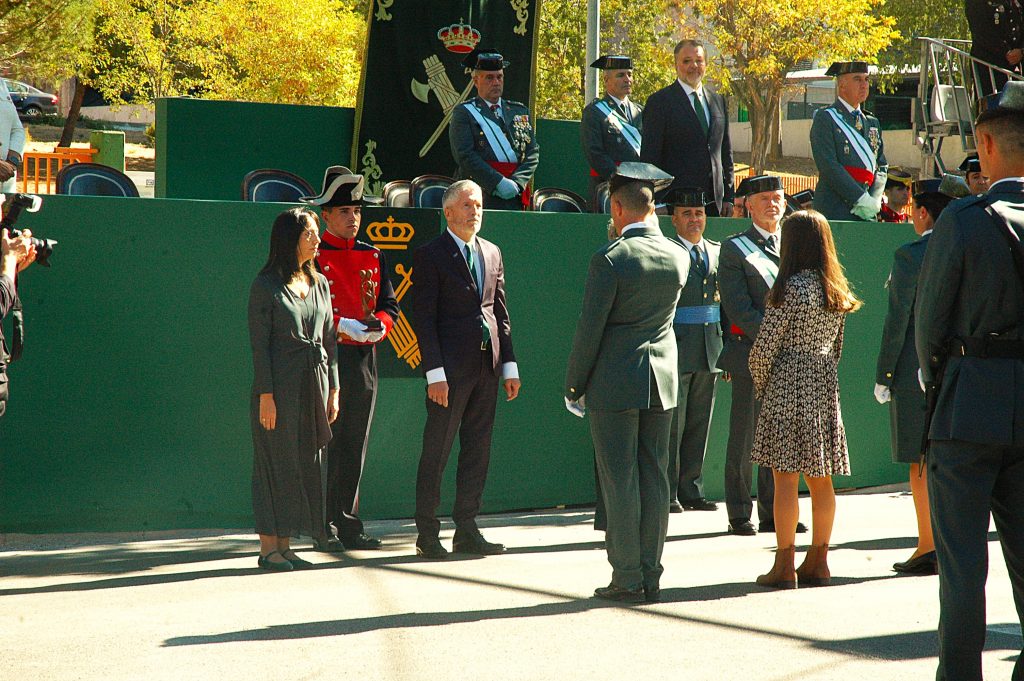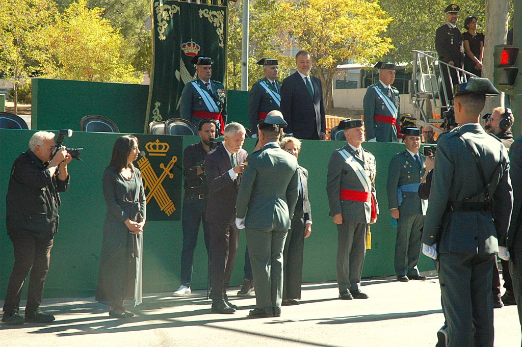 El acto ha sido presidido por el ministro del Interior, Fernando Grande-Marlaska, que ha pasado revista a las tropas y que ha sido recibido con algunos pitos que sonaban desde la distancia marcada por las fuertes medidas de seguridad que han velado por el desarrollo del evento.