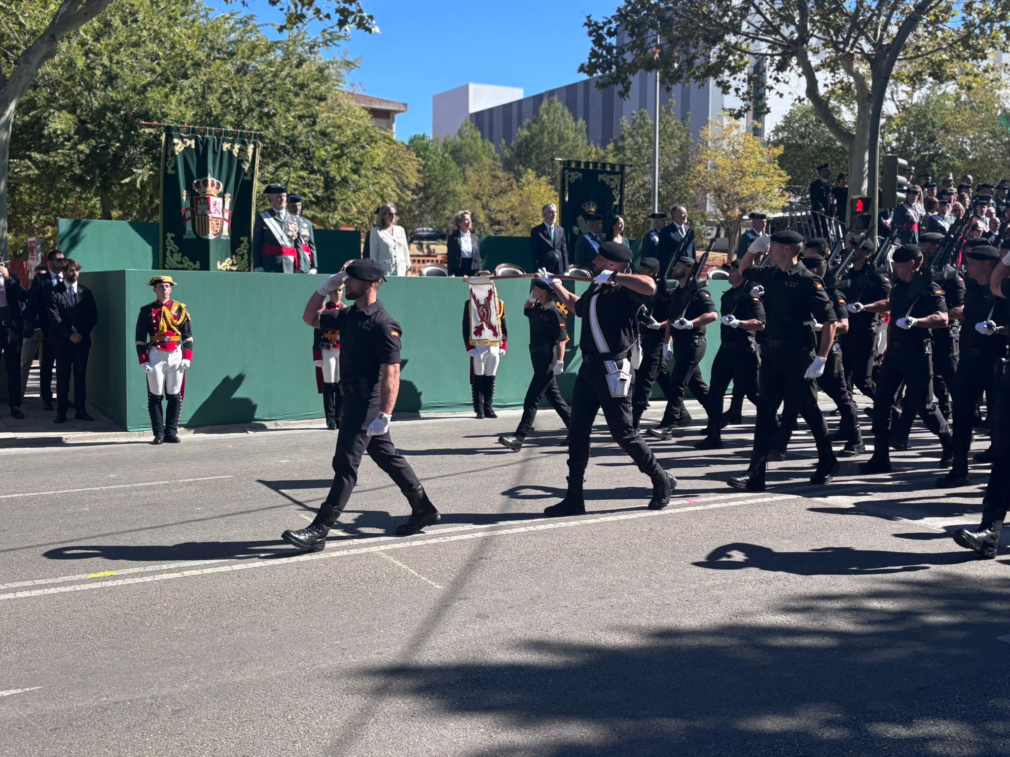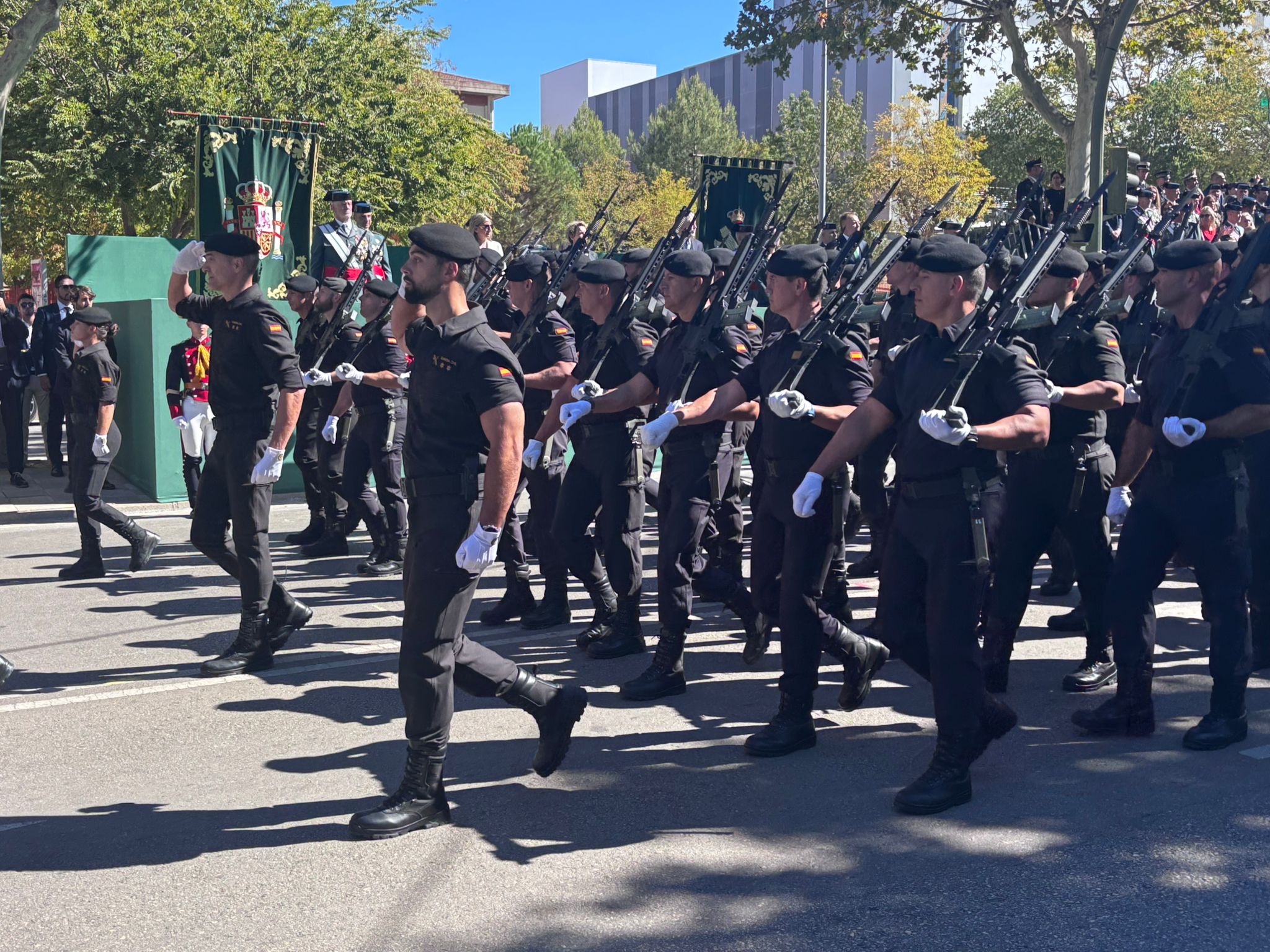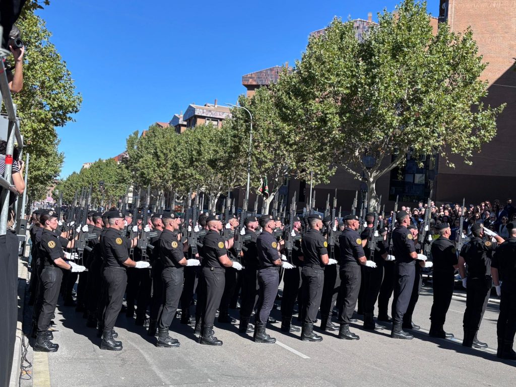 El acto ha sido presidido por el ministro del Interior, Fernando Grande-Marlaska, que ha pasado revista a las tropas y que ha sido recibido con algunos pitos que sonaban desde la distancia marcada por las fuertes medidas de seguridad que han velado por el desarrollo del evento.