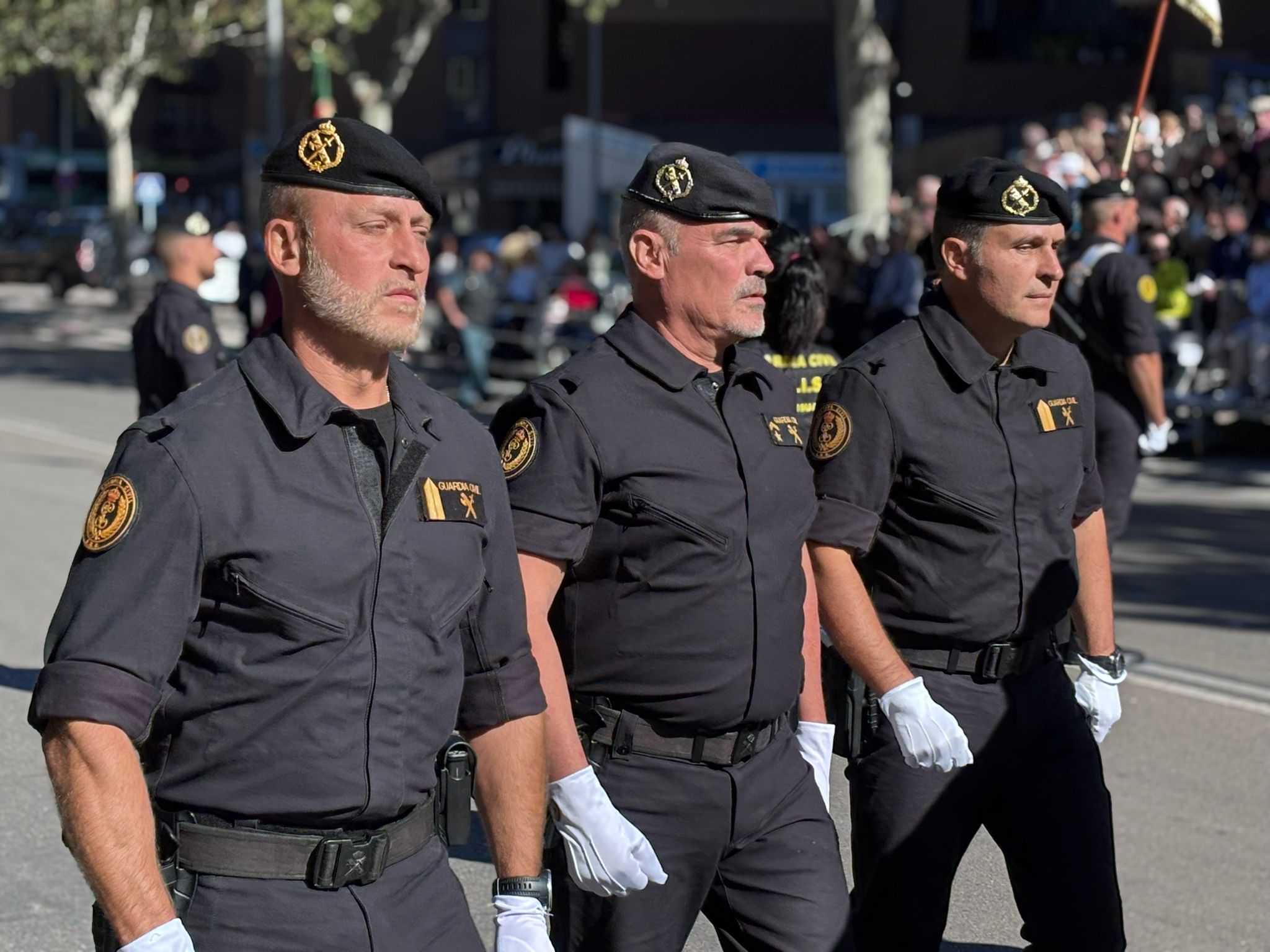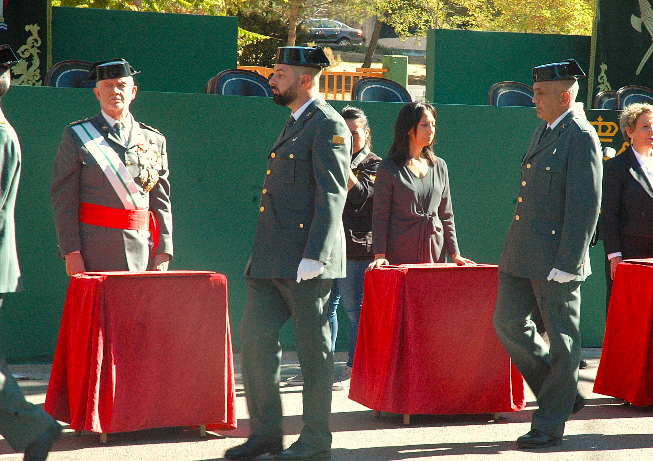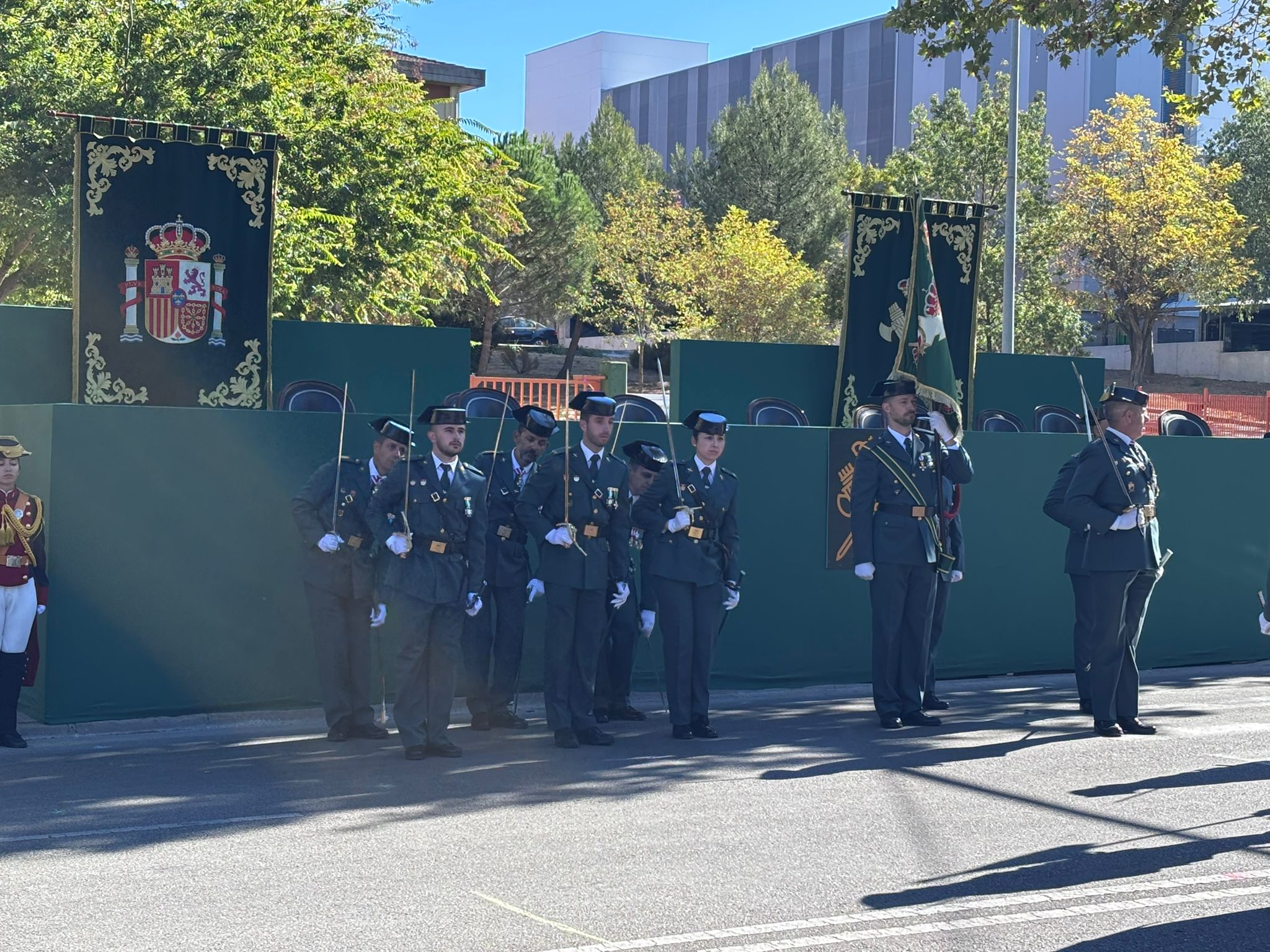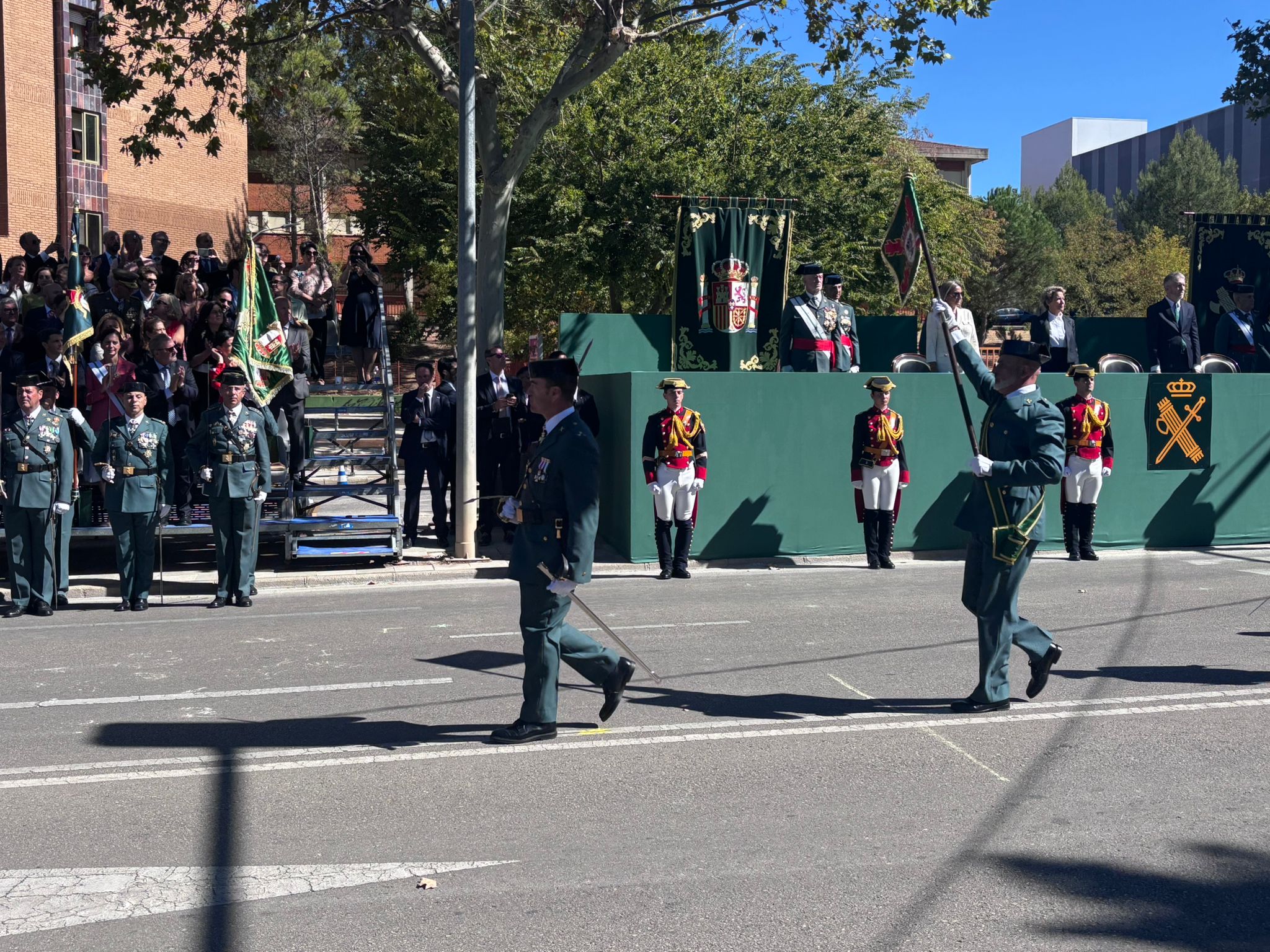 Finalizadas las intervenciones, se ha celebrado un homenaje a los agentes que han dado su vida por España y el esperado desfile, que ha contado con las siguientes unidades a pie: escuadra de Gastadores, bandas de Cornetas y Tambores, unidad de Música, batallón de Mando y Bandera, compañía de la Academia de Oficiales de la Guardia Civil de Aranjuez (Madrid), compañía de la Academia de Suboficiales de la Guardia Civil con sede en San Lorenzo de El Escorial (Madrid), compañía del Colegio de Guardias Jóvenes “Duque de Ahumada” Valdemoro (Madrid), compañía de la Agrupación de Reserva y Seguridad y compañía Mixta de la Zona de Castilla- La Mancha.