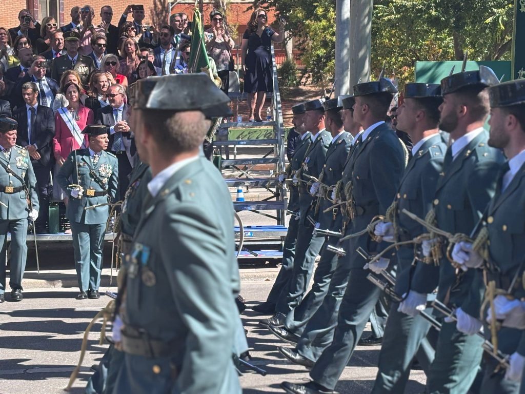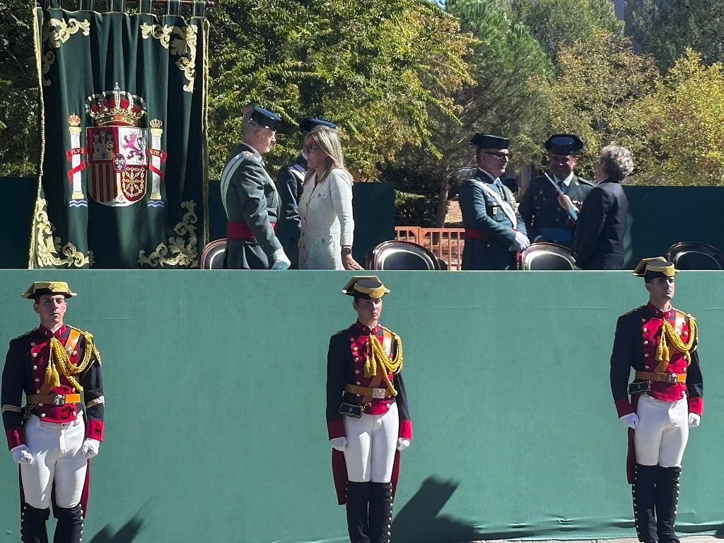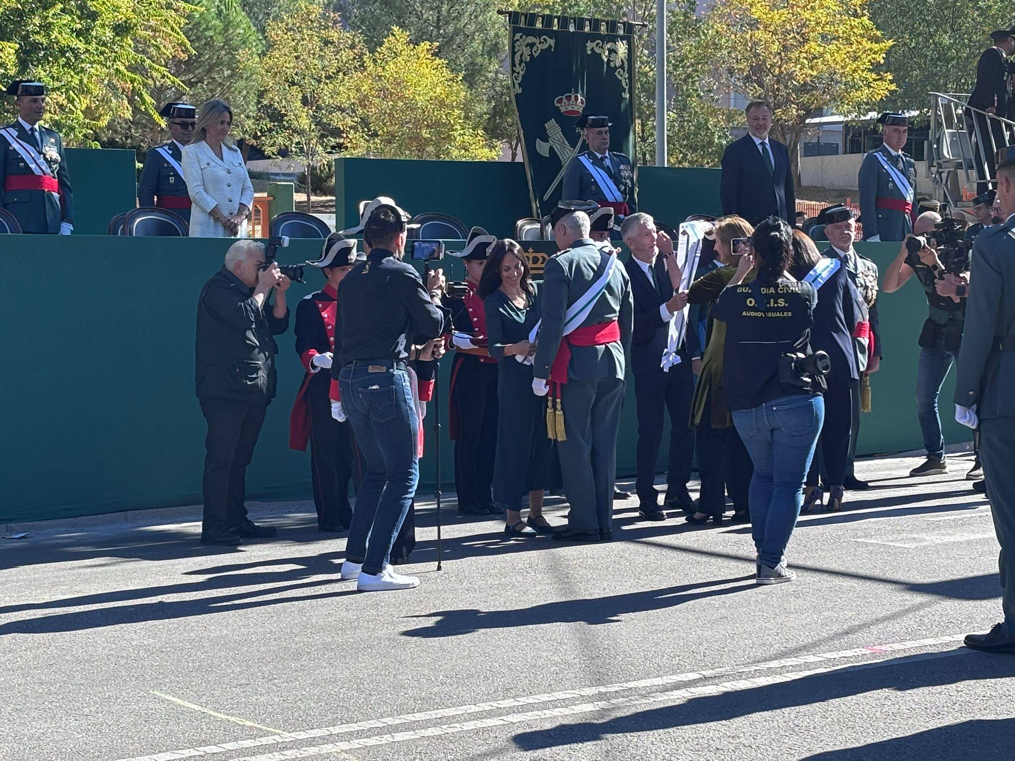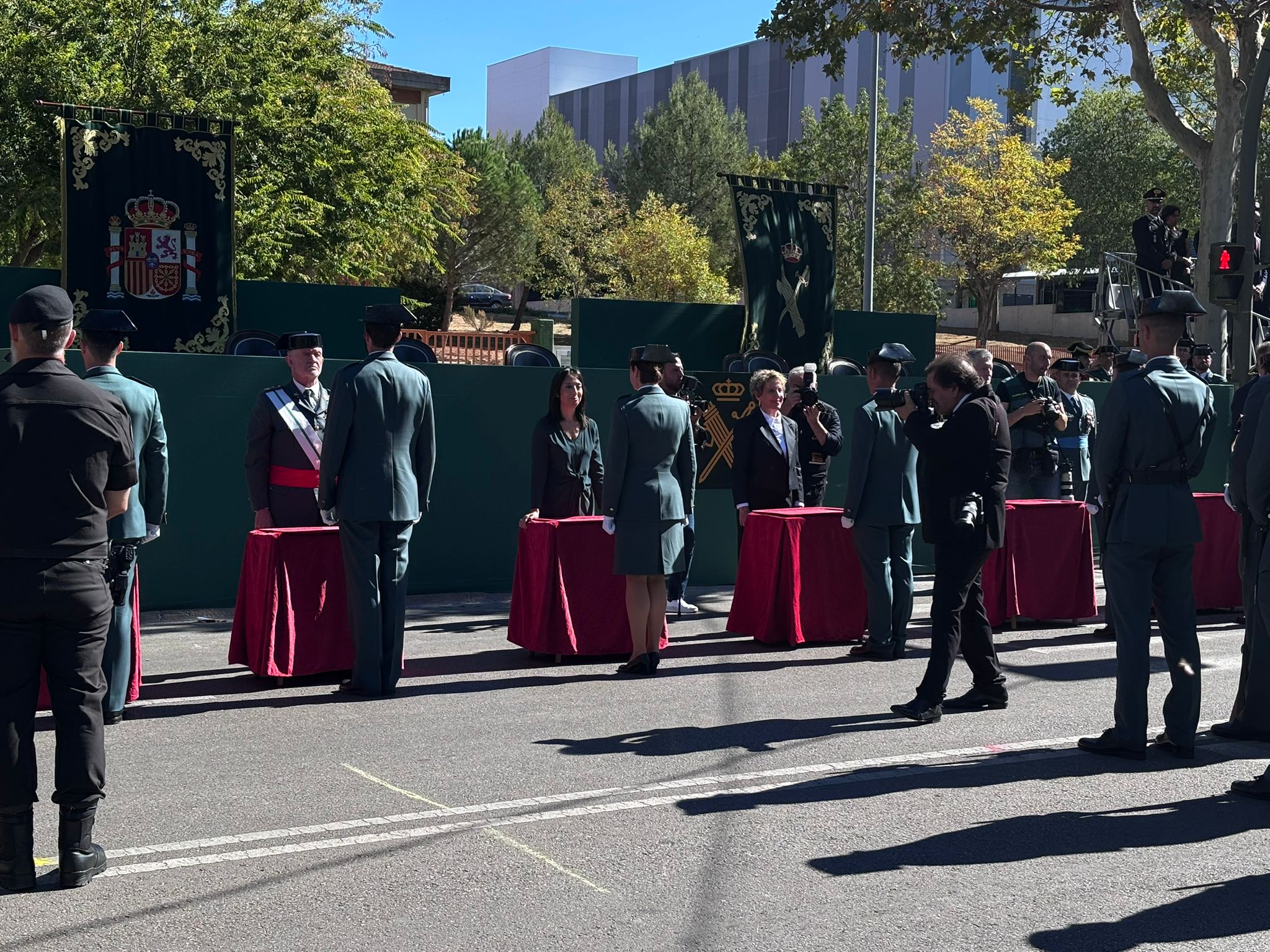 Durante el evento, marcado por un gran calor que ha puesto a prueba la resistencia de las tropas, se han impuesto condecoraciones a una larga lista de servidores públicos de la Guardia Civil. Entre los condecorados se encontraban la jefa de la Comandancia de Cuenca, María José Pascual, y los taranconeros Raquel García y Pablo Catalán, una pareja de guardias civiles que sirven juntos en su tierra y que hoy tienen una hija que quiere seguir sus pasos.