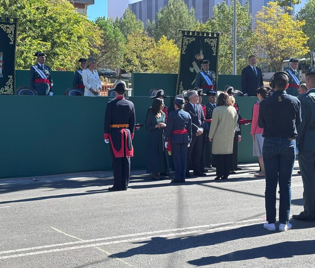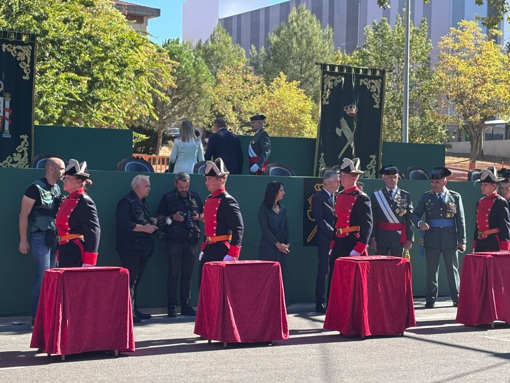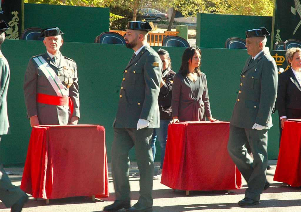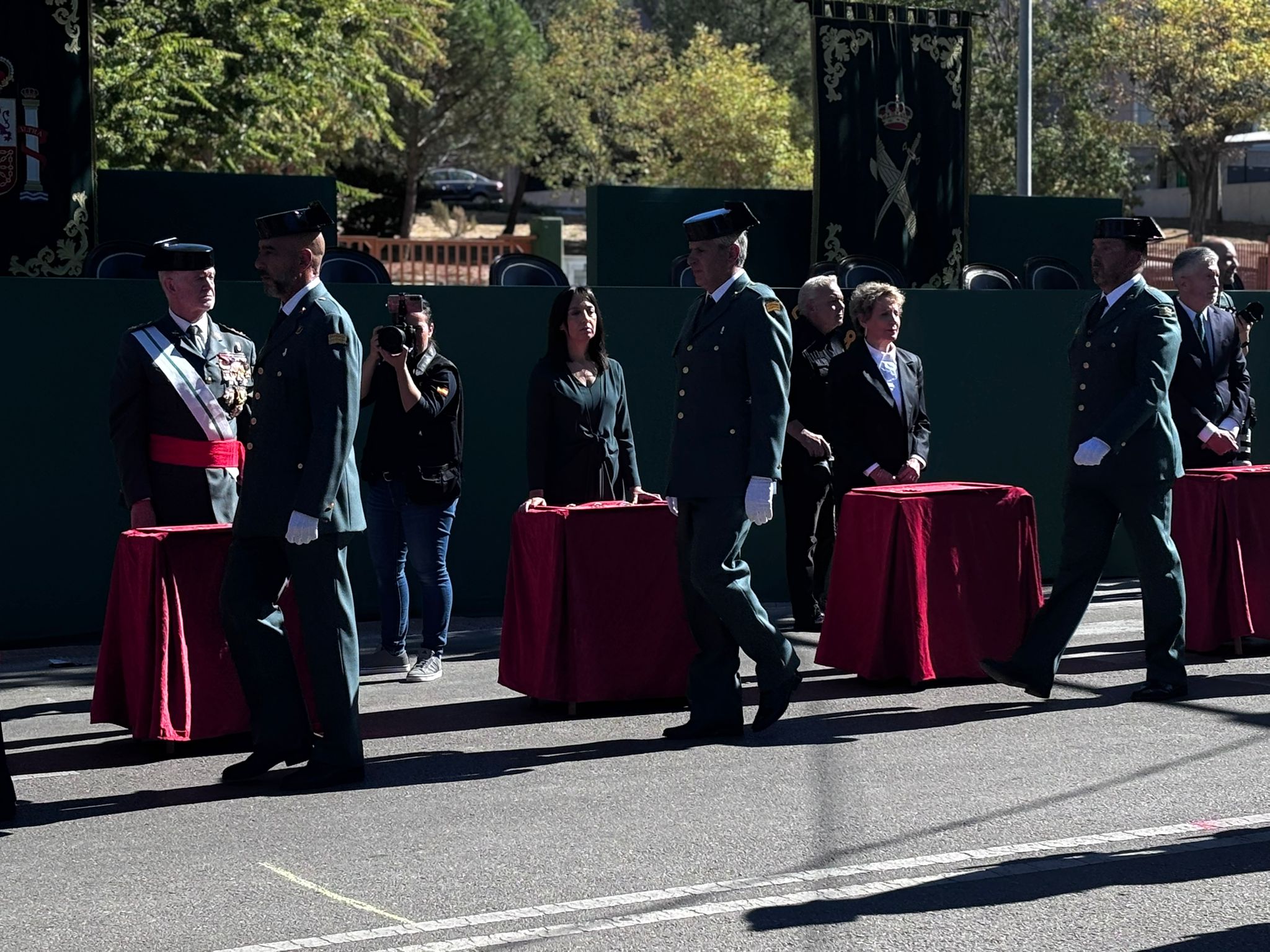 Durante el evento, marcado por un gran calor que ha puesto a prueba la resistencia de las tropas, se han impuesto condecoraciones a una larga lista de servidores públicos de la Guardia Civil. Entre los condecorados se encontraban la jefa de la Comandancia de Cuenca, María José Pascual, y los taranconeros Raquel García y Pablo Catalán, una pareja de guardias civiles que sirven juntos en su tierra y que hoy tienen una hija que quiere seguir sus pasos.