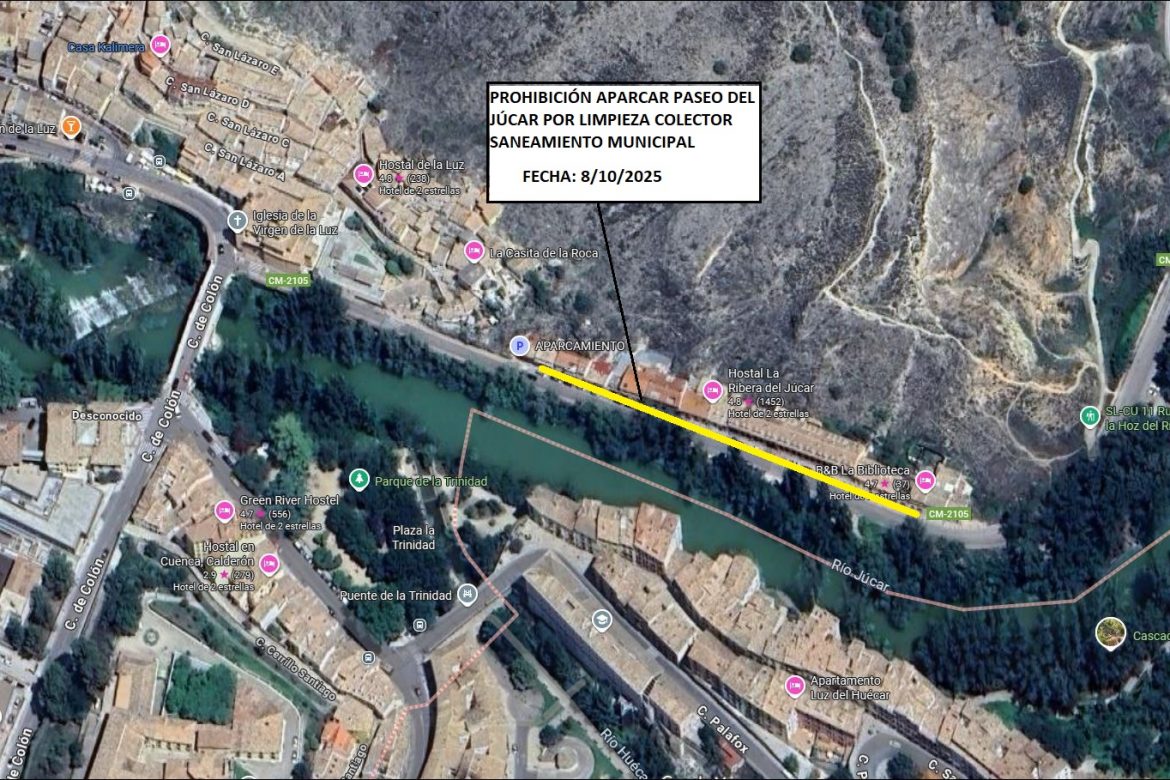 Esta intervención, dentro de las actuaciones de mantenimiento de estas infraestructuras que lleva a cabo el Consistorio conquense, implica la prohibición de aparcamiento en parte de esta vía para poder llevar a cabo los trabajos en el colector y no interferir en el tránsito de vehículos.