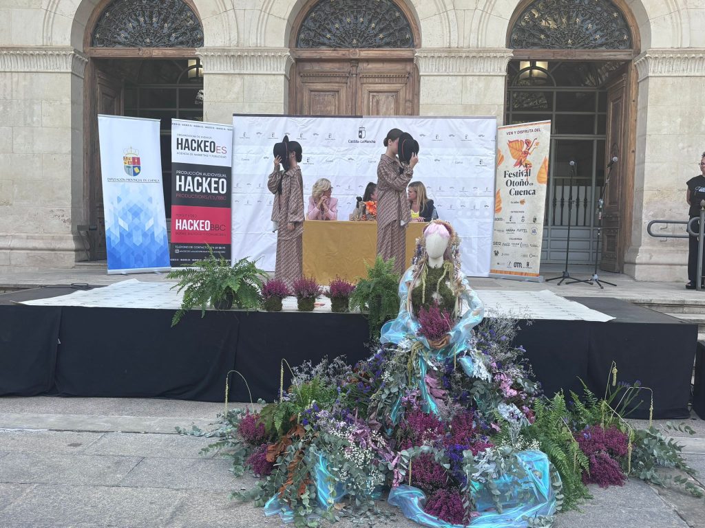 El “mundo místico” es el hilo conductor de un festival y Hackeo le ha dado forma en esta presentación con una escultura floral creada por María Jesús Carretero, de la floristería La Posada y Bloom Laba y la artista visual Ángela Sánchez Camacho.