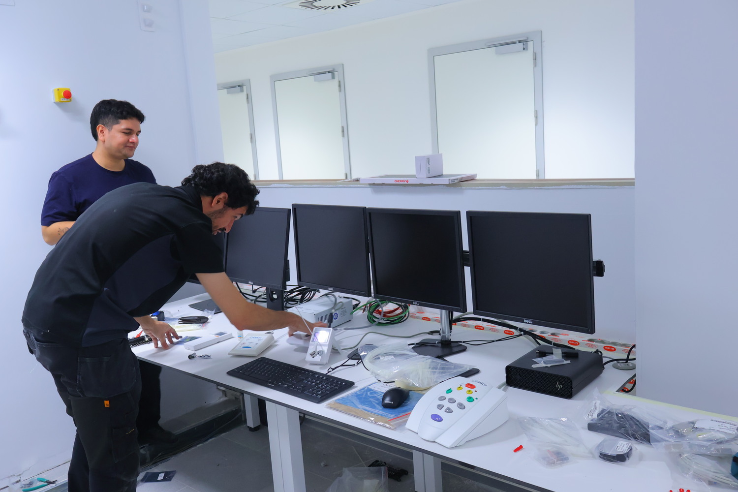 Los técnicos de la empresa Elekta que ha fabricado el Acelerador Lineal se han desplazado a Cuenca para comenzar con la instalación de todos los equipos de la Sala de Control y, posteriormente, iniciar los trabajos de calibración del aparato que se calcula que se prolongarán por espacio de dos semanas aproximadamente.