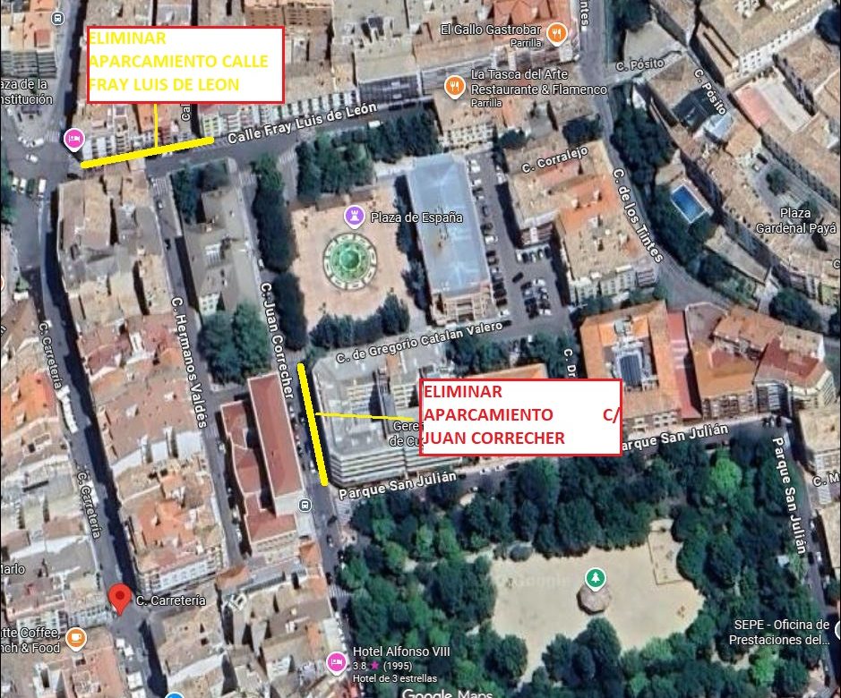 Esta intervención, dentro de las actuaciones de mantenimiento de estas infraestructuras que lleva a cabo el Consistorio conquense, implica la prohibición de aparcamiento en el tramo de Juan Correcher entre el Parque de San Julián y calle Gregorio Catalán Valero, así como en el tramo de Fray Luis de León entre Carretería y calle Doctor Galíndez.