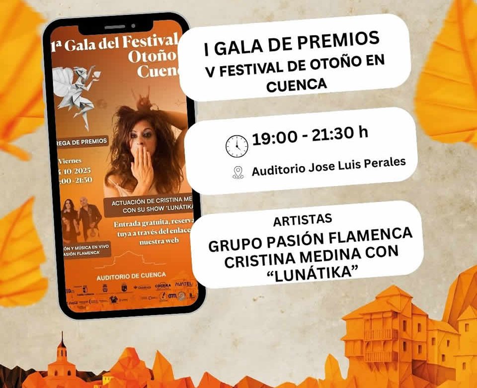 La jornada culminó en el Auditorio de Cuenca con la celebración de la I Gala del Festival de Otoño, conducida por la Decana de la facultad de Comunicación Audiovisual Belén Galletero Campos. El acto contó con un espectáculo musical de Pasión Flamenca, la entrega de premios del certamen y la actuación teatral “Lunátika”, protagonizada por la actriz Cristina Medina.
