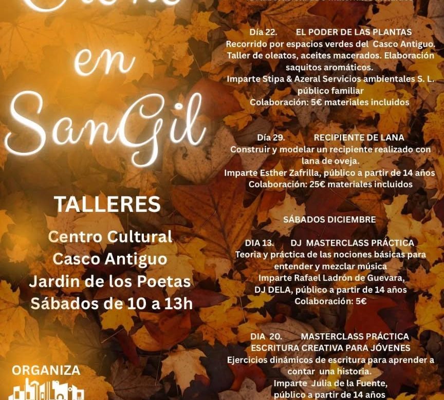 La Asociación de Vecinos del Casco Antiguo organiza la actividad Otoño en San Gil, una serie de talleres para dinamizar durante los meses de noviembre y diciembre el centro cultural del Jardín de los Poetas y otros espacios del barrio.