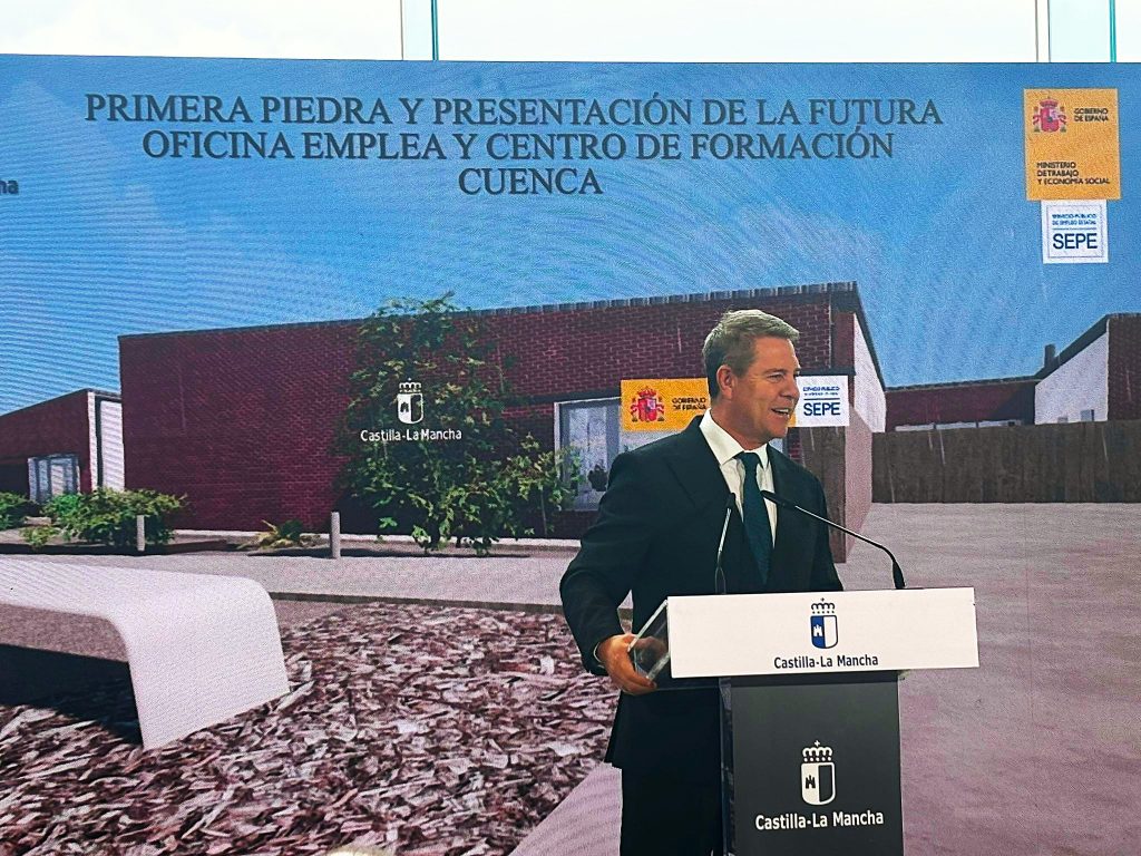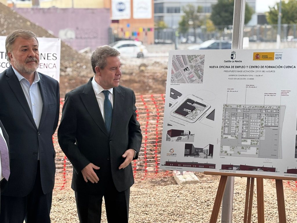 Este viernes se ha puesto la primera piedra de la nueva Oficina de Empleo de Cuenca, que se va a construir en el entorno de la calle Río Víllora de la capital conquense, con un presupuesto de más de 2,7 millones de euros y que incluye también un espacio para formación.