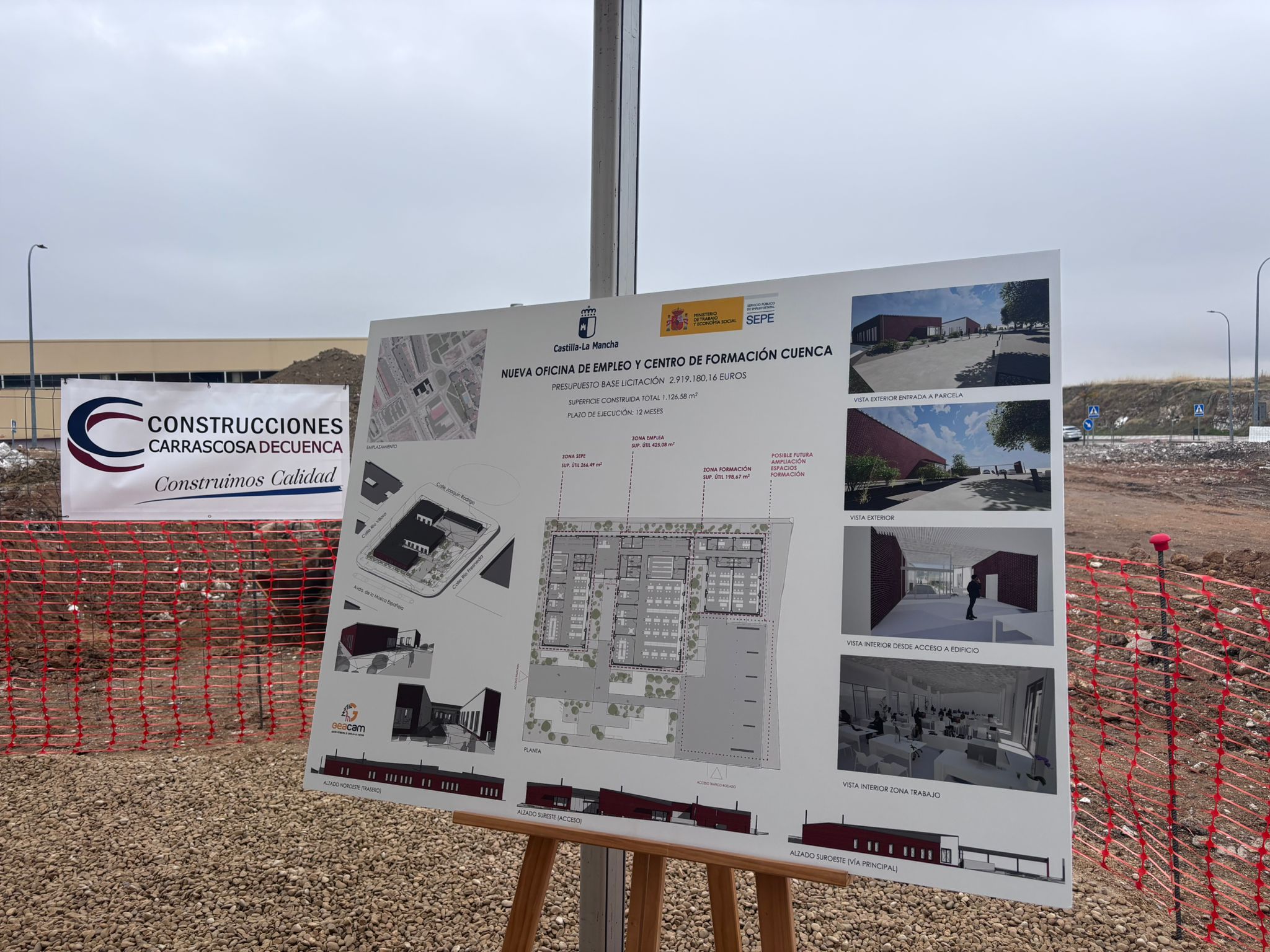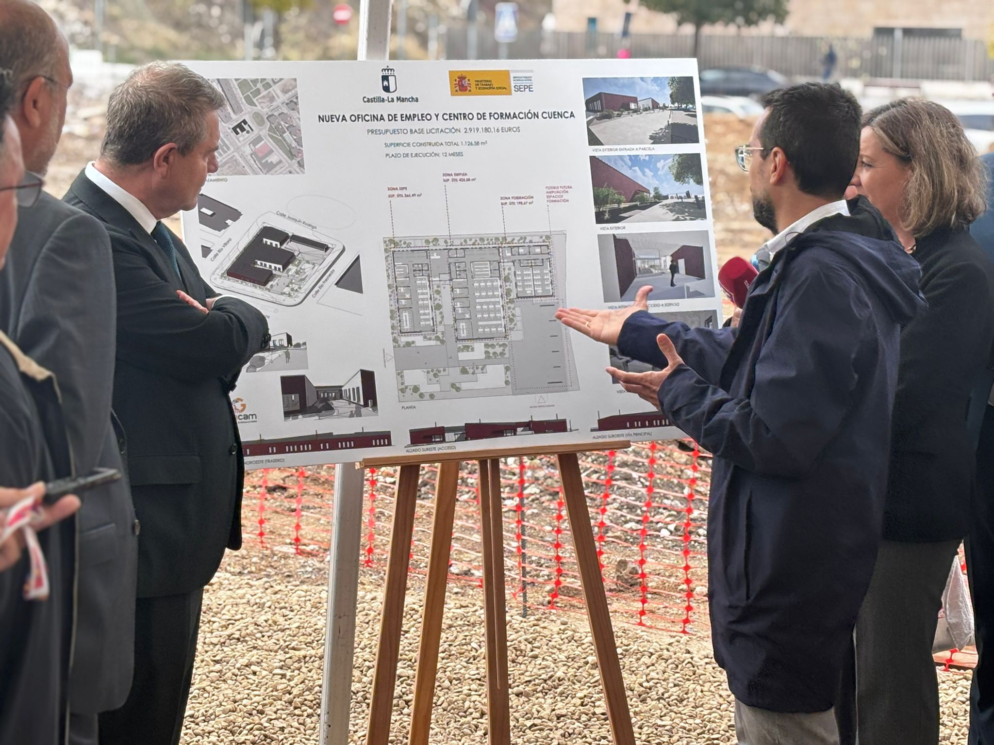 Este viernes se ha puesto la primera piedra de la nueva Oficina de Empleo de Cuenca, que se va a construir en el entorno de la calle Río Víllora de la capital conquense, con un presupuesto de más de 2,7 millones de euros y que incluye también un espacio para formación.