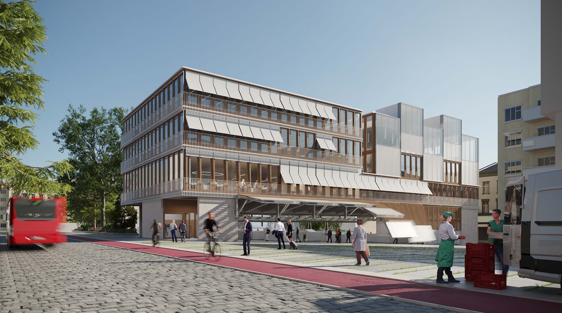 Además, se proyecta ampliar la actividad comercial hacia el este con puestos del mercadillo de productos locales y flores, desmontables y adaptados a las necesidades diarias y estacionales.