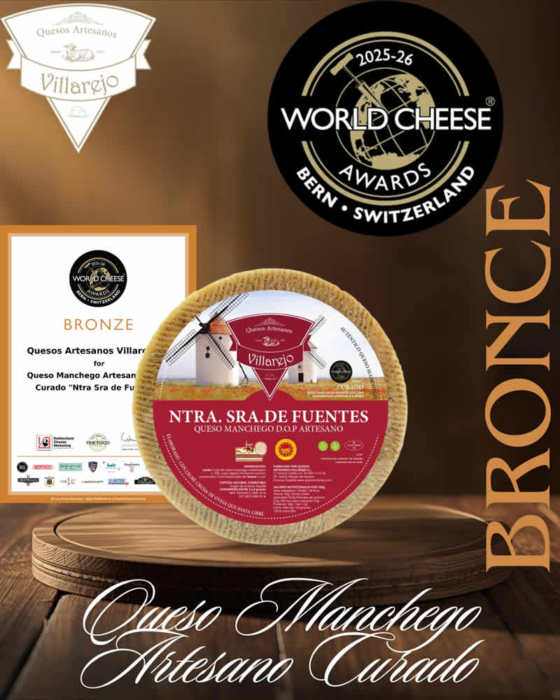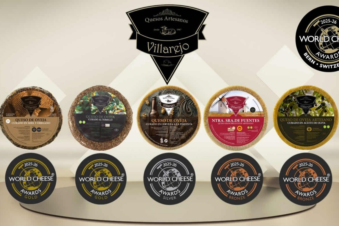 La quesería conquense Quesos Artesanos Villarejo ha obtenido cinco nuevas medallas en los World Cheese Awards 2025-26, celebrados este año en Berna (Suiza), uno de los certámenes más prestigiosos del panorama quesero internacional.