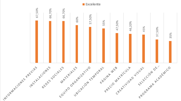 Los datos sitúan esta edición entre las mejor valoradas de toda su trayectoria. Así y con una catalogación de sobresaliente para el 52,5% de los evaluadores, las valoraciones alcanzaron la máxima calificación (excelente) de forma mayoritaria en cuanto a información enviada por correo electrónico (67,5%), instalaciones de la Facultad de Educación de Cuenca (UCLM) (66,7%), trabajo en redes sociales (66,7%), materiales entregados (60%), equipo organizativo (57,5%), ubicación en el calendario (55%), página web (47,5%), precio de una matrícula que se situaba en 25 euros y era gratuita para PDI y estudiantes de la UCLM (46,2%) creatividad visual (45%), selección de comunicaciones (37,5%) y programa académico (35%).