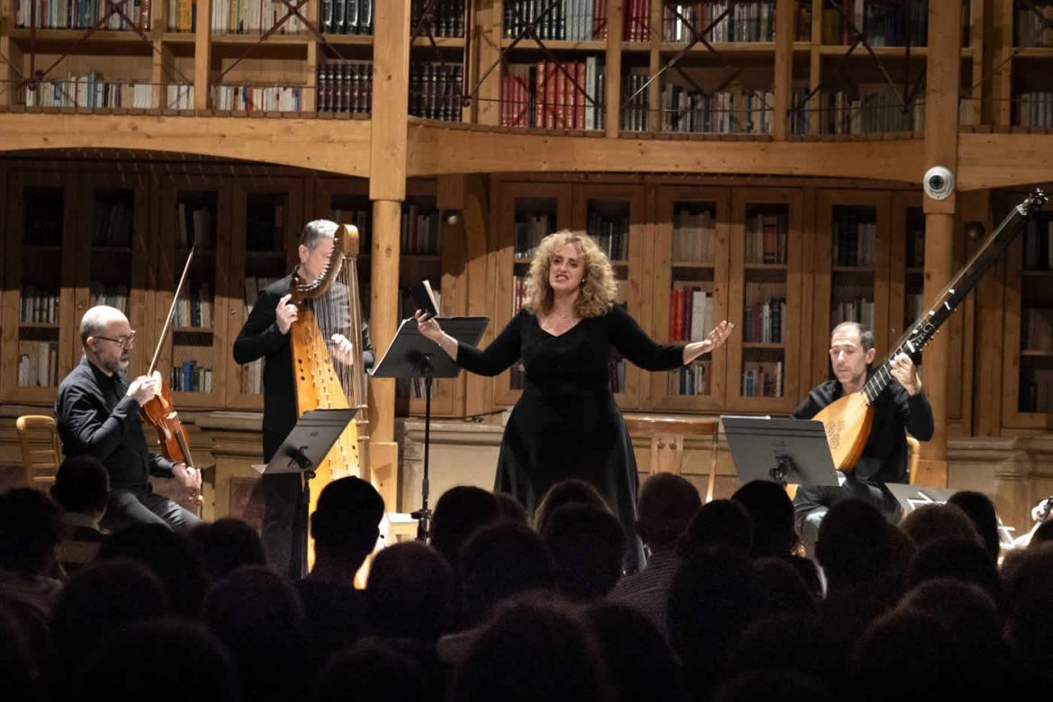 El recorrido por las nanas italianas, como “Ninna Nanna” al “Bambin Giesù” o “Dormi, deh, dormi”, pudieron escucharse en la siempre silenciosa y respetuosa audiencia de la Biblioteca de La Merced. Las páginas dedicadas al repertorio español aportaron contraste y cercanía. Villancicos como “A la aurora más bella” o “Morenas, gitanas” mostraron cómo lo popular y lo sacro convivían con naturalidad en el Barroco hispano. El recuerdo de compositores como Carlos Subias o Sebastián Durón ayudó a situar históricamente el repertorio, mientras que las piezas instrumentales, folía, chacona, pasacalles y el célebre “Ballo del Gran Duca”, añadieron variedad y ritmo a la velada.