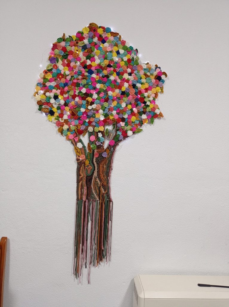 Estas artesanas, que han tomado como modelos para su obra a dos vecinos de la localidad, han confeccionado además varias coronas de Navidad y un árbol con más florecillas que decoran durante estos días navideños las puertas de los hogares del pueblo.