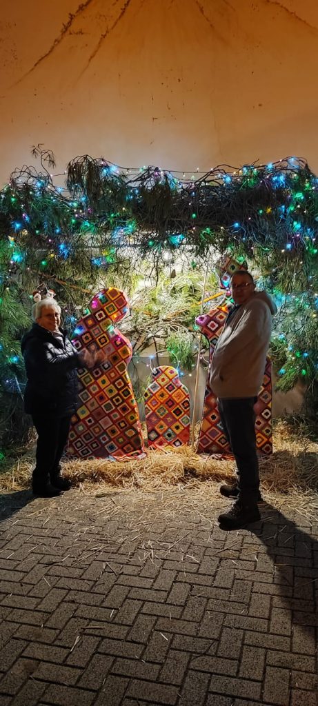 Unas quince vecinas han participado en estos trabajos, que comenzaron el año pasado, y el pasado sábado se inauguraba e iluminaba este original portal de Belén que decora ya las calles de San Pedro Palmiches-