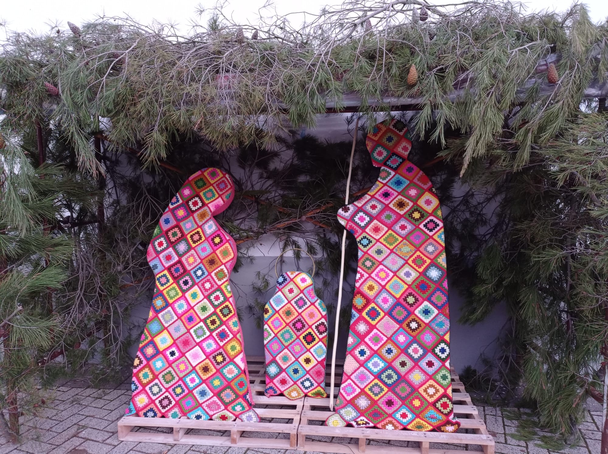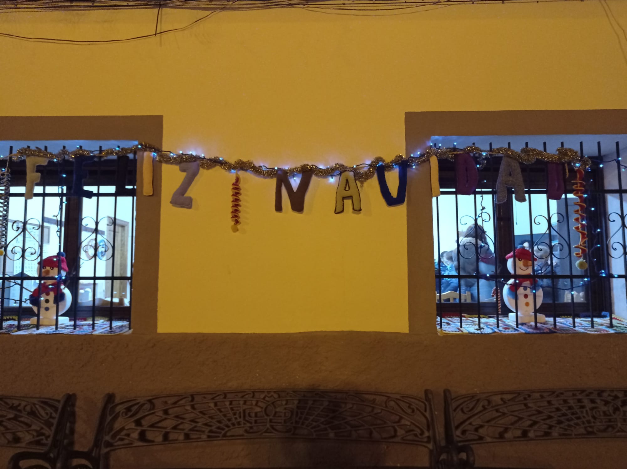Estas artesanas, que han tomado como modelos para su obra a dos vecinos de la localidad, han confeccionado además varias coronas de Navidad y un árbol con más florecillas que decoran durante estos días navideños las puertas de los hogares del pueblo.