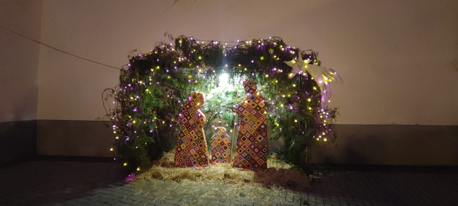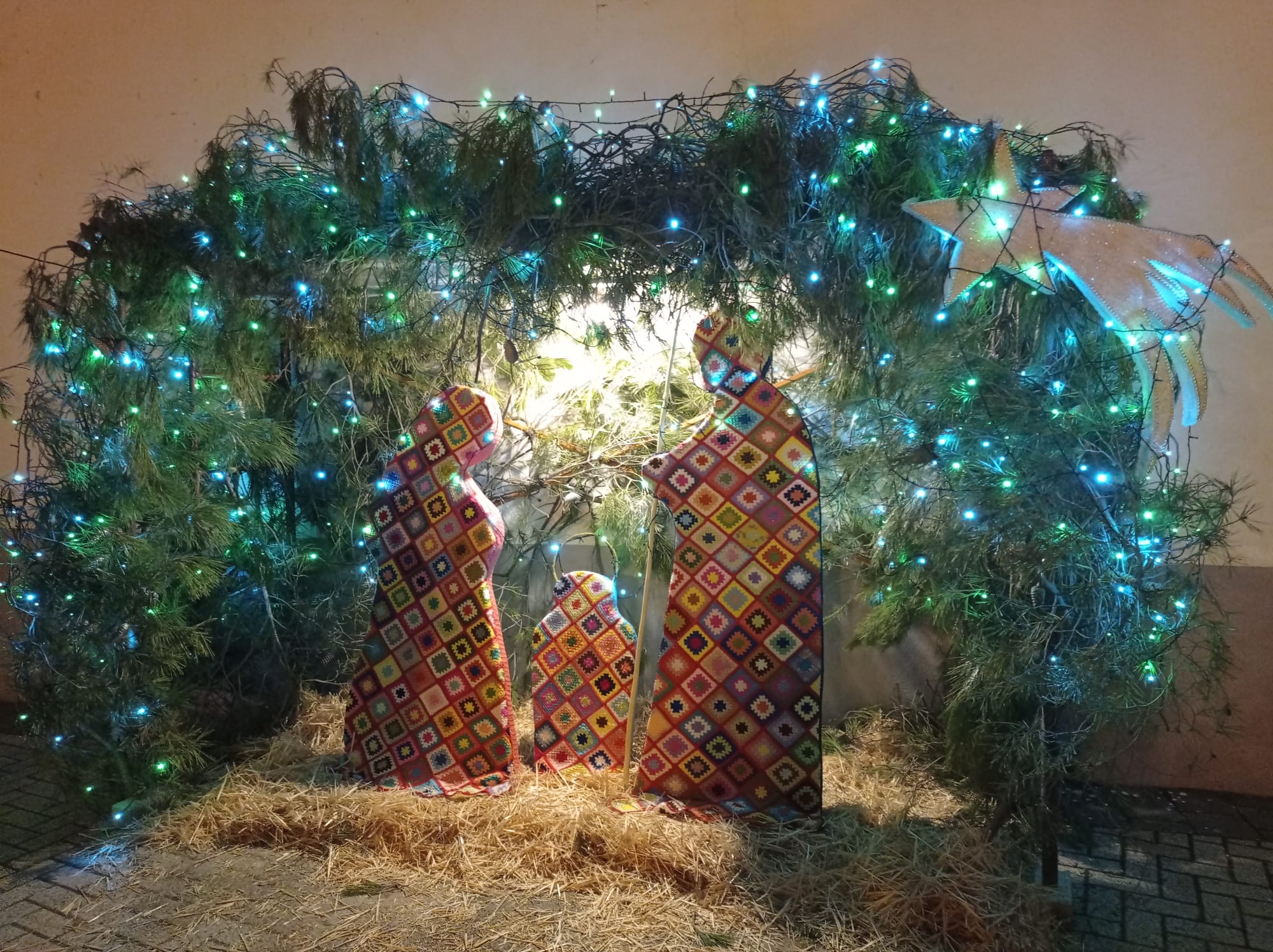Unas quince vecinas han participado en estos trabajos, que comenzaron el año pasado, y el pasado sábado se inauguraba e iluminaba este original portal de Belén que decora ya las calles de San Pedro Palmiches-