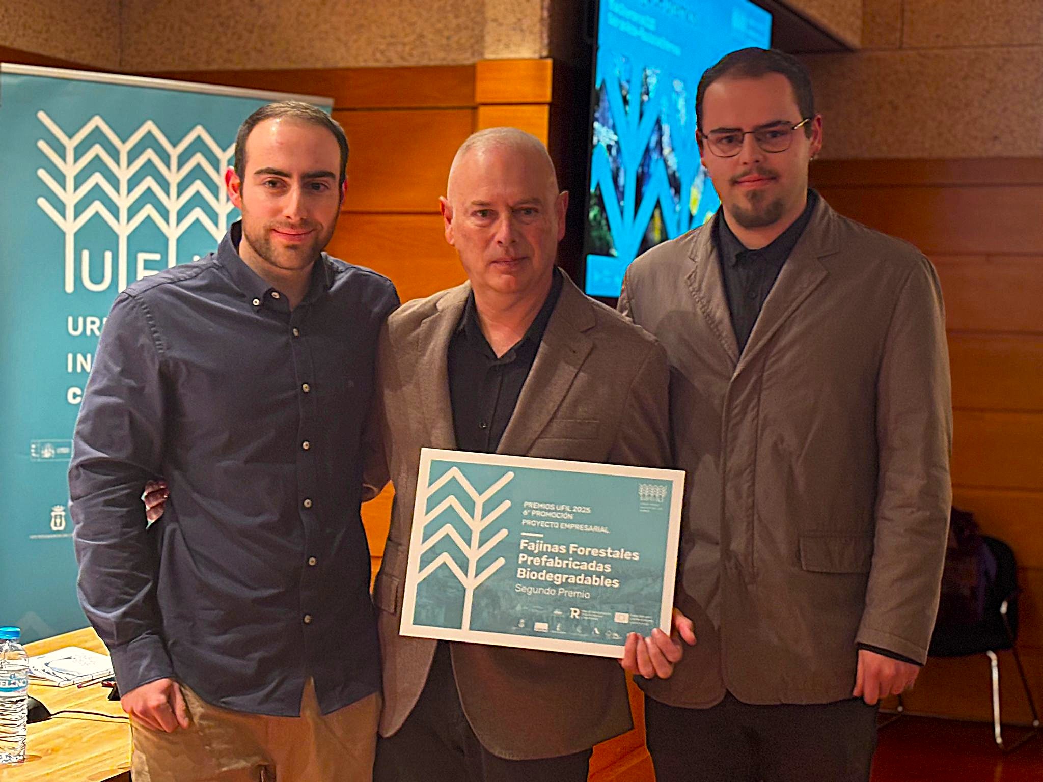 El segundo lugar ha sido para Fajinas Forestales Prefabricadas Biodegradables,un sistema para la actuación post-incendios forestales basado en elementos prefabricados que previenen la erosión, retienen el sustrato y la humedad, y favorecen la regeneración de la biodiversidad