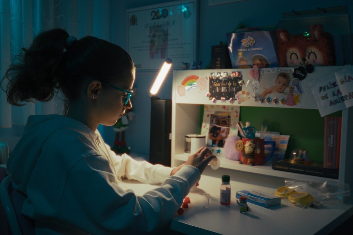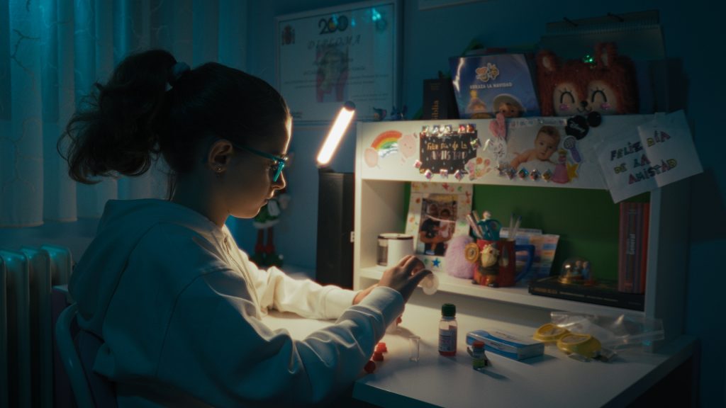 Aunando lo onírico y lo real, el villancico comienza en la habitación de una niña que, con un dibujo, nos traslada al campus de Cuenca, kilómetro cero del apagón. Este recurso conjuga pasado y presente para presentarnos a chicos y chicas de la región que, desde la intimidad de sus hogares, revelan cómo las profesiones soñadas en la niñez pueden materializarse en la universidad regional.
