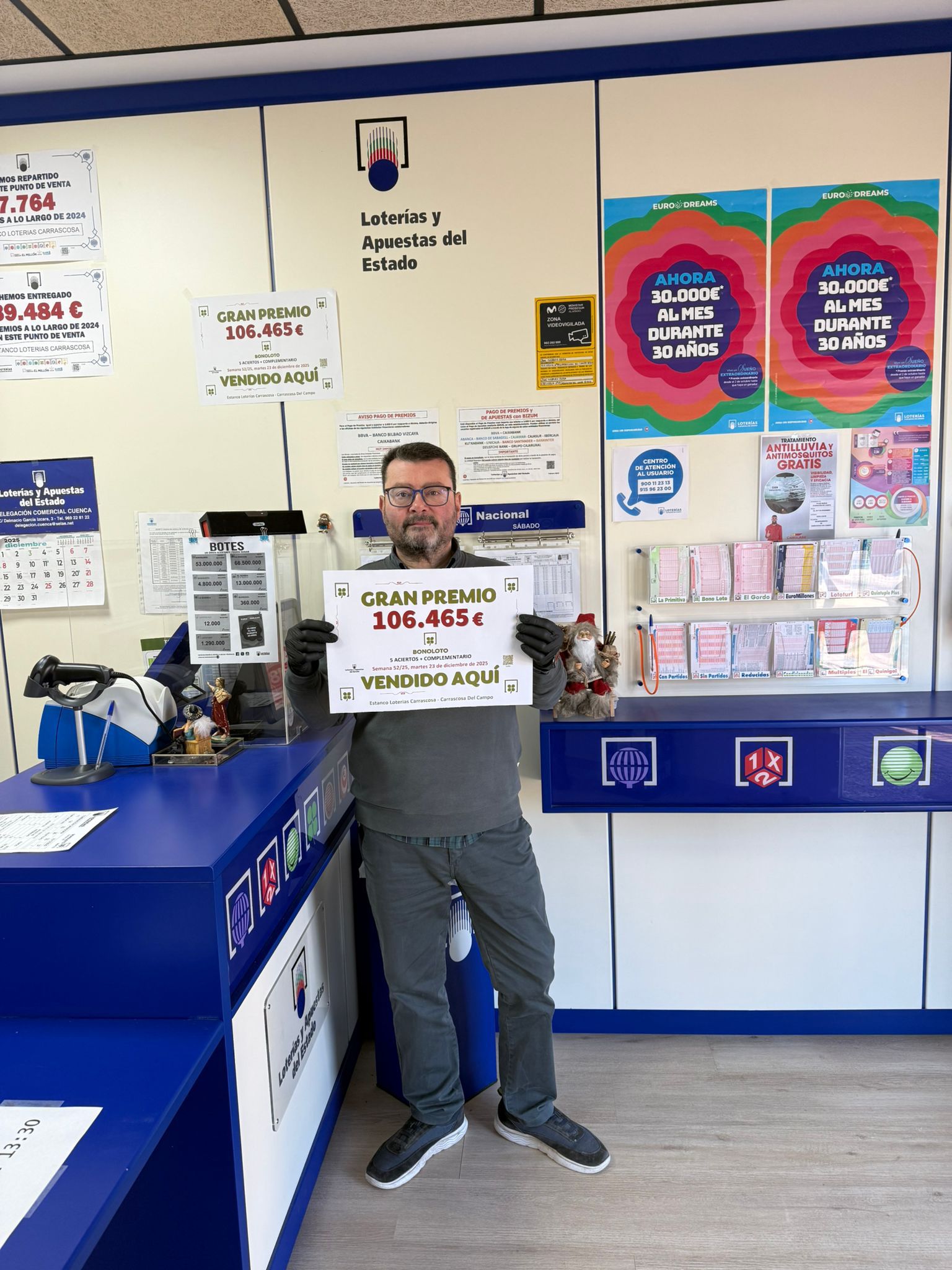 El estanco y loterías Carrascosa ha sido el establecimiento que ha traído la suerte al afortunado que se ha hecho con uno de los dos boletos de segunda categoría agraciados en el sorteo. El otro fue vendido en la localidad madrileña de Coslada.