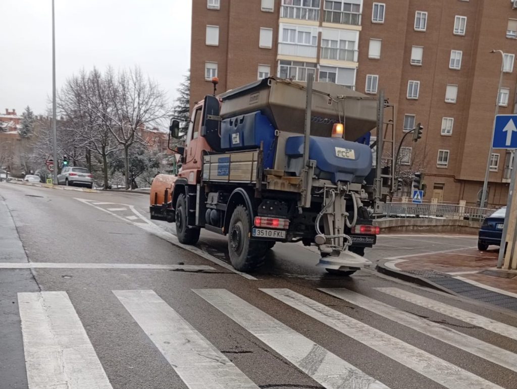 Ante la caída de las temperaturas y la presencia de agua y nieve se ha procedido a echar sal en el entorno de los centros de salud y del hospital, así como en distintos puntos del Casco Antiguo.