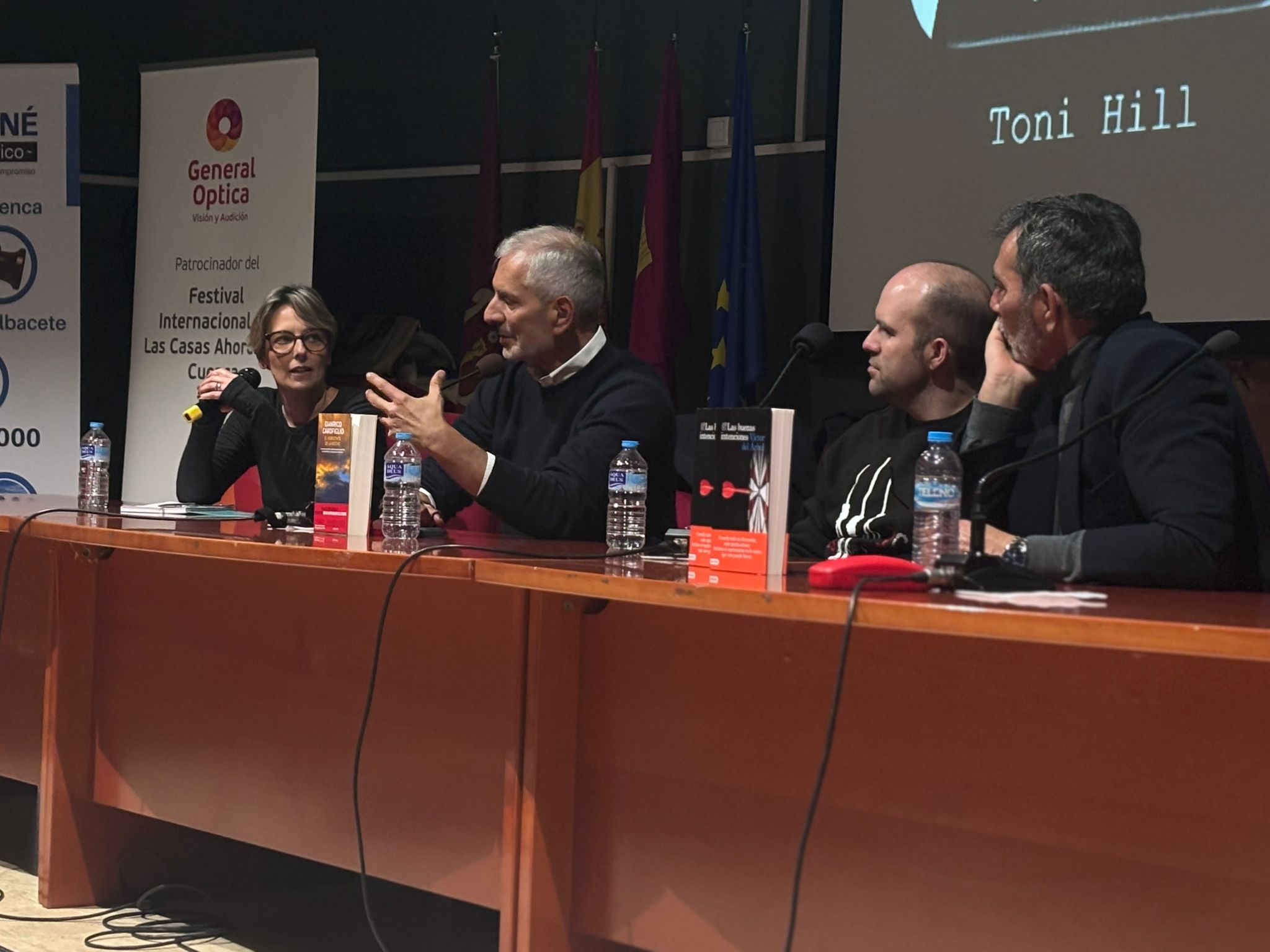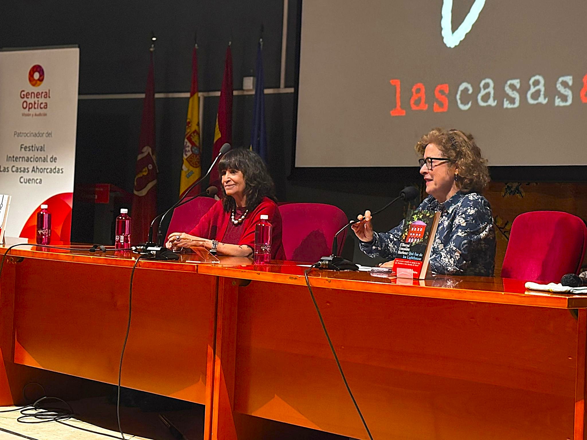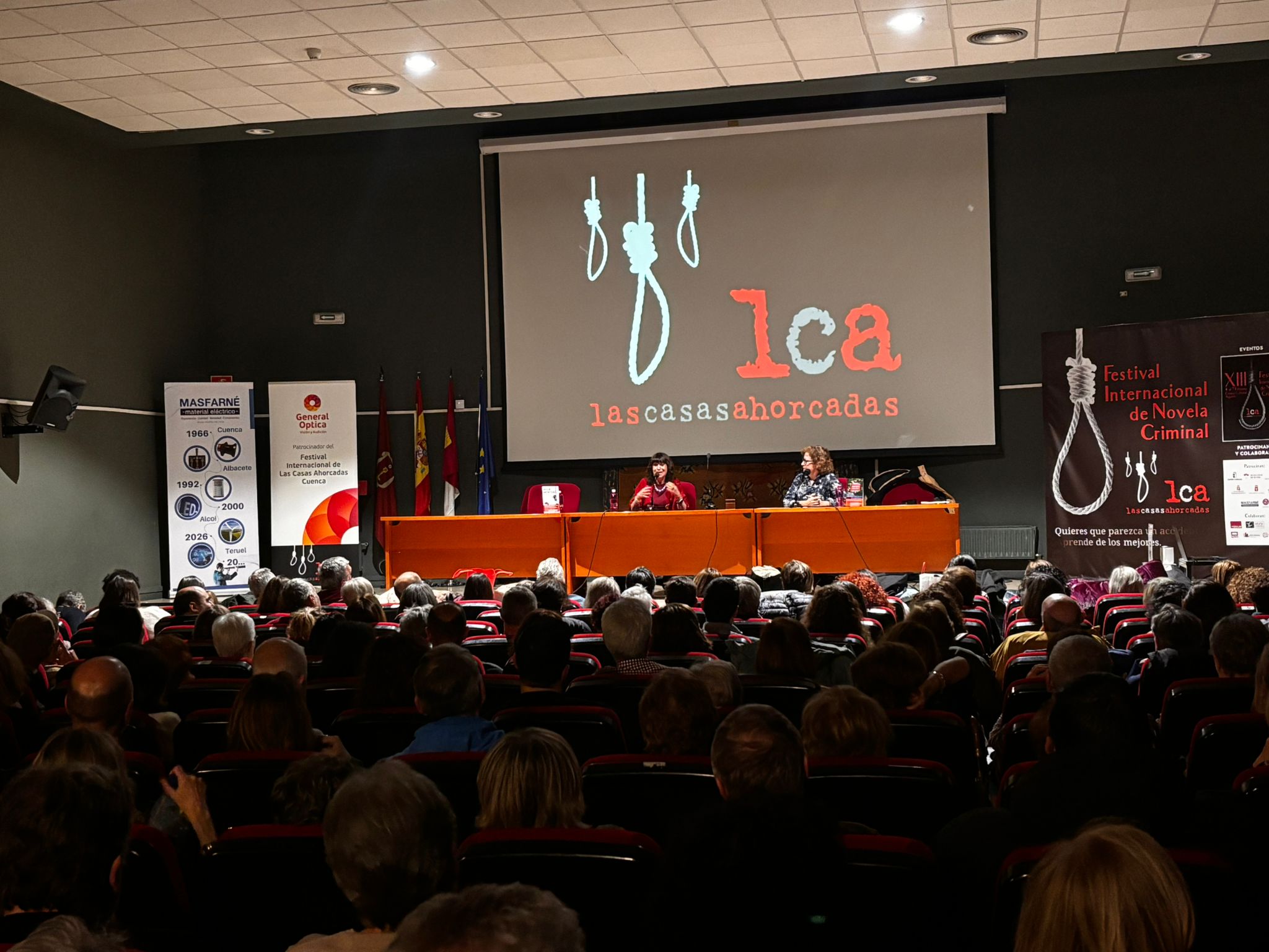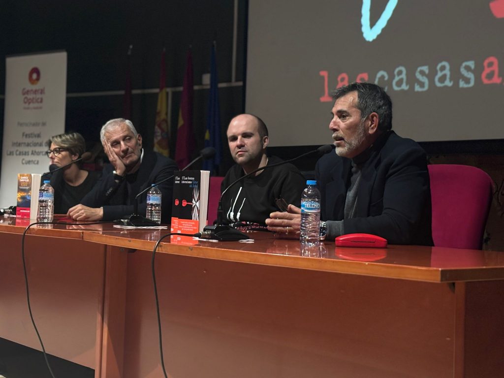 Lleno absoluto en el Centro Cultural Aguirre en la tercera de las sesiones del Festival Internacional de las Casas Ahorcadas, donde los aficionados conquenses a la lectura han correspondido con su presencia al elenco de máximo nivel que ha protagonizado las tres mesas redondas de este viernes