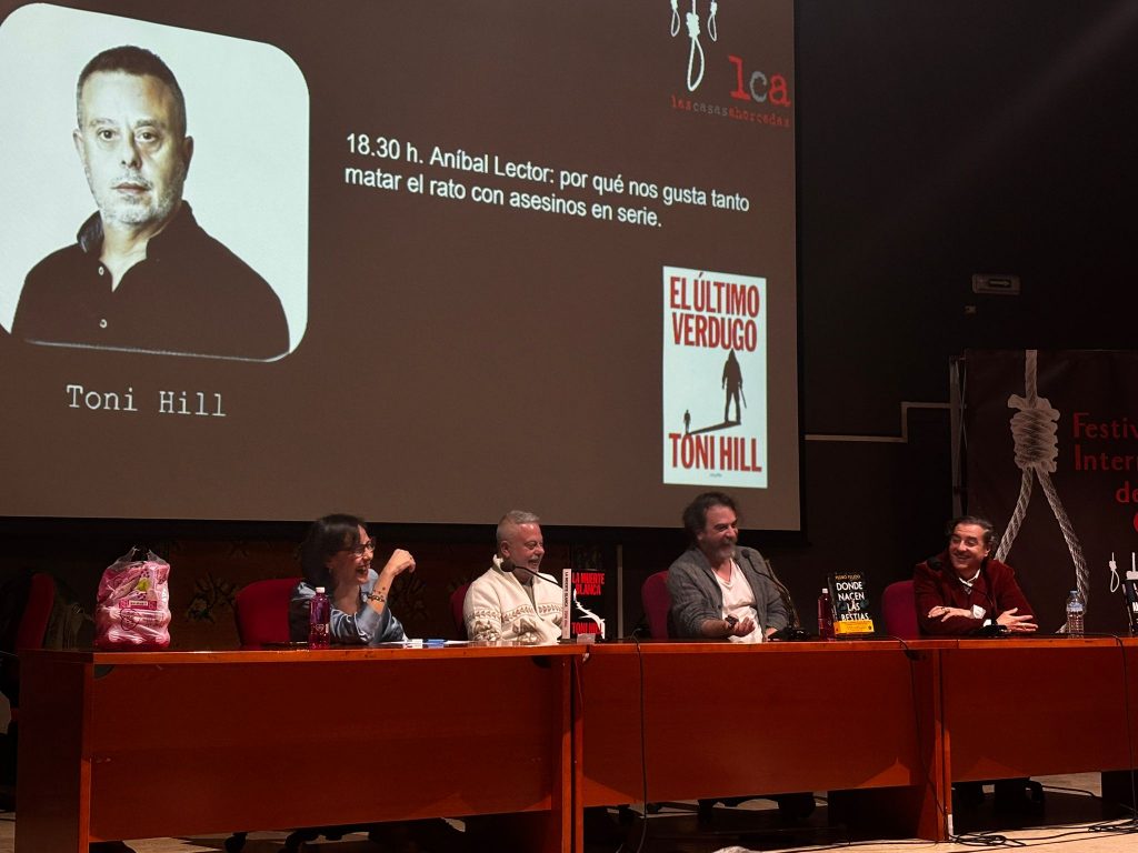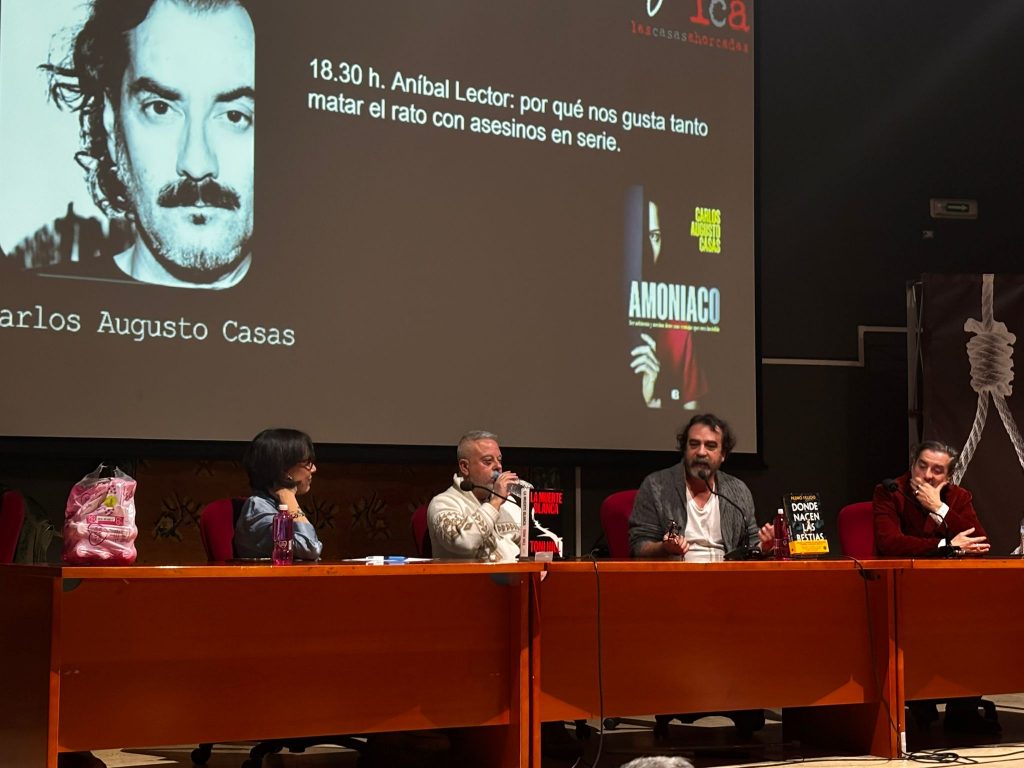La segunda mesa de la jornada, moderada por Marisa Mestre, ha contado con la participación de Pedro Feijoo, Carlos Augusto Casas y Toni Hill, que han departido, con muchas dosis de humor, del fenómeno de los serial killers y de cómo todos, en cualquier momento todos podríamos cruzar la línea y pasarnos a ese lado.