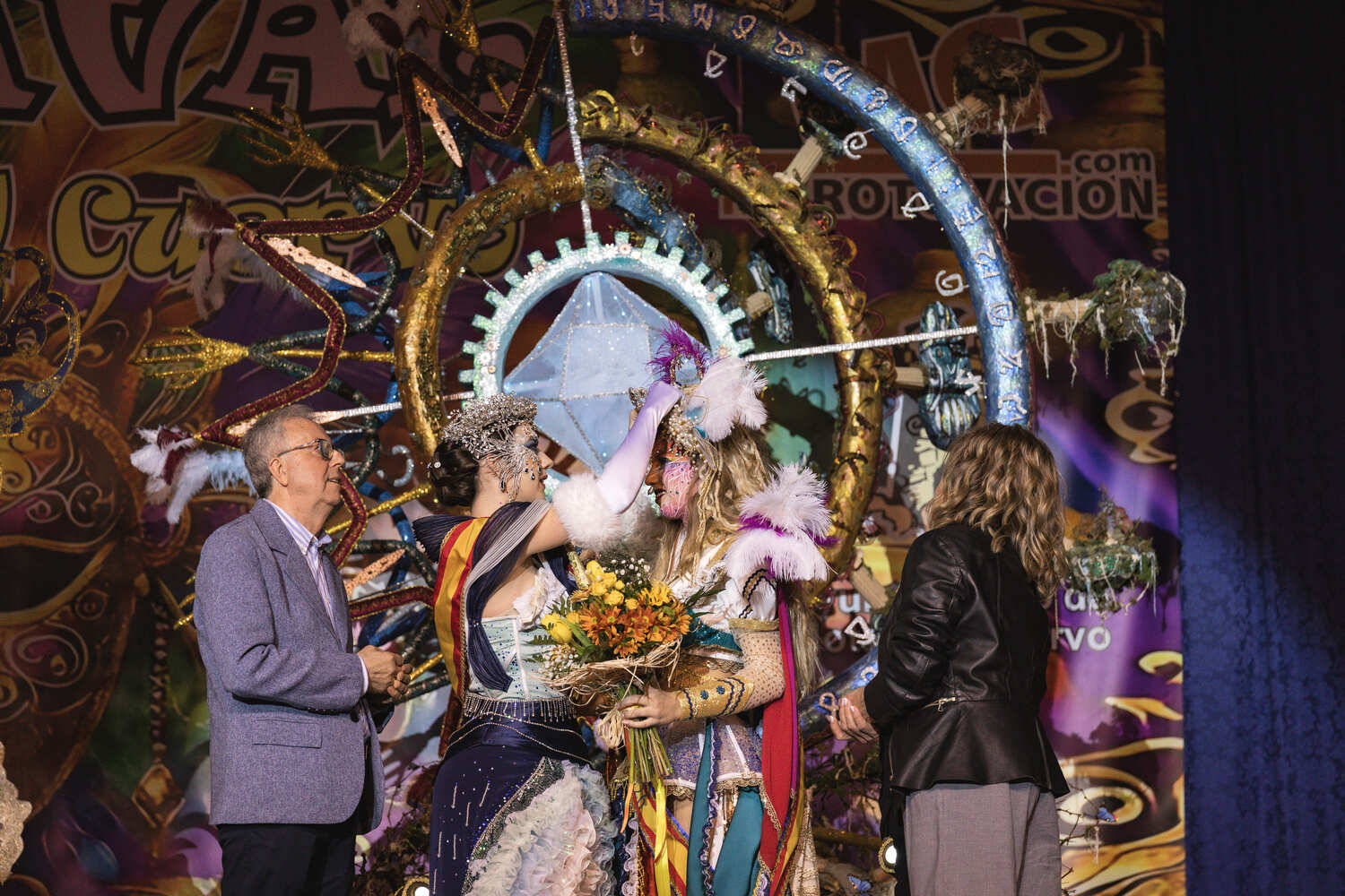 Con una intervención cercana, cargada de humor y guiños en jerga moteña, conquistó al público asistente, dejando claro el cariño que siente por Mota del Cuervo, sus molinos y, especialmente, por la fuerza y singularidad de su Carnaval.