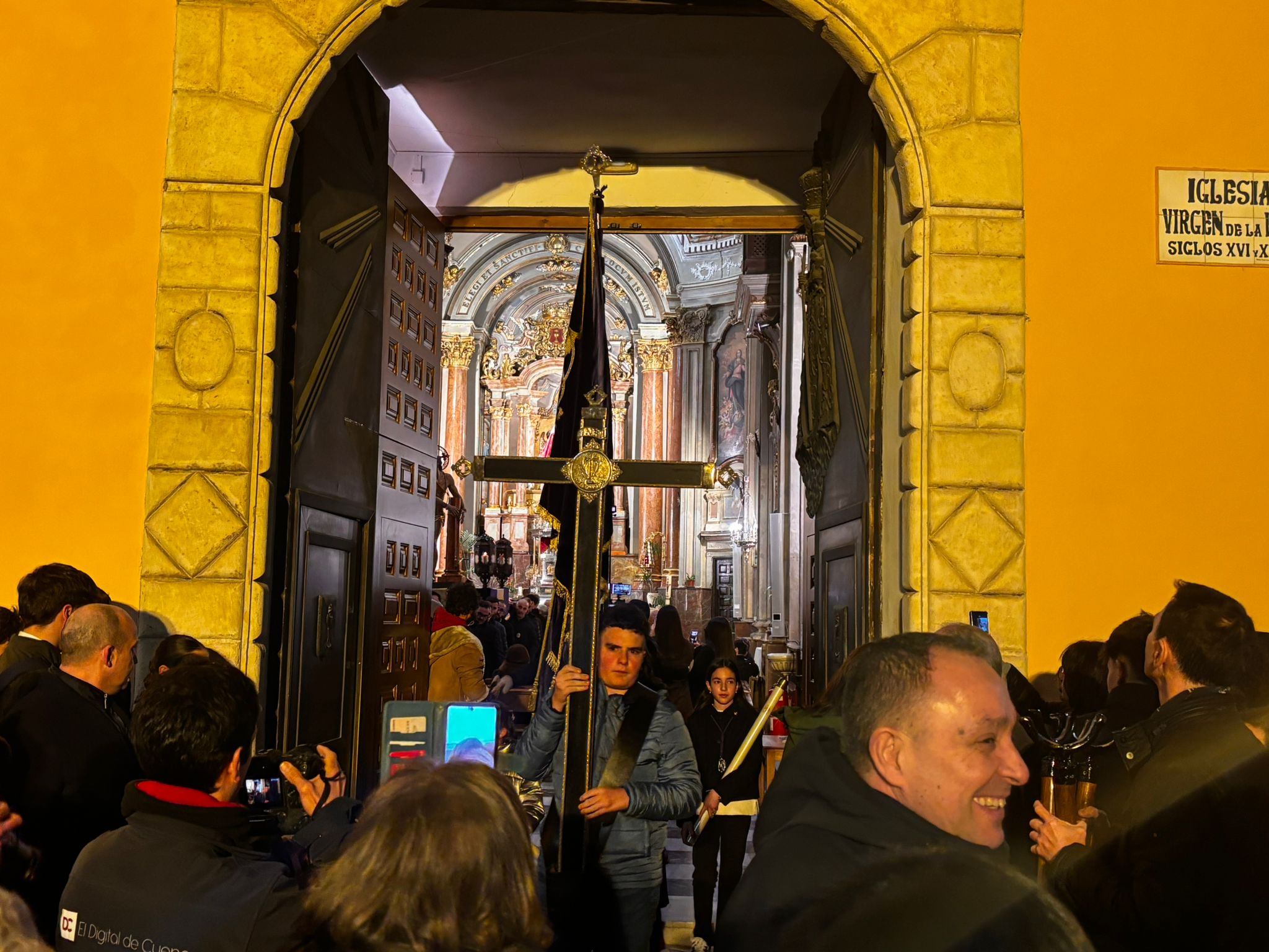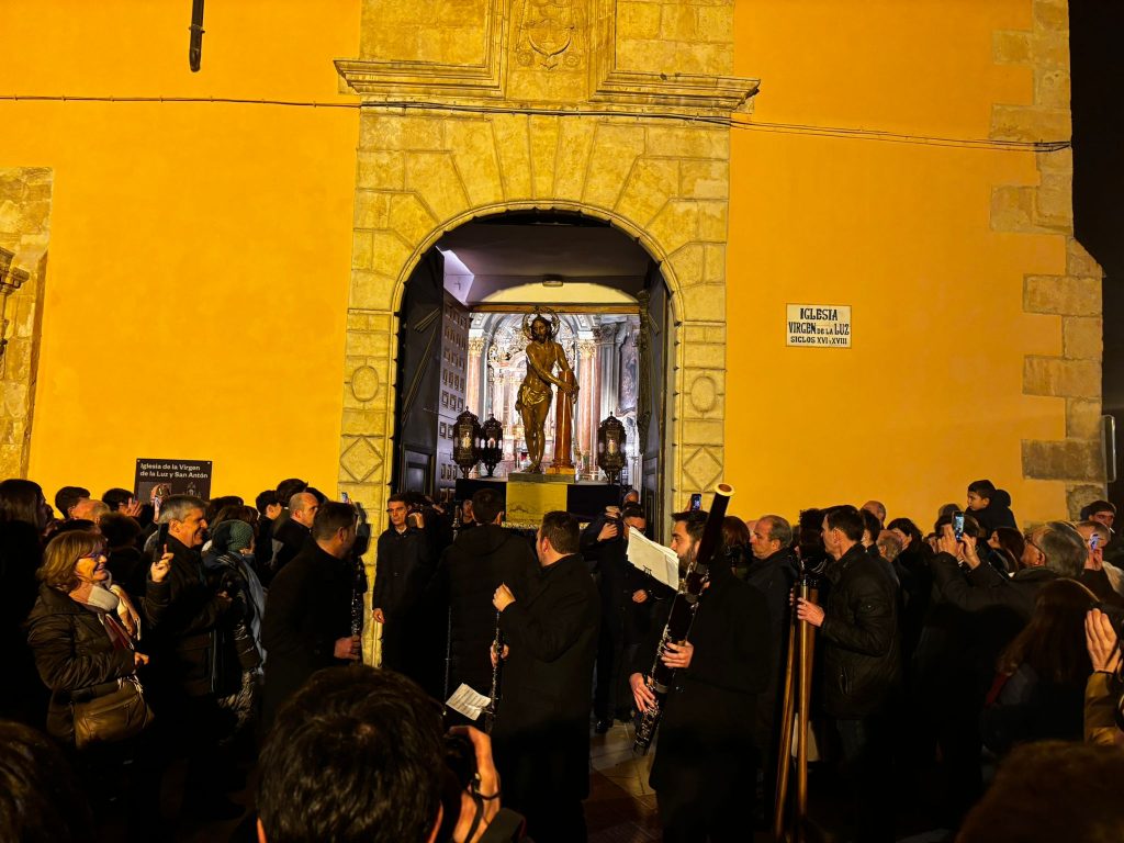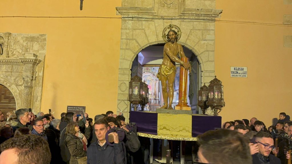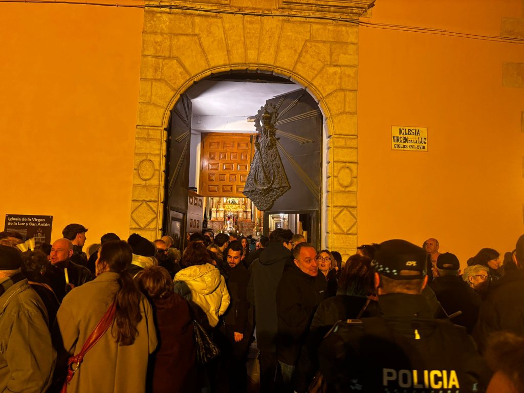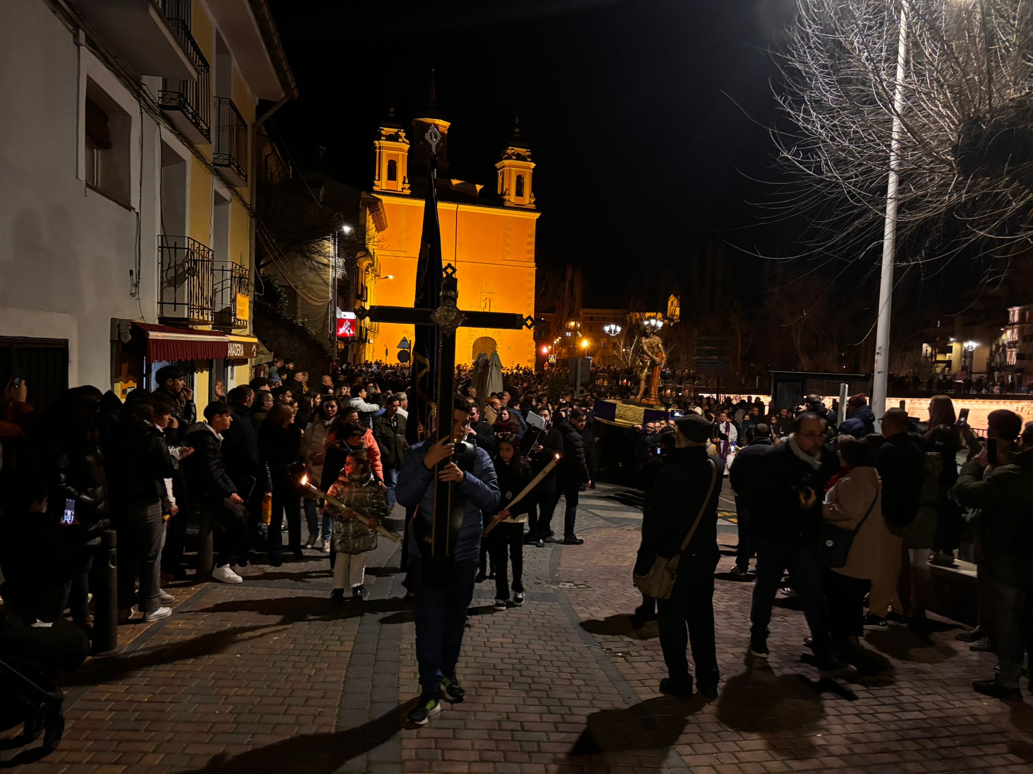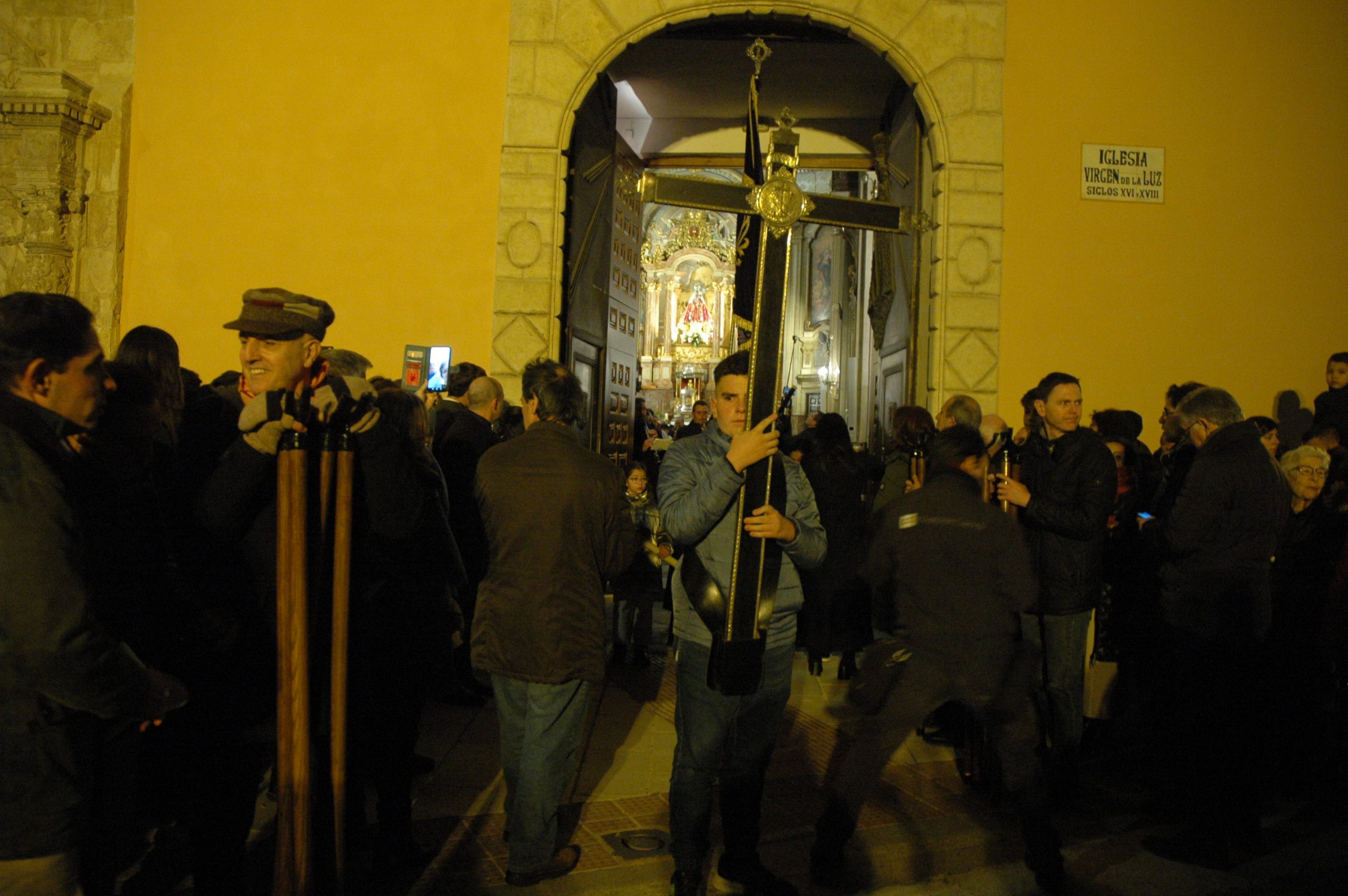A las ocho de la tarde, tras la misa, ha dado comienzo esta procesión en una iglesia de la recién restaurada Virgen de la Luz, donde le esperaba la comunidad nazarena conquense. Sus murmullos eran eclipsados por el clamor del río Júcar, que todavía ruge con fuerza tras las lluvias de las últimas semanas en la capital.
