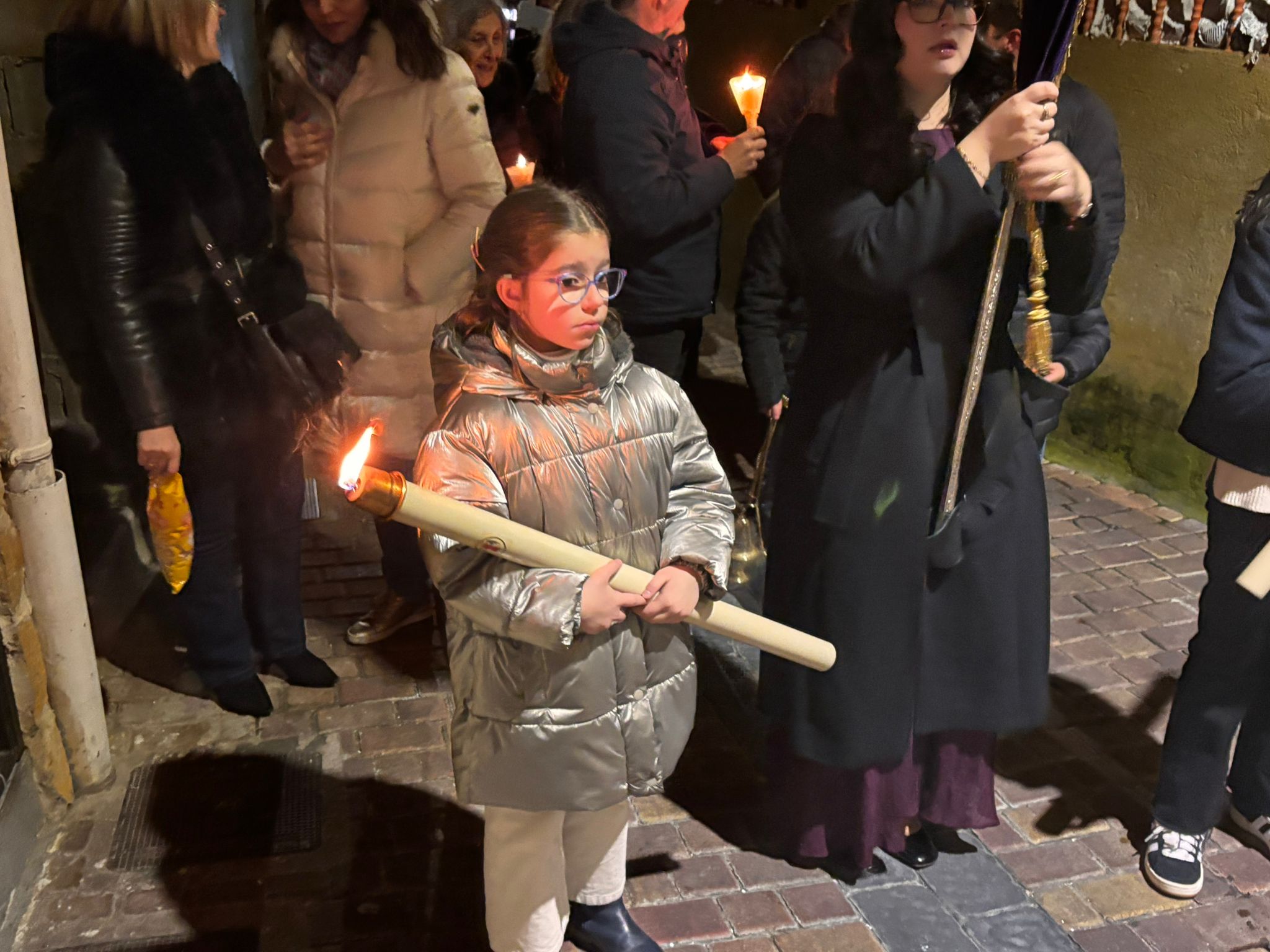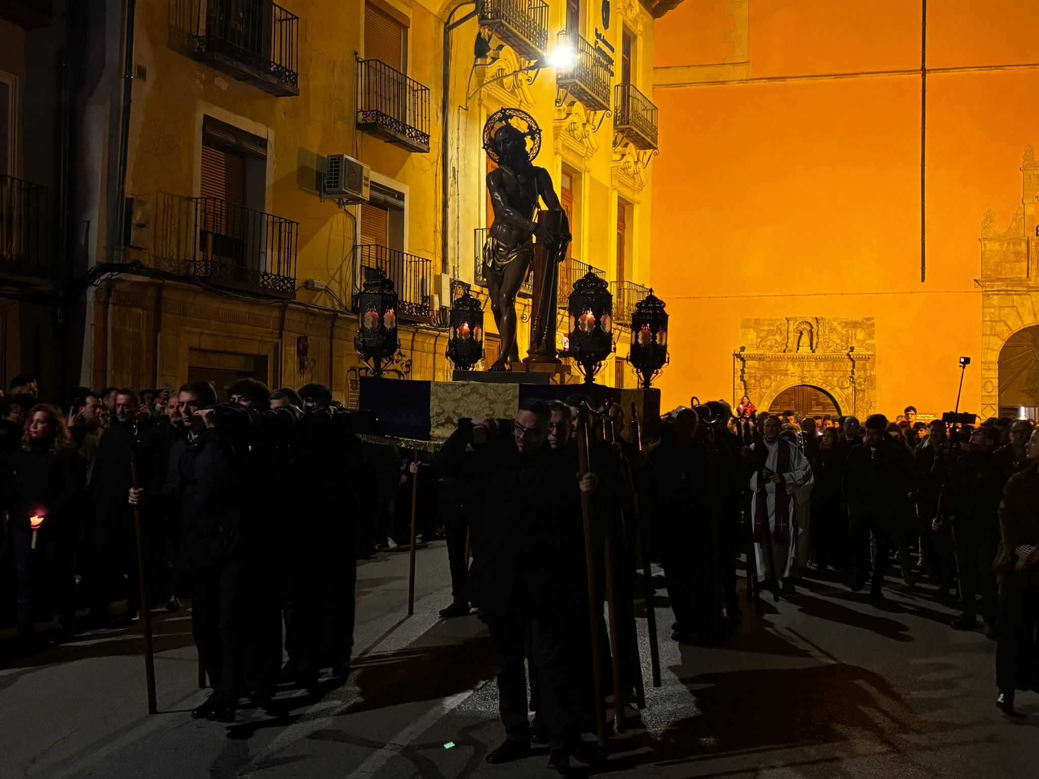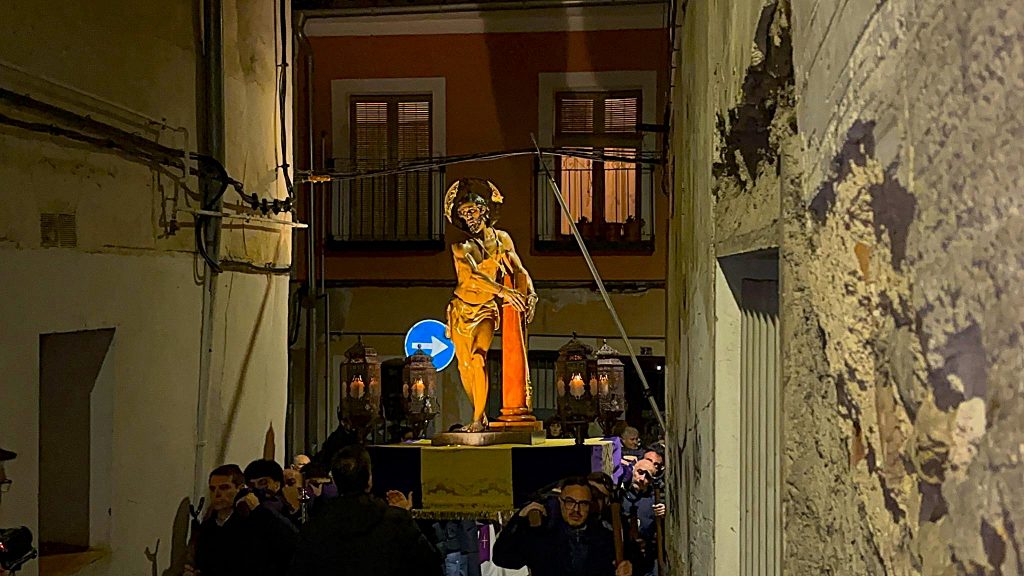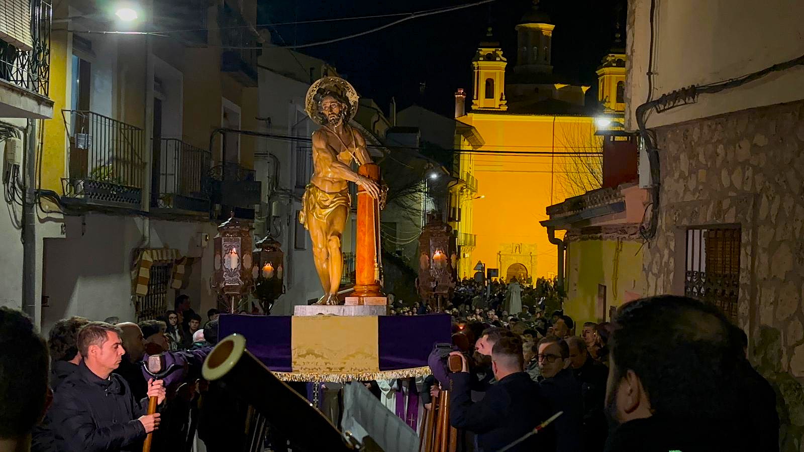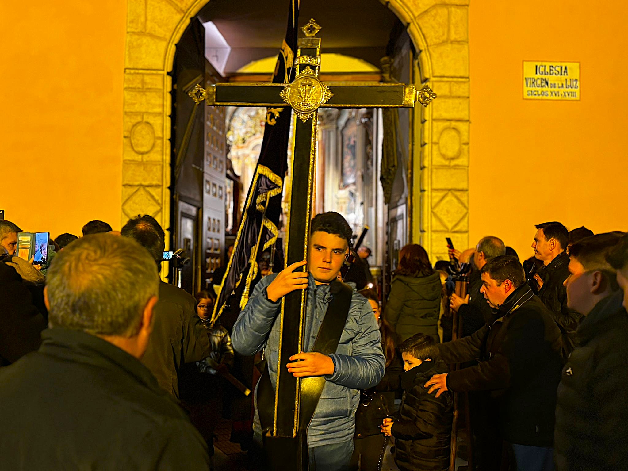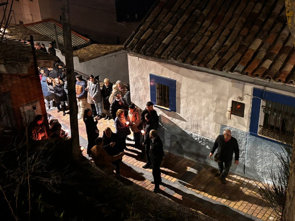 A las ocho de la tarde, tras la misa, ha dado comienzo esta procesión en una iglesia de la recién restaurada Virgen de la Luz, donde le esperaba la comunidad nazarena conquense. Sus murmullos eran eclipsados por el clamor del río Júcar, que todavía ruge con fuerza tras las lluvias de las últimas semanas en la capital.