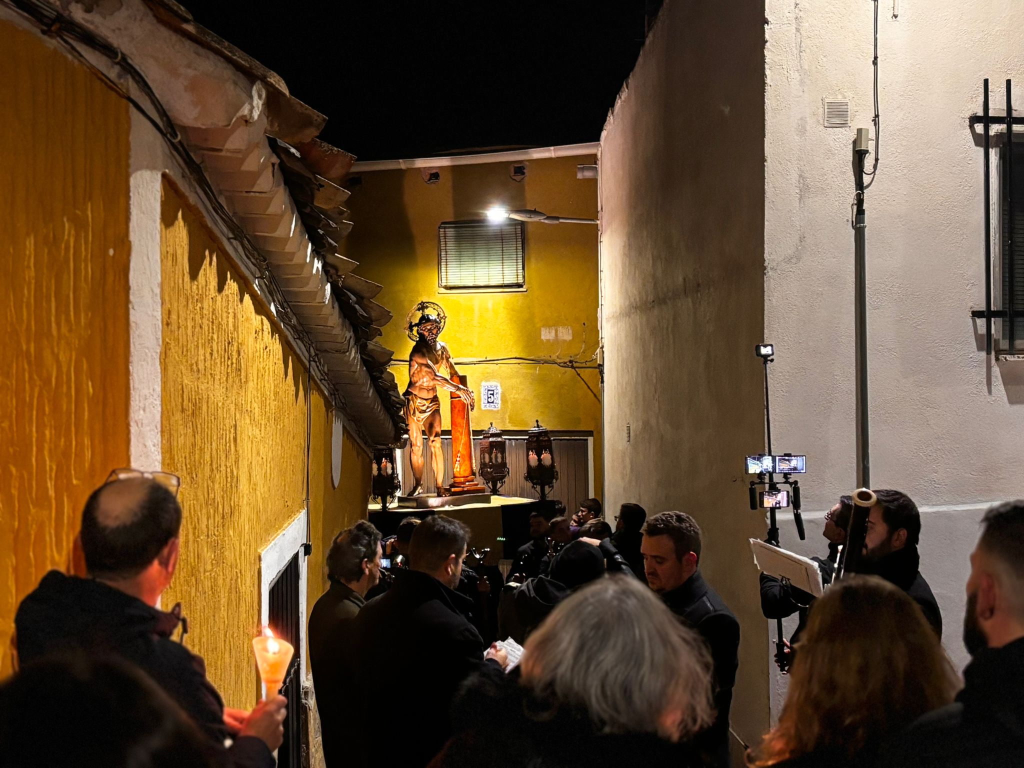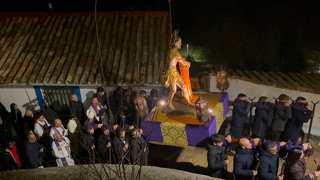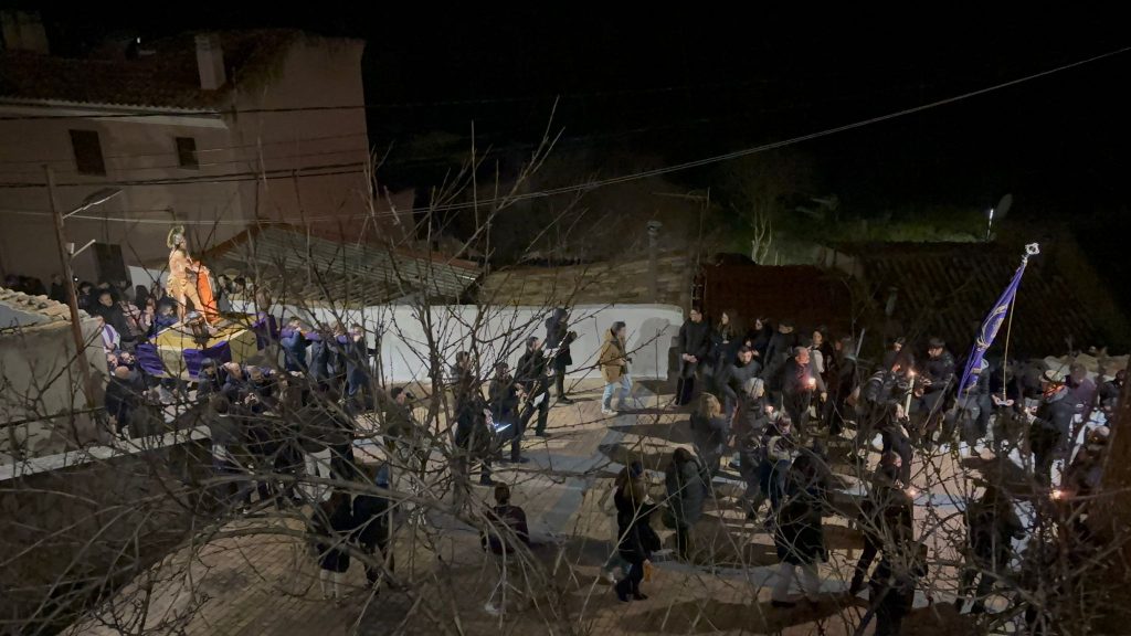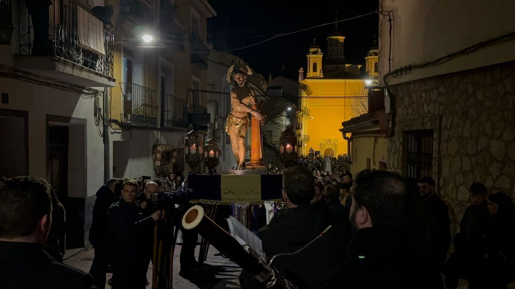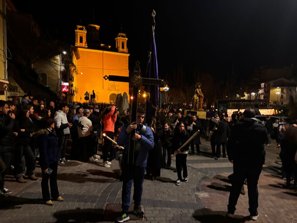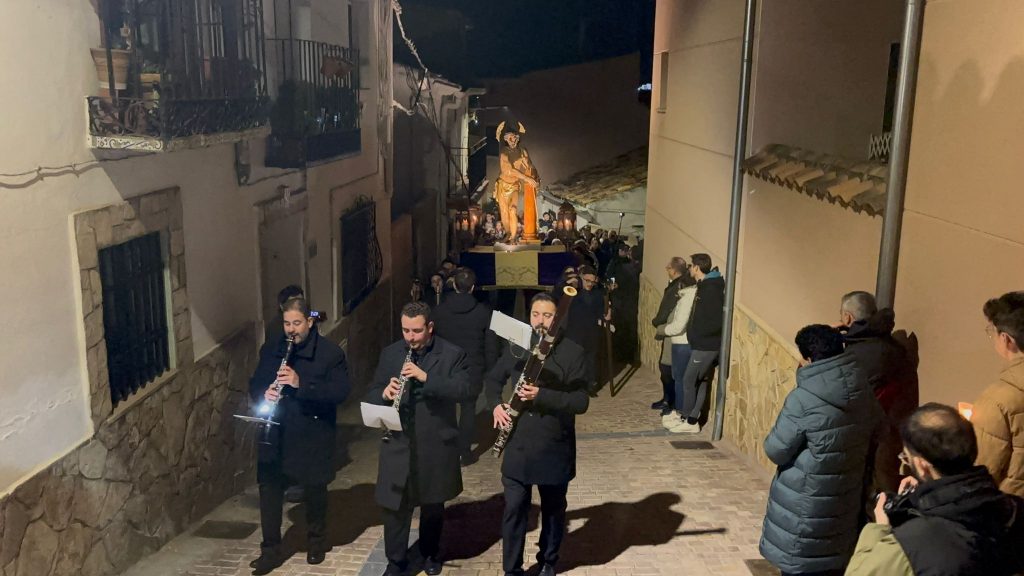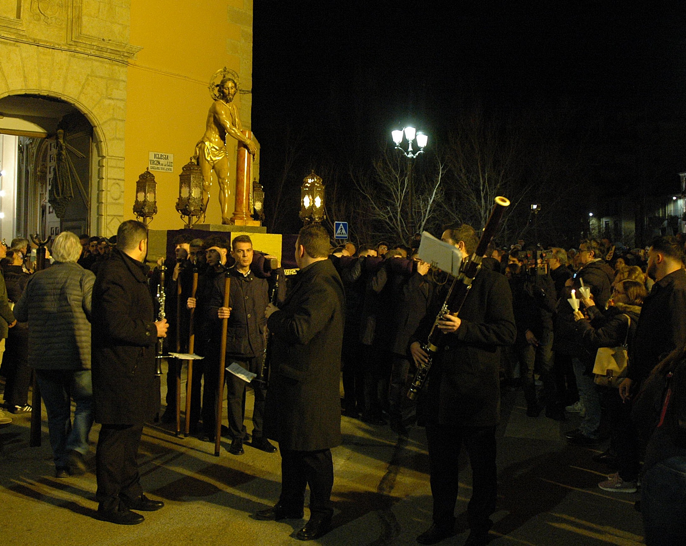 Un trío de la Capilla de Cuenca ha guiado a los banceros por las catorce estaciones de este Vía Crucis del ‘Amarrao’- En el cortejo han participado hermanos del Amarrado, representantes de la Archicofradía de Paz y Caridad y vecinos llegados de toda la ciudad, además de “amigos” de la Semana Santa conquense como Tomás Bux, autor del cartel anunciador del vía crucis de este año.