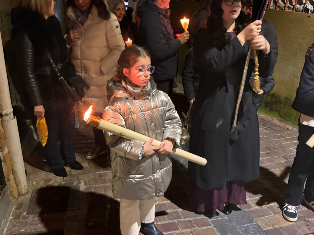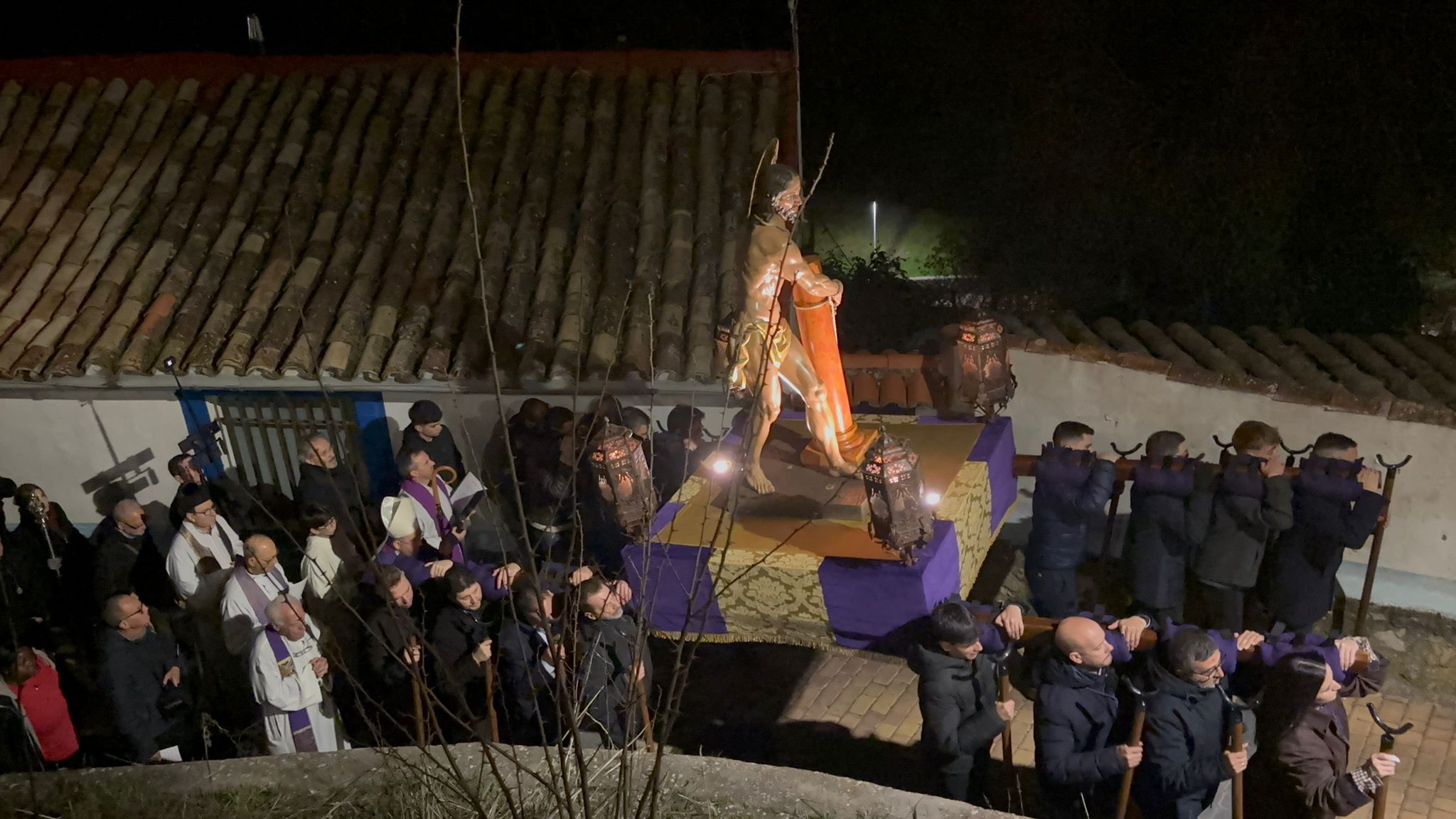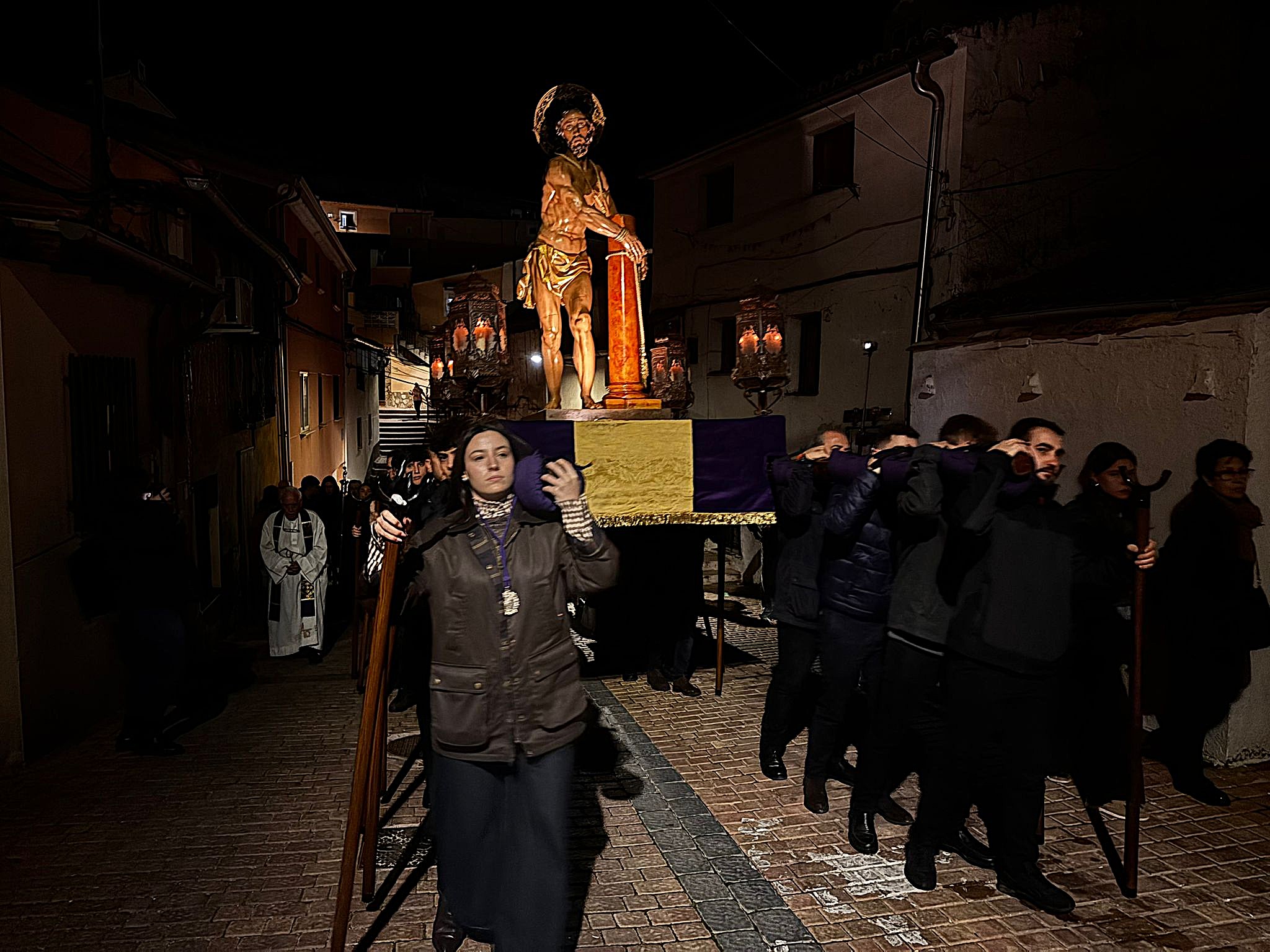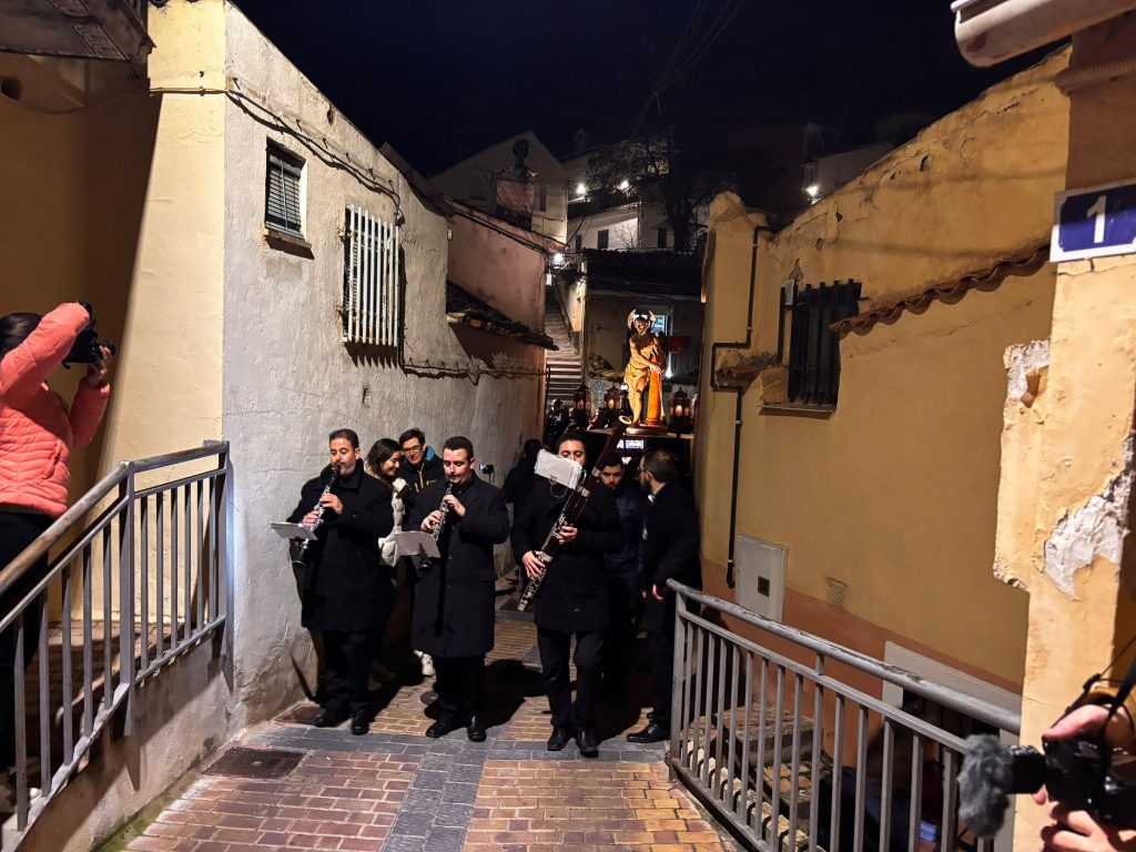 Esta procesión que se encarama por las cornisas y los cables de las pequeñas casas de San Antón. La devoción se abre paso por este empinado y tortuoso recorrido y este año han sido muy numerosos los fieles que han acompañado a la imagen, generalmente con cirios en las manos y una oración en los labios.