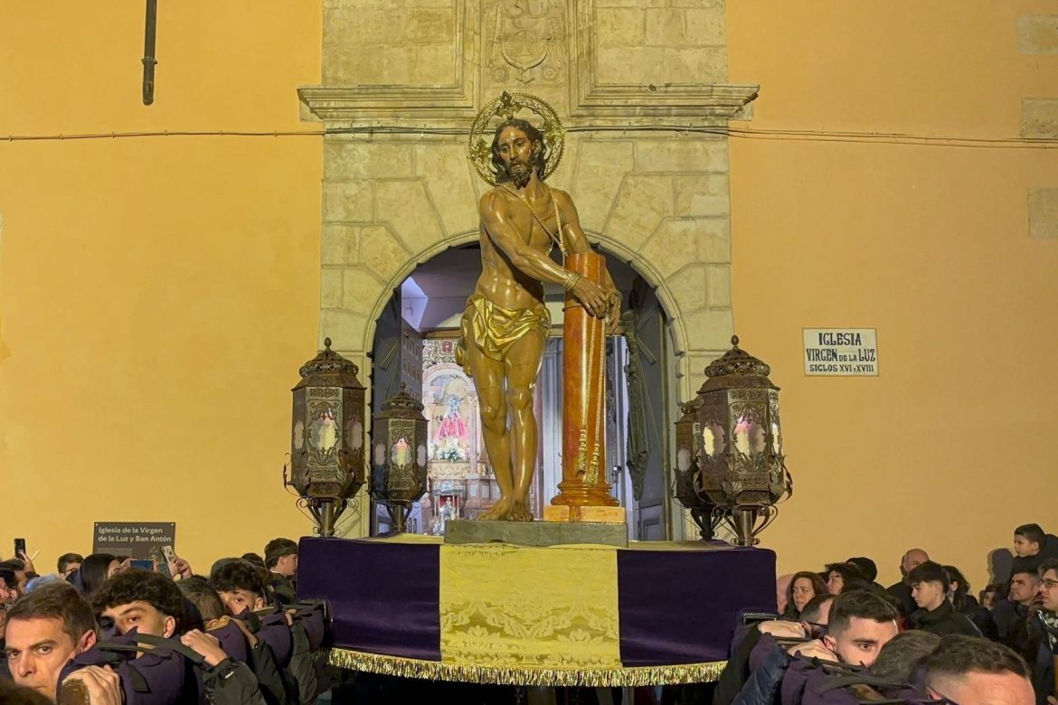Una multitud de conquenses han querido estar presentes en la tradicional cita del primer viernes de Cuaresma con la hermandad Nuestro Padre Jesús Amarrado a la Columna y su Vía Crucis por las calles de San Antón.