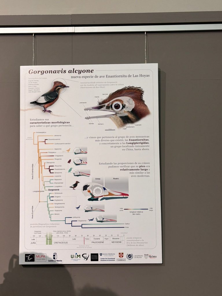 Este holotipo ha sido descrito a partir del descubrimiento del primer cráneo adulto de ave documentado en Las Hoyas. En su presentación, el investigador Jesús Marugán ha destacado el trabajo que ha tenido que hacer con estos restos, “porque estaba ya aplastado y transferido a la resina”.